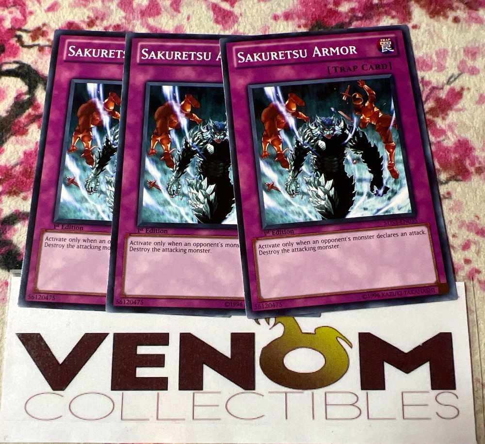 You are buying a playset of Sakuretsu Armor VLP. Please refer to the pictures for flaws on the cards.