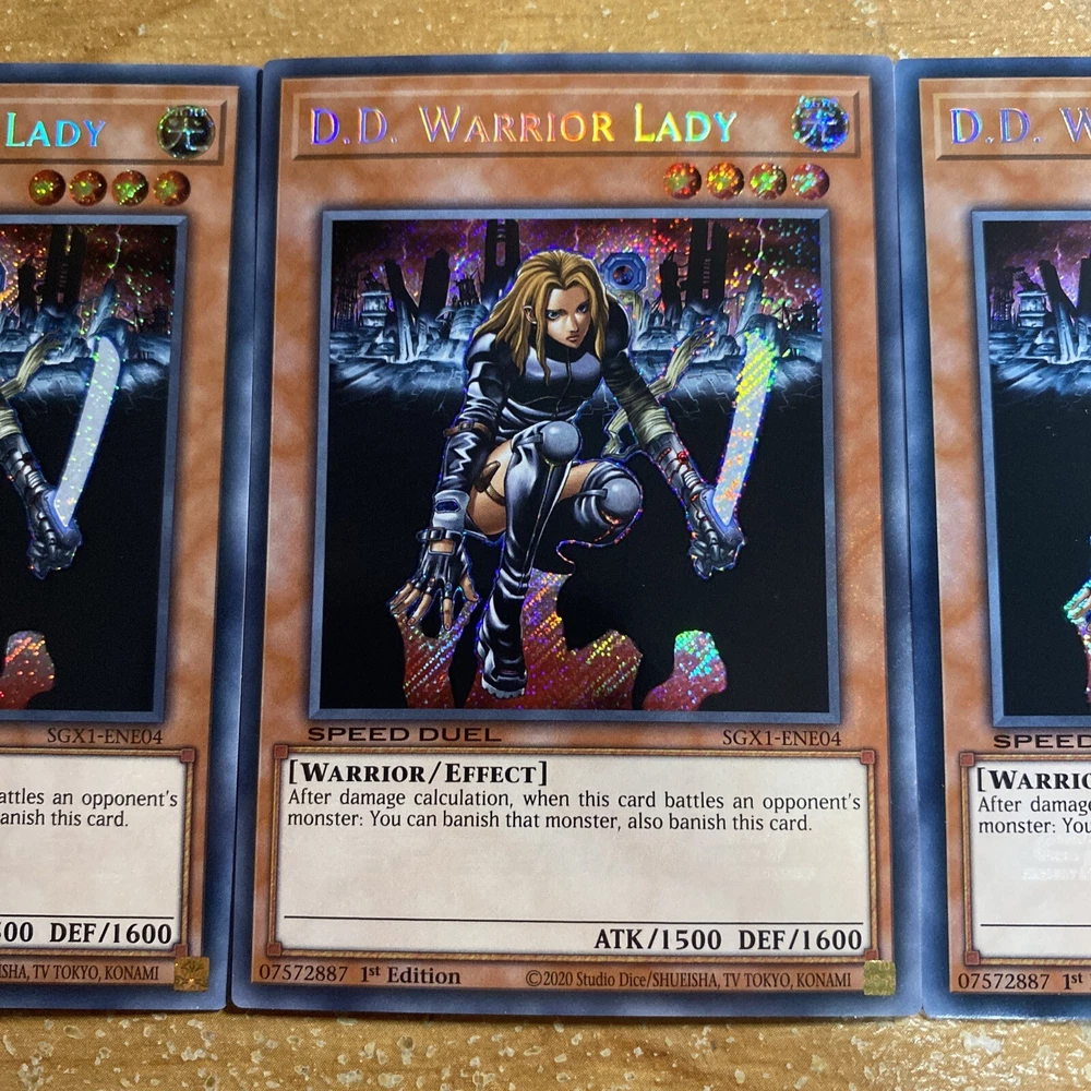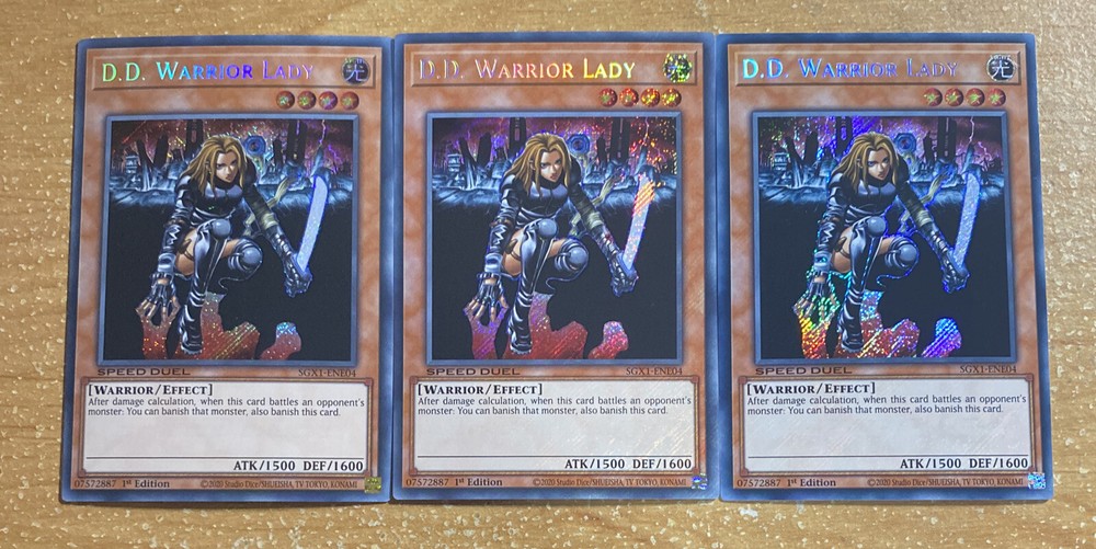 🔥3x Yugioh D.D. WARRIOR LADY SECRET RARE SGX1-ENE04 NM PLAYSET SPEED DUEL NM This item will be sent in a plastic sleeve/deck protector sleeve and in a toploader for maximum protection. Shipping is FREE! Payment is due immediately. The faster the payment the faster i'll ship out. Questions or comments?? Feel free to contact me. I'll get back to you within 24 hours. Check out my eBay store for more Yugioh items!