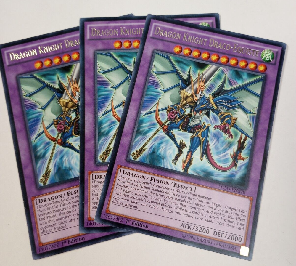3x Yugioh! LP Dragon Knight Draco-Equiste - LC5D-EN028 - Rare - 1st Edition. Condition is Ungraded. Shipped with USPS Ground Advantage.
