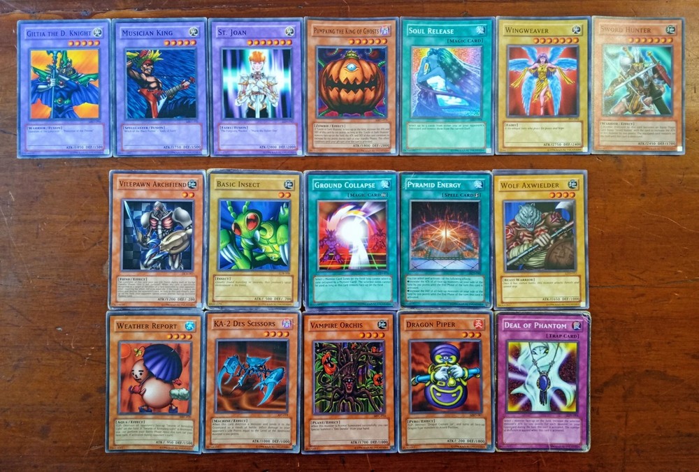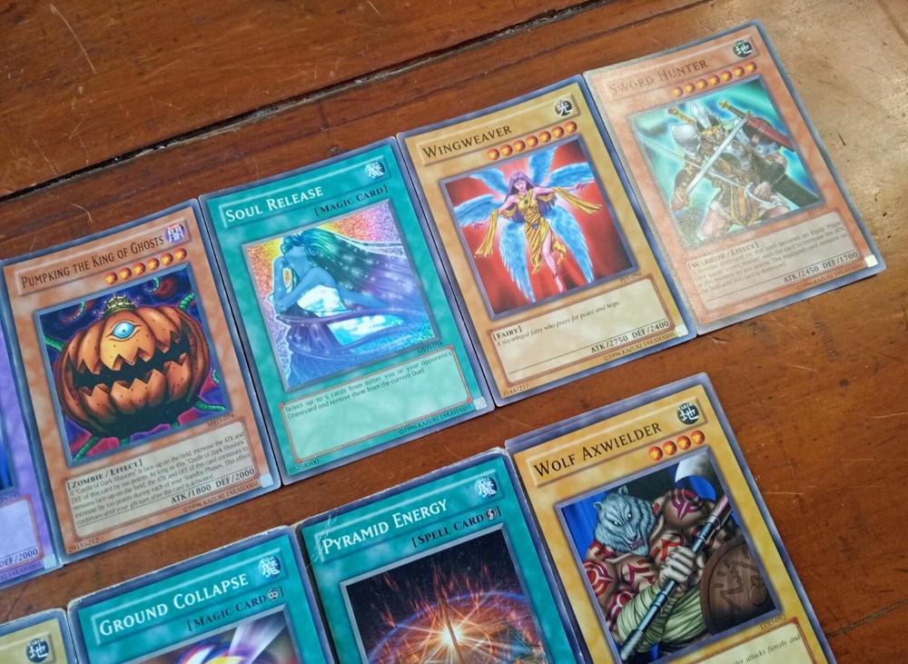 52 X Yu-Gi-Oh Lot Of 2002 Unlimited Original Cards In Various Condition HP-NM Most cards are in reasonable condition, with some that are HP with creases and others that are NM condition like the Sword Hunter and Wingweaver. If you have any questions please feel free to message me!