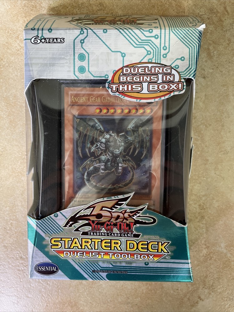 5DS Yugioh! Ancient Gear Gadjiltron Dragon Starter Deck Duelist Toolbox. Condition: new and hasn’t been opened; a small corner damage to box shown in picture; not manufacture sealed but hasn’t been opened (deck inside is still sealed in packaging) Return policy: no returns