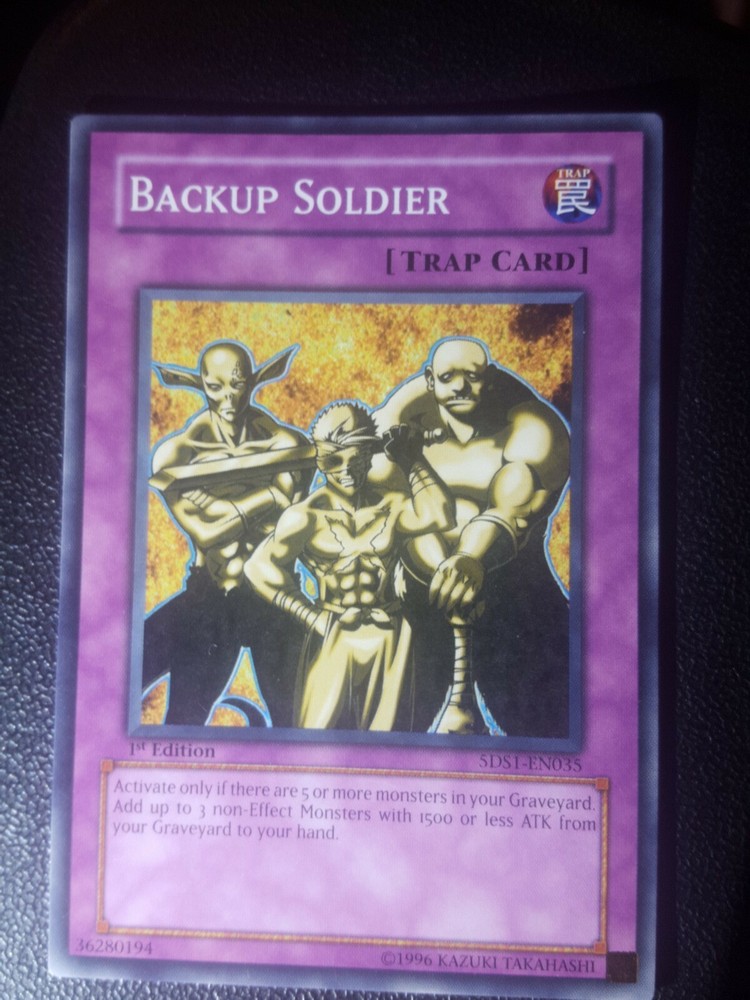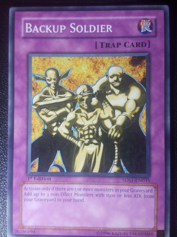 5DS1-EN035 Yugioh! BACKUP SOLDIER 1st Edition TRAP CARD Near Mint x1. Condition is Used.