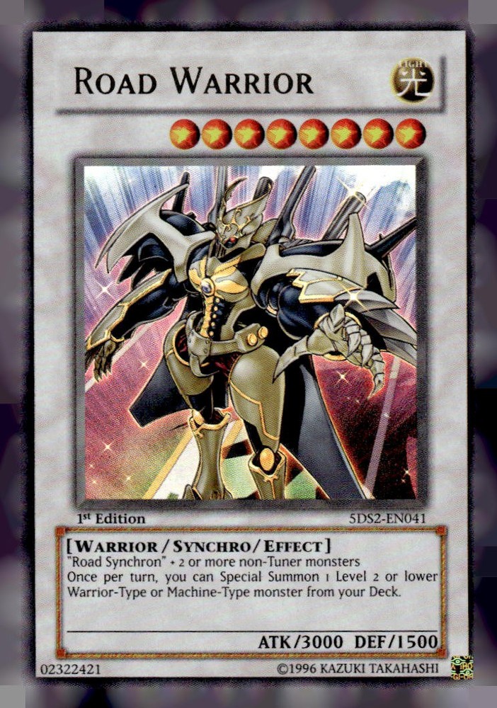 This is a nice example of a 5D's Starter Deck 2009 #5DS2-EN041 Road Warrior Other important information about this card: Ultra Rare In 2009 Road Warrior played for the . Please check out our other listings for more great cards.