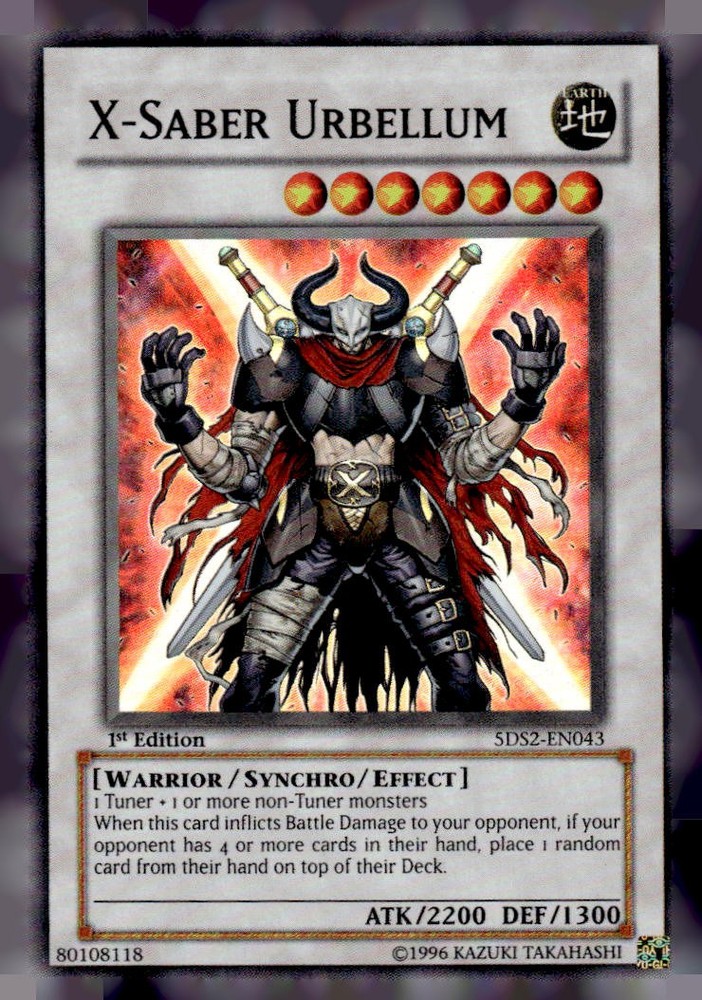 This is a nice example of a 5D's Starter Deck 2009 #5DS2-EN043 X-Saber Urbellum Other important information about this card: Super Rare In 2009 X-Saber Urbellum played for the . Please check out our o...