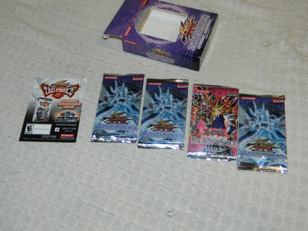 You are bidding on a 5Ds Yu Gi Oh Stardust Overdrive Box and Open Foil Packs ONLY . This is for the box and opened foil packs only, there are no cards included with this item. Box has some wear including some slight dents and creases. Please see pictures for further details.