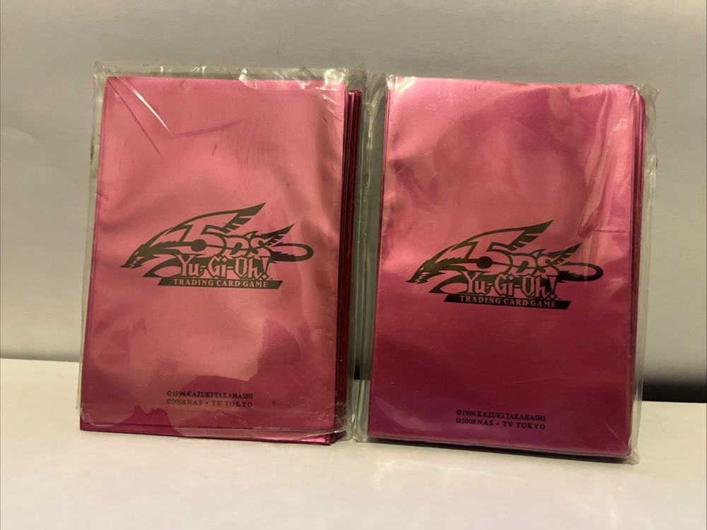 LOT OF 80 YUGIOH Card Deck Protectors 5Ds Duelist Card Sleeves STILL SEALED 2 PINK PACKS OF 40 WHICH IS 80 SLEEVES TOTAL.