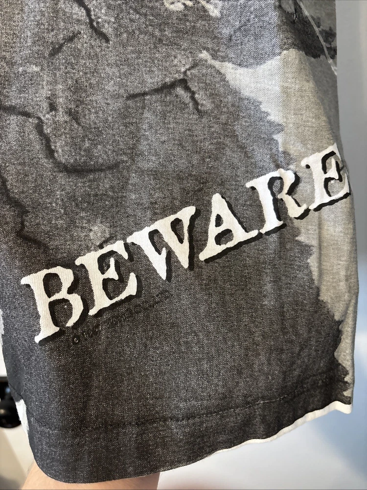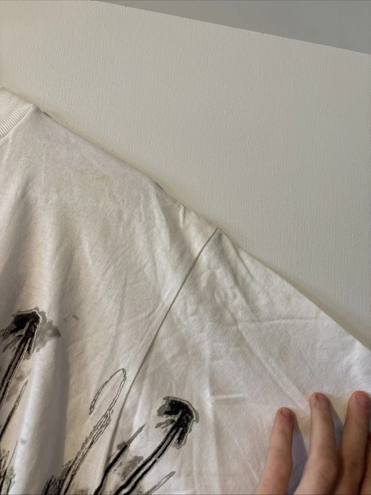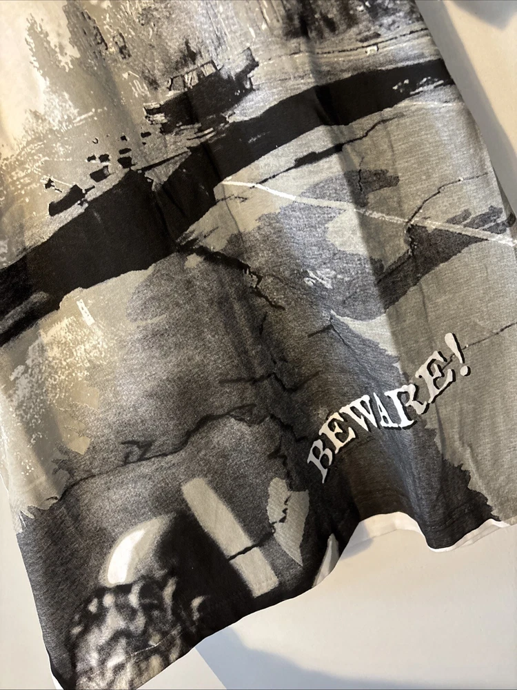 Condition is as shown. See photos for details. Fast shipping. Smoke free home. NEW WITH TAGS VINTAGE SHIRT. AOP. RARE!!! Single stitch sleeves. Measurements: 21x29. OFFERS TAKEN! 21 pit to pit 29 top to bottom Has some spots. Have not tried cleaning or treating due to tags