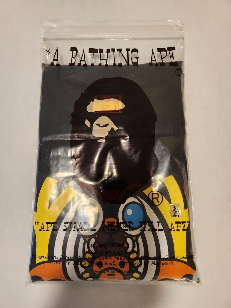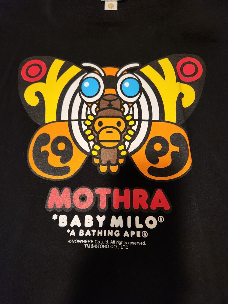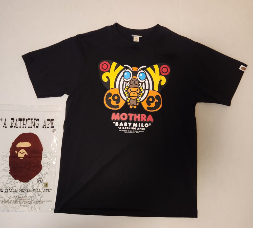 A BATHING APE X GODZILLA 2016 Baby Milo Mothra T-Shirt Color: Black Size: Large 100% Authentic The shirt is in "Like New" condition. It was worn between 1-3 times. I am the original owner of all of the Bape and other streetwear I am listing. Everything was purchased directly from the company or a licensed seller. All of the clothing I am listing was carefully hand washed and dried flat to prevent any fading or loss of shape. They were stored hanging in a garment bag to protect them. I have been collecting streetwear for a number of years and am listing a variety of pieces from my collection. Please check my other items for more great stuff. I am always willing to cut a deal for combined shipping. Feel free to message me with any questions. Thanks for looking