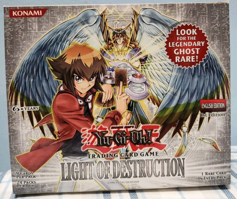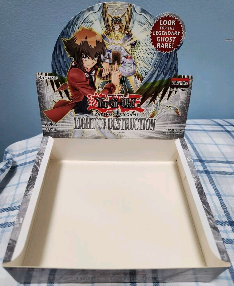 You'll receive the exact box in the title and photos. Box has some dents and creases due to age and storage. Still in good condition. If you have any questions or concerns, just DM me. Also, check out my other listing for more empty boxes. Also, follow me on IG @lobhunter for more deals This Yu-Gi-Oh! 1st Edition Light of Destruction Empty Booster Box is perfect for collectors and fans of the franchise. The box is empty, making it an ideal storage solution for your cards or other collectibles. The set features Jaden Yuki and is in English language. The packaging type is an empty card box, and the manufacturer is Konami. The box is from the Yu-Gi-Oh! GX TV show and was manufactured in 2008. This item is categorized under Collectibles, Non-Sport Trading Cards, and Wrappers & Empty Card Boxes. Get your hands on this rare and valuable piece of Yu-Gi-Oh! memorabilia today!