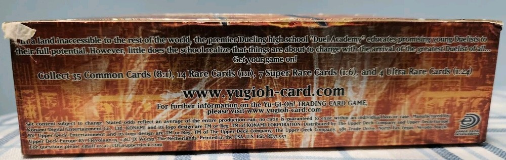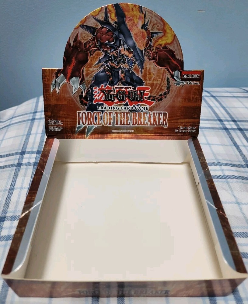You'll receive the exact box in the title and photos. Box has some dents and creases due to age and storage. Still in good condition. If you have any questions or concerns, just DM me. Also, check out my other listing for more empty boxes. Also, follow me on IG @lobhunter for more deals This Yu-Gi-Oh! GX 1st Edition Force Of The Breaker Booster Box is an empty card box designed for collectors and enthusiasts of the popular non-sport trading card franchise. The box is in English language and was manufactured by Konami in 2006, making it a rare and valuable addition to any collection. The set features Jaden Yuki, a beloved character from the Yu-Gi-Oh! TV show, and is ideal for storing and displaying your favorite cards.