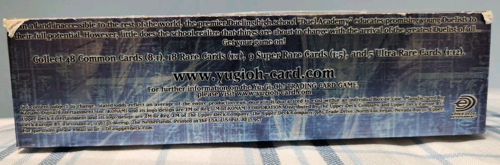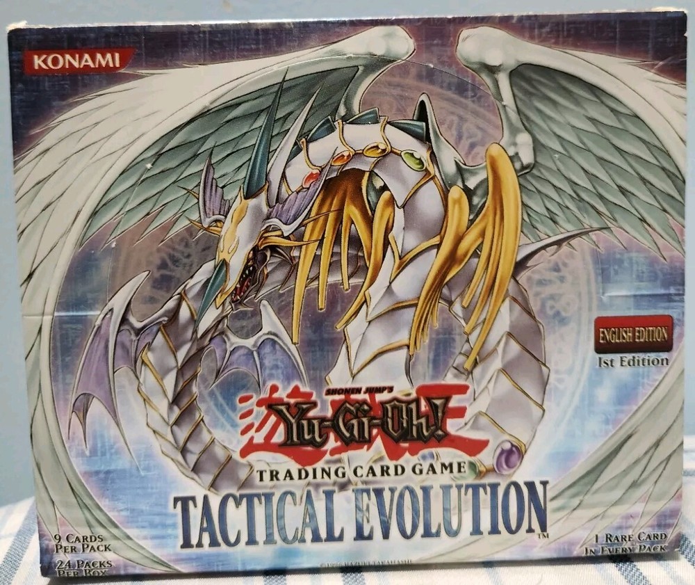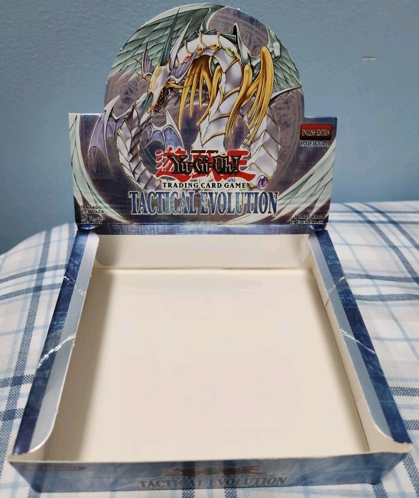 You'll receive the exact box in the title and photos. Box has some dents and creases due to age and storage. Still in good condition. If you have any questions or concerns, just DM me. Also, check out my other listing for more empty boxes. Also, follow me on IG @lobhunter for more deals This Yu-Gi-Oh! GX 1st Edition Tactical Evolution Booster Box is empty, but it's a must-have for any collector or fan of the franchise. The box is labeled in English and manufactured by Konami in 2006. It's perfect for storing and displaying your collection of non-sport trading cards, featuring Jaden Yuki and other characters from the TV show. The box is ideal for anyone looking to add to their collection of Yu-Gi-Oh! cards or simply wants to display their existing collection. It's a great addition to any collection of non-sport trading cards and is sure to impress. Get your hands on this empty card box today and start building your Yu-Gi-Oh! collection!