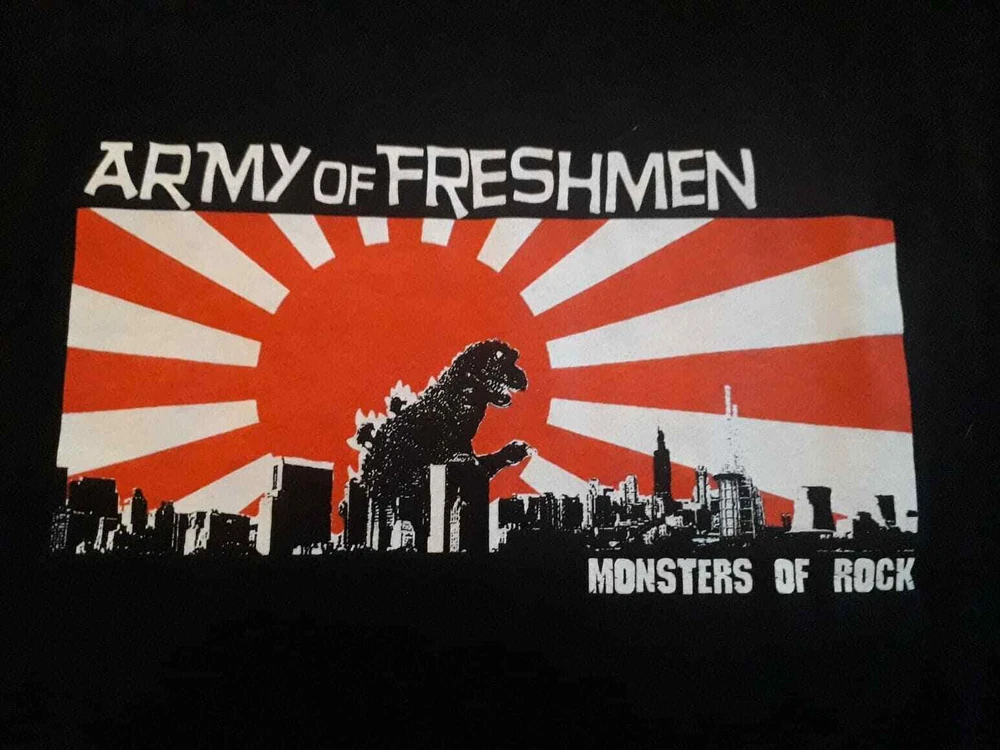 RARE vintage & original Army of Freshmen 'Monsters of Rock' punk T-shirt. Label is Fruit of the Loom, Size M (see sizes below). Black T shirt with front print only. Hardly worn and washed, so still in great condition! Sizes: armpit to armpit: 50 CM (20 inch) - neck to waist: 62 CM (25 inch). I have many more vintage punk / metal and other shirts for sale! See photos or mail for more info. Make me an offer if you think the price is too high. Located in the Netherlands: Shipping is 9.50 pounds worldwide (also UK!) = STANDARD UNTRACKED SHIPPING, I combine shipping! Tracked shipping is possible, for a higher price, please inquire! DUE TO COVID, SHIPPING TAKES A BIT LONGER, PLEASE BE PATIENT, THANKS!