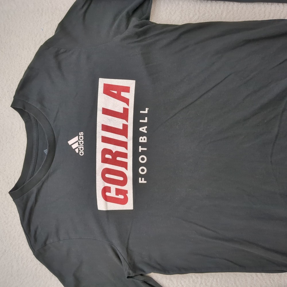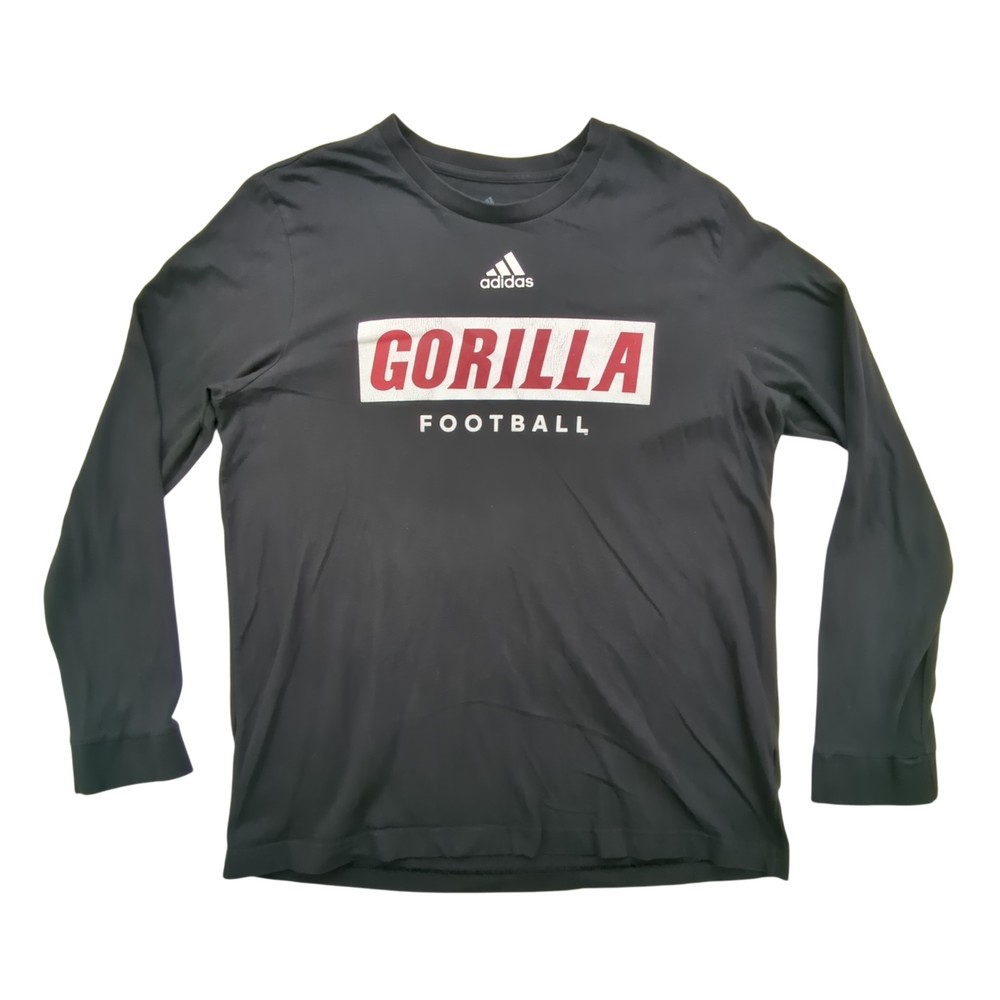 Adidas Gorilla Football Shirt Mens Large Long Sleeve Black Crewneck Sports NCAA Condition: Good pre-owned condition. No major flaws observed. Slight signs of normal wear throughout, such as light wrinkling and minor fading consistent with gentle use and wash. No holes or stains visible. Tag size: Large Material: 100% Cotton Made in Honduras This is a black, long sleeve Adidas shirt featuring "Gorilla Football" text graphic on the chest with an Adidas logo above. Suitable for football fans or NCAA collectors. Please see photos for details on the condition and item specifics.