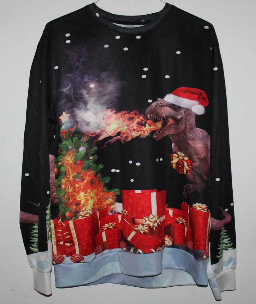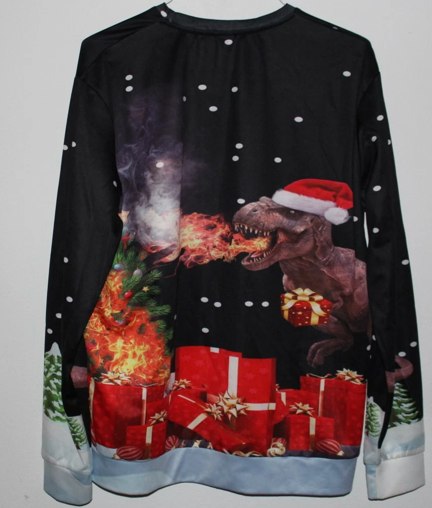All Over Print Shirt T-Rex Fire Dragon Godzilla Long Sleeve Christmas XL Excellent shirt, great graphics at a great price !!!