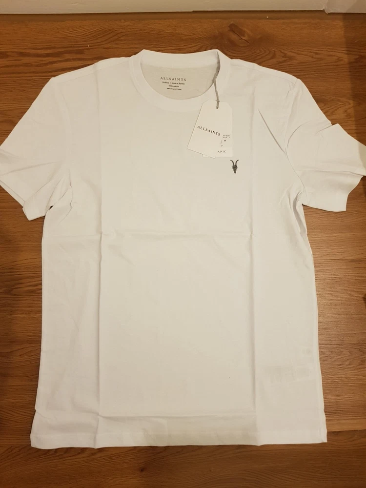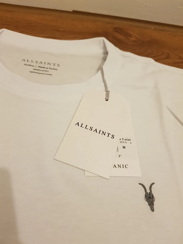 All Saints Organic Cotton Bones Crew T-Shirt This is Bones, it's an essential. cut from organic cotton. Find our font on the front, with a little bit of texture. The Tonic T-Shirt. Supersoft touch. Crew neck. Short Sleeve. Ramskull embroidery on the chest. Brand new with tags. Pullover Short sleeves Crew neck AllSaints embroidered logo Oversized fit 100% organic cotton Machine wash inside out PIT TO PIT S : 51 Cm M : 53 Cm L : 55 Cm XL : 57 Cm XXL : 59 Cm Check out our page to view your other designer items and stay tuned. Thank you so much for all you do for us.
