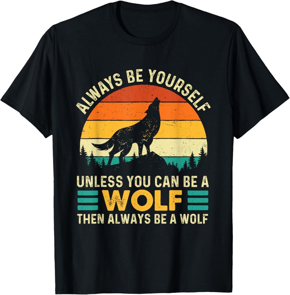 Always Be Yourself Unless You Can Be A Wolf - Wolf Lover T-Shirt FREE SHIPPING! FAST DELIVERY! DOMESTIC SHIPPING! Features and further details Stay classy and unique with custom cotton and a pretty thick t-shirt. The print on demand t-shirt is designed with a crew neckline, short sleeves for better comfort, taped neck and shoulders, and double-needle sleeves for enhanced durability. It?s a good choice for both men and women. Material: 5.3 oz/yd², Dark Heather, Graphite Heather, Heather Navy, Heather Red, Tweed (50% cotton, 50% polyester); Sport Grey, Antique Irish Green, Antique Orange, Antique Sapphire (90% Cotton/10% polyester), Ash (99% Cotton/ 1% Polyester), All Others (100% cotton). Classic, unisex fit - Comfortable to wear and suitable for anyone to wear. Non-stitched, classic width, rib collar. Printing technique: Direct to Garment. Color: Ash, Black, Charcoal, Dark Chocolate, Dark Heather, Forest Green, Gold, Ice Grey, Irish Green, Kiwi, Light Blue, Light Pink, Maroon, Military Green, Navy, Orange, Purple, Red, Royal, Sand, Sport Grey, Tropical Blue, Turf Green, White, Antique Irish Green, Antique Orange, Antique Sapphire, Azalea, Cardinal Red, Carolina Blue, Cobalt, Coral Silk, Cornsilk, Daisy, Graphite Heather, Heather Navy, Heather Red, Heliconia, Lime, Natural, Sapphire, Tweed. Size: S, M, L, XL, 2XL, 3XL, 4XL, 5XL. Blank product: Gildan 5000 Shipping We shipping from US for all orders! We offer FREE shipping on all orders! We ship within Three business days of payment, usually sooner. We use a selection of shipping services such as UPS, FedEx, USPS etc. We only ship to the lower 48 states, no APO/FPO addresses or PO Boxes allowed. Local pickups and combined shipping options are not provided at this time. Feedback Customer satisfaction is very important to us. If you have any problem with your order, please contact us and we will do our best to make you satisfied. Contact Us If you have any queries, please contact us via ebay. We usually respond within 24 hours on weekdays. Please visit our store to check out other items for sale! Thank you for shopping at our store.