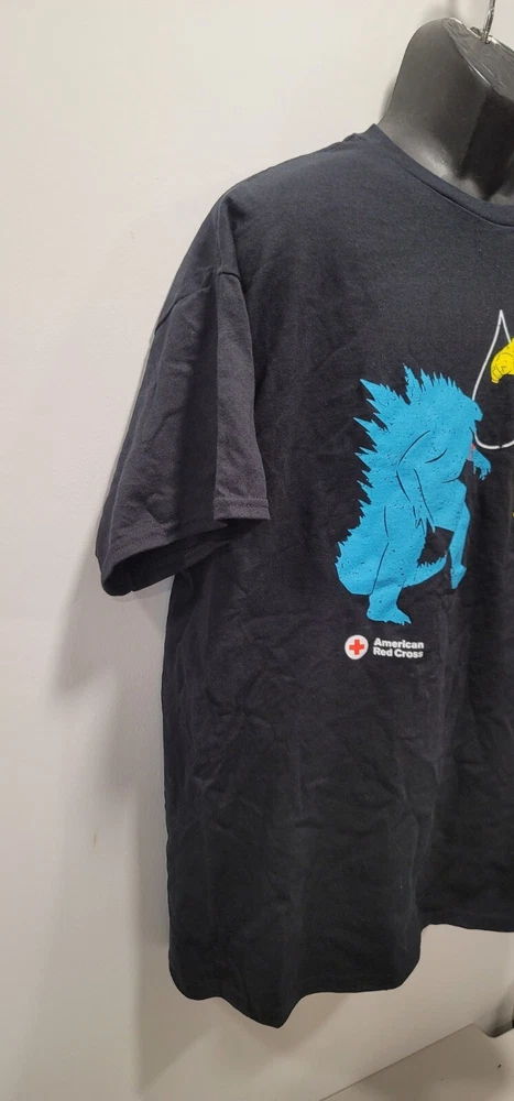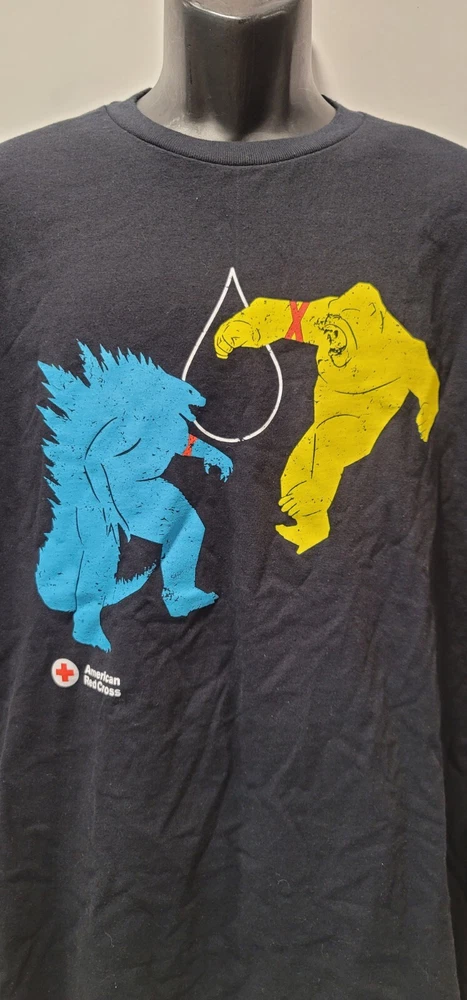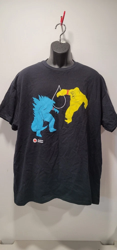 This limited edition American Red Cross T-shirt features a stunning design by Gildan showcasing the iconic movie characters Godzilla and Kong. The shirt is made of high-quality cotton material and comes in a solid black color with a crew neckline and short sleeves. It is available in size XL and is a regular fit for both men and women. Shirt is in very good preowned condition smoke free home.