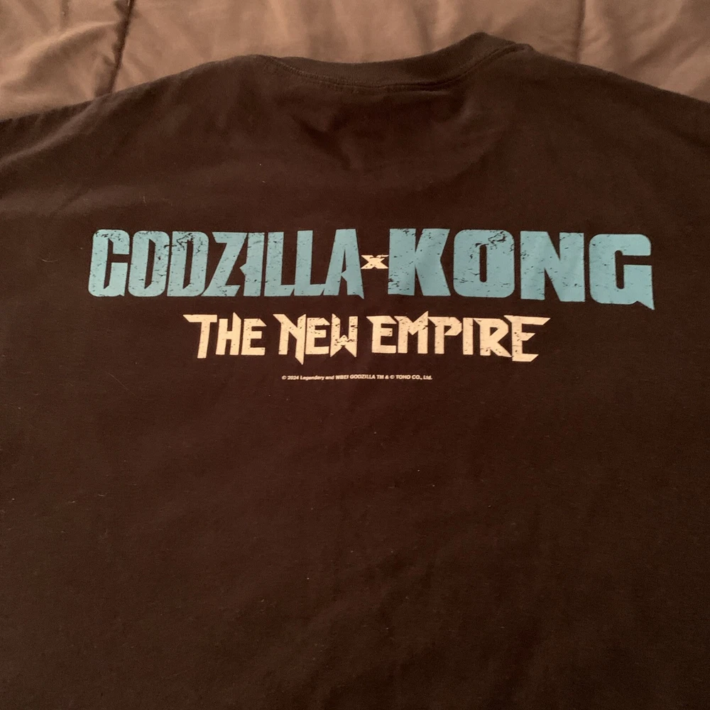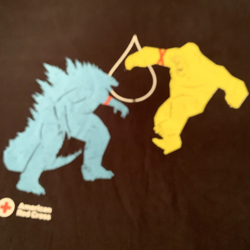 This American Red Cross GODZILLA x KONG: The New Empire T-Shirt is a must-have for any fan of the epic movie franchise. With a crew neck and short sleeves, this black cotton tee features a striking graphic of the two iconic monsters facing off against each other. The XL size is perfect for men, and the Gildan brand ensures high quality and durability. The shirt is great for casual wear or to show off your love for the movie. The shirt is new without tags and ready to be shipped to you. Don't miss out on the chance to own this awesome piece of movie merchandise. Brand new never worn, smoke-free home Questions ask