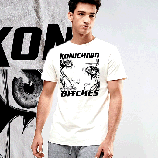 Anime T-Shirt Samurai Girl Konichiwa greeting japanese martial arts samurai tee