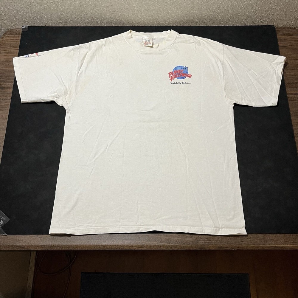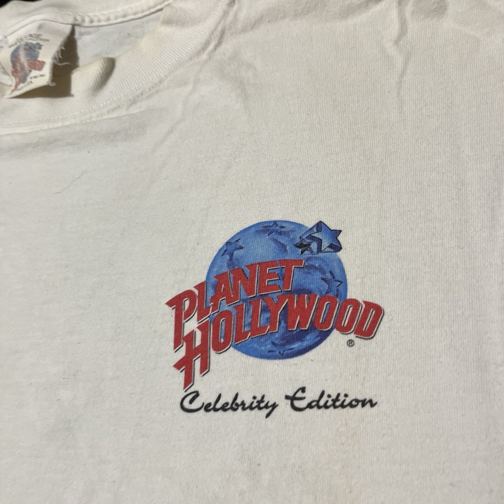 Get ready to unleash the power of the 90s with this vintage Planet Hollywood Godzilla Lizard t-shirt! Featuring a bold graphic print, this shirt is made of comfortable and breathable cotton knit material, perfect for all seasons. The shirt is designed with a crew neck and short sleeves, and comes in a size XL with a regular fit. The shirt also includes a stylish logo accent and is easy to care for. Whether you're a fan of the Godzilla character family or just looking for a unique addition to your clothing collection, this shirt is a must-have. Made in the United States, this shirt is a piece of 90s nostalgia that will never go out of style.