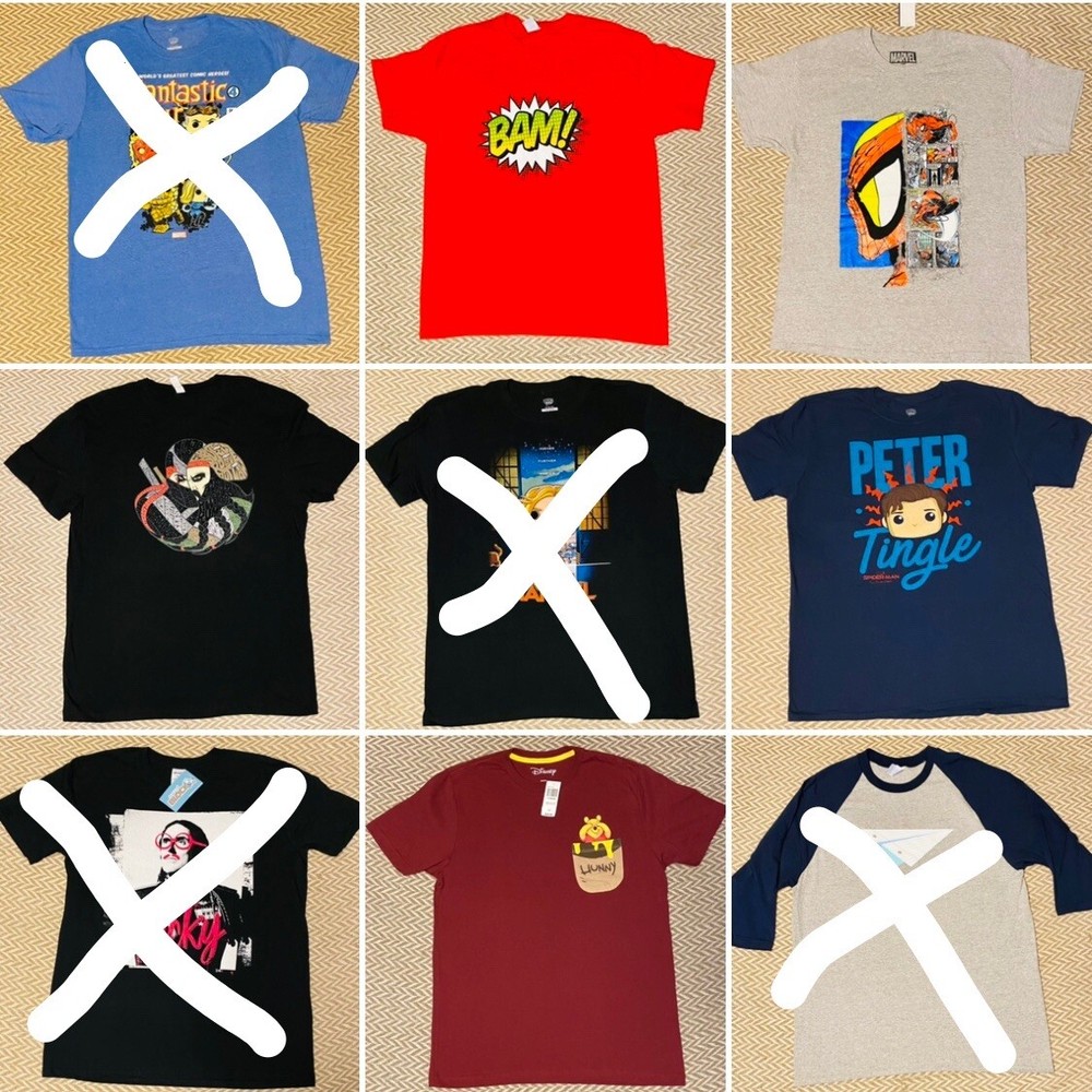 Assorted NEW Marvel & Disney T Shirts Adult Large Choose! $10 each, 2 for $16, 3 for $20! Select your shirt choices by the picture, DM me with what shirts you want and I will let you know if they are still available. Feel free to mix and match with my other listings! If you just want one, that's great pay the buy it now price $10 for 1. If you want more than one with the discount, OBO (best offer) me the amount for two shirts, Example: OBO me $16 then DM me what TWO shirts you want and I will accept the offer. Each shirt has an individual picture for a look at the entire shirt logo. All are size L, check other post for XL! These shirts are all NEW from various subscription boxes such as Funko, Nerd Block, and LootCrate All Disney & Marvel themed, some have tags and some do not. Some are polyester blends, some are cotton etc. If you want to know the specific material of a shirt or have any other questions, feel free to message me! None have been worn, just a little wrinkled from being stored folded up. All shipped safely through USPS first class, after 2 shirts it will likely be priority mail due to weight. NO RETURNS sorry No International shipping Thank you for checking out the listing!