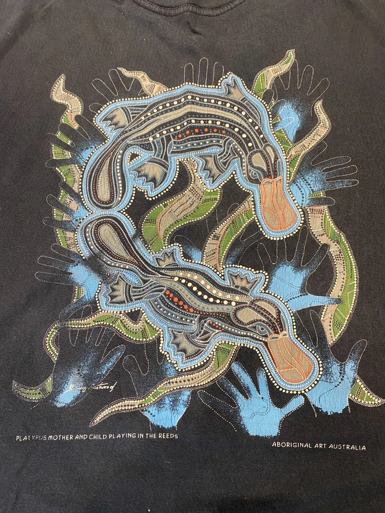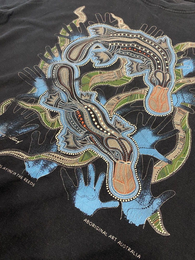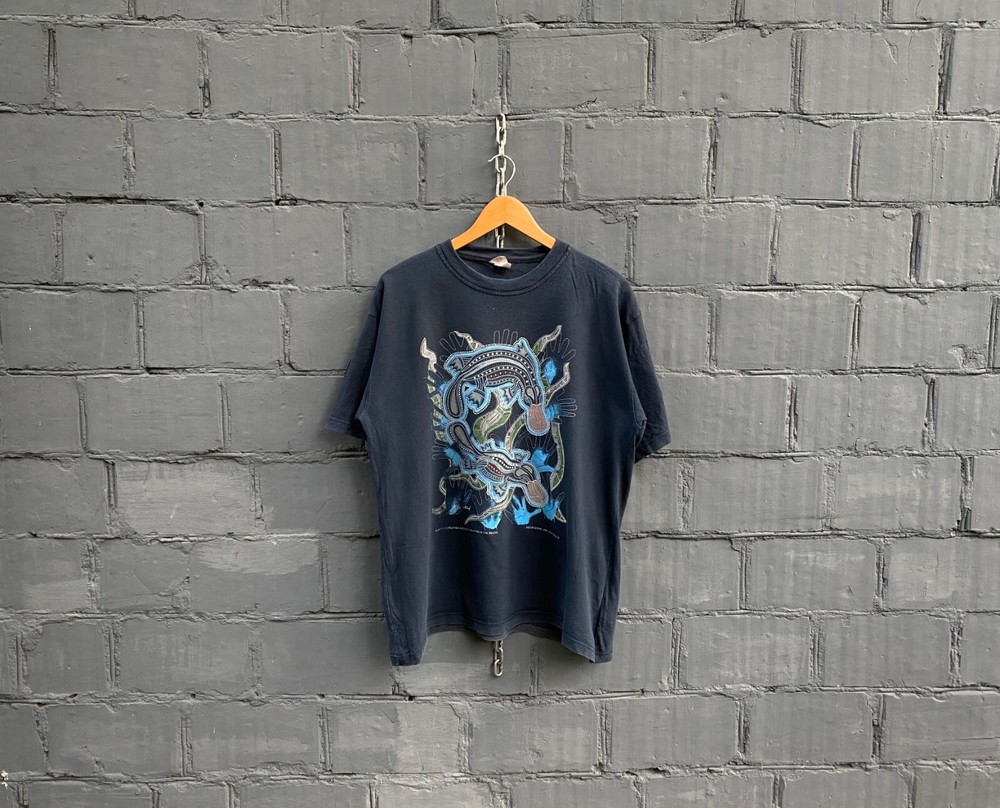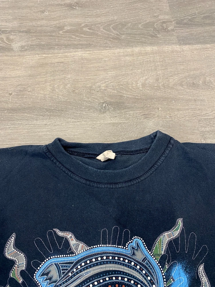 Australia Aboriginal Art Vintage T-Shirt Y2K. Size 50, Large (See measurements). Blue Navy color. Condition good. The thing was in use. Slight traces of use. Look carefully at the photo!!! If you need additional photos, please write to me. The color in the photo may differ from the color in real life. Measurements: Length from the collar to the bottom of the product(on the back) - 72,5 cm(28,54") From shoulder to shoulder - 59,5 cm(23,43") Underarm to underarm - 61 cm(24,02") FOLLOW MY!!! Shipping in Ukraine πΊπ¦ 25-45 working days. Send your offers if you do not agree with my price.