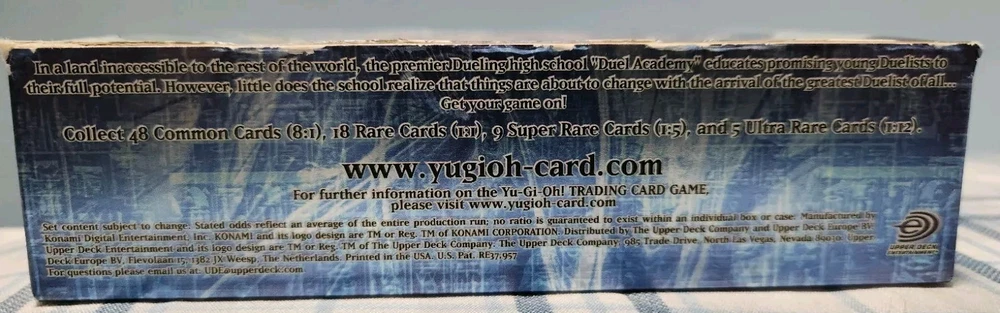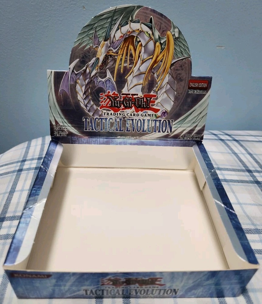 You'll receive the exact box in the title and photos. Box has some dents and creases due to age and storage. Still in good condition. If you have any questions or concerns, just DM me. Also, check out my other listing for more empty boxes. Also, follow me on IG @lobhunter for more deals This Yu-Gi-Oh! GX 1st Edition Tactical Evolution Booster Box is empty, but it's a must-have for any collector or fan of the franchise. The box is labeled in English and manufactured by Konami in 2006. It's perfect for storing and displaying your collection of non-sport trading cards, featuring Jaden Yuki and other characters from the TV show. The box is ideal for anyone looking to add to their collection of Yu-Gi-Oh! cards or simply wants to display their existing collection. It's a great addition to any collection of non-sport trading cards and is sure to impress. Get your hands on this empty card box today and start building your Yu-Gi-Oh! collection!