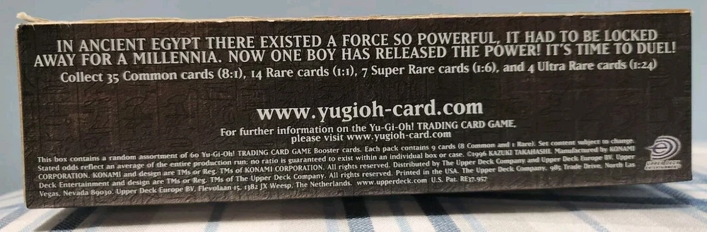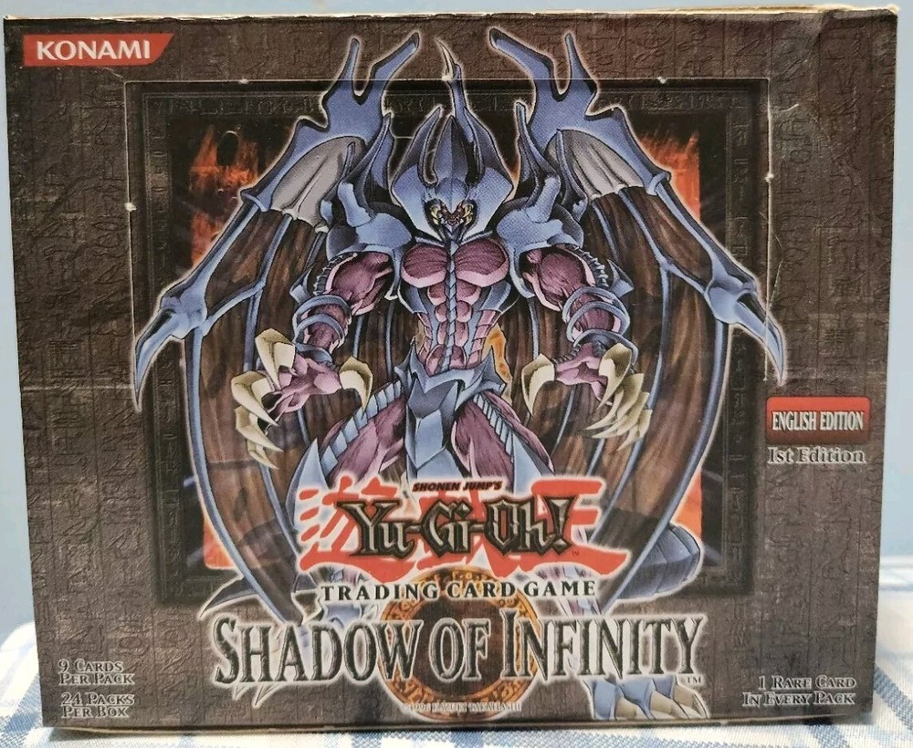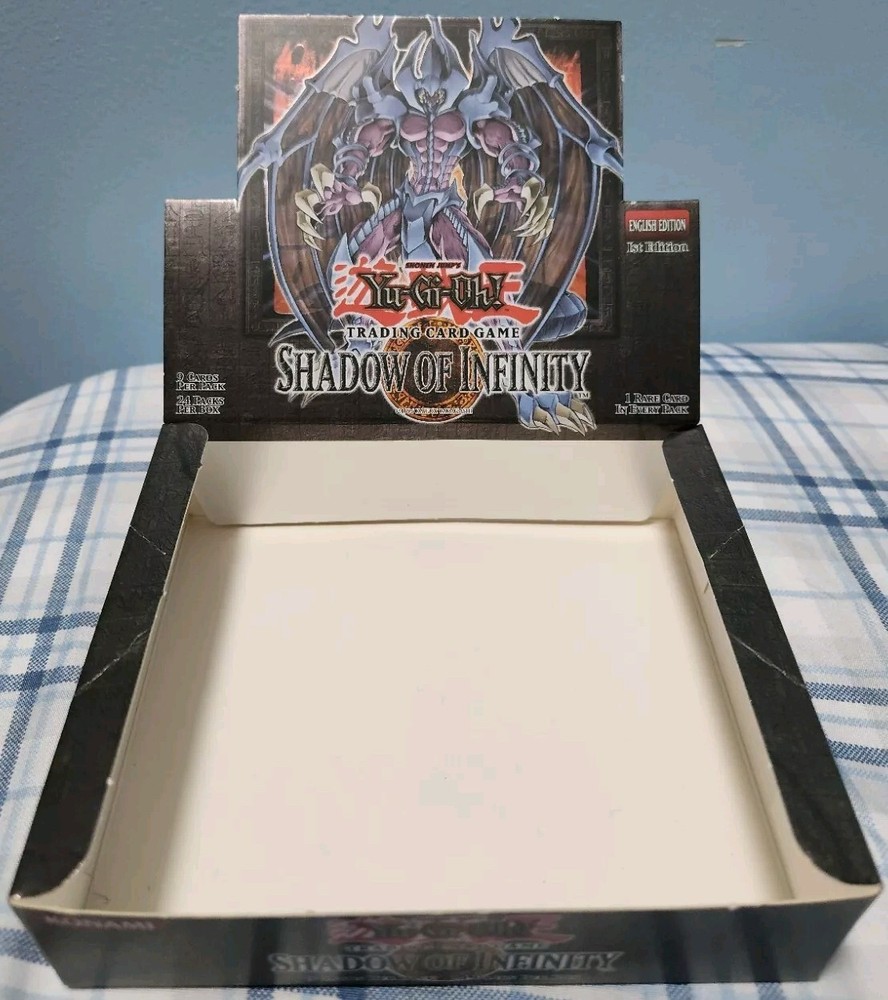 You'll receive the exact box in the title and photos. Please check photos for more details. Box some dents and creases due to age and storage. Still in good condition. If you have any questions or concerns, just DM me. Also, check out my other listing for more empty boxes. Also, follow me on IG @lobhunter for more deals This Yu-Gi-Oh! GX Shadow of Infinity 1st Edition Hobby Booster Box is a must-have for any collector or fan of the franchise. It features an empty design with a variety of non-sport trading cards and wrappers, perfect for storing your collection or displaying your love for the game. The box is manufactured by Konami and was released in 2006, making it a vintage item for any Yu-Gi-Oh! enthusiast. The set includes cards from the popular TV show and franchise, and the box is labeled in the English language. Add this unique and rare item to your collection today!