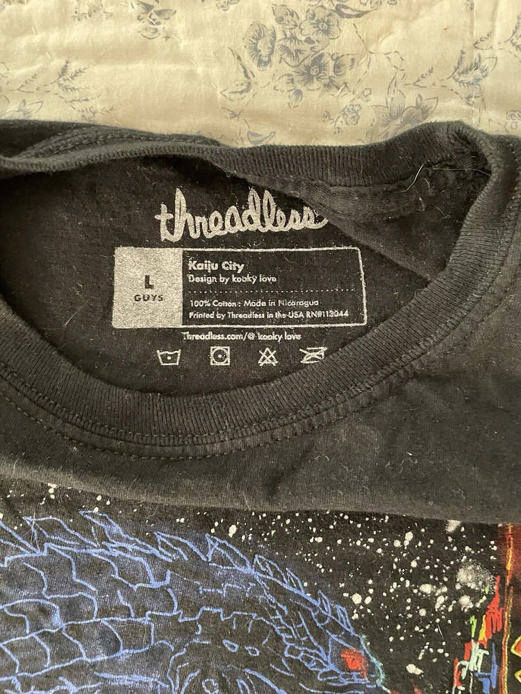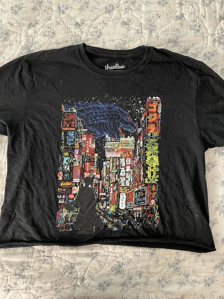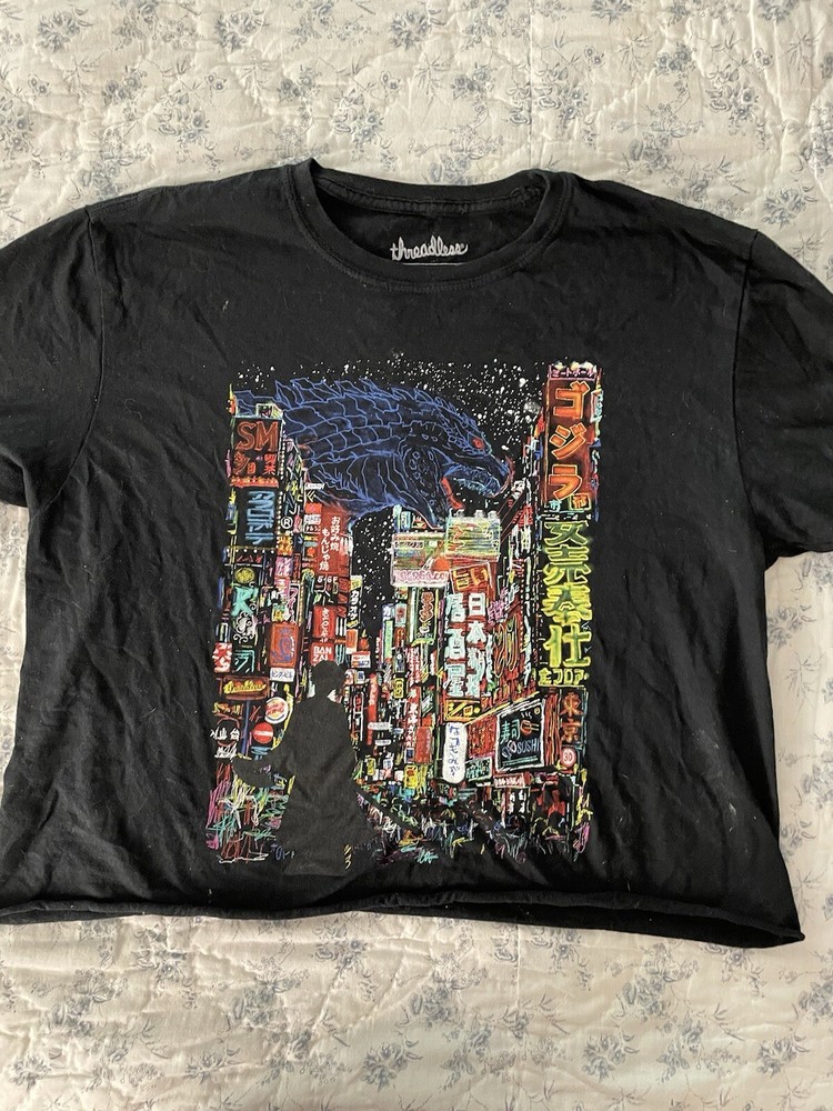Black T-shirt, threadless Godzilla kayu city kooky live size large