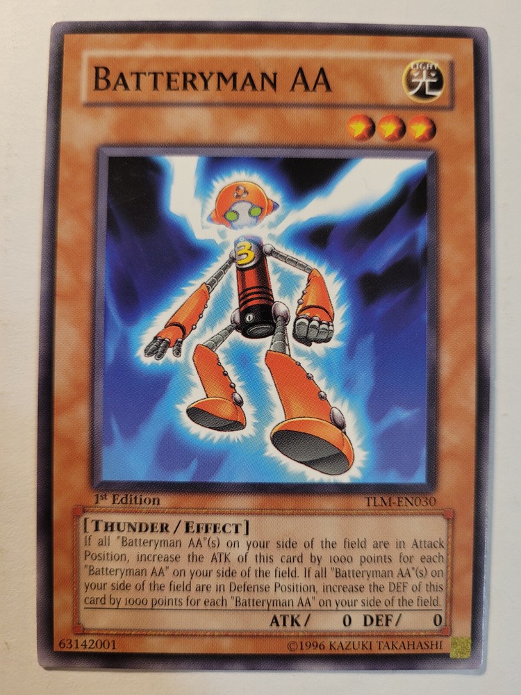 Batteryman AA - TLM-EN030 - Common - 1st Edition LP YuGiOh! Check my store for other books, figures, toys, cards, video games, movies, collectibles, art and gaming supplies! Authenticity guaranteed! Will ship fast and free guaranteed! ---------------------------------------------------------------------------------------------------------------------------------------------------------- PLEASE READ the following ebay and store policies if you are interested in a purchase. Purchasing a product means you agree to all terms and conditions. - When purchasing from multiple different listings, please combine them into one transaction. Instead of clicking "buy it now", click "add to cart", then do this for all items you are interested in from the store, then checkout. This saves on transaction fees and is greatly appreciated. It also lowers chances of any errors or shipping delays occurring. - If you have any issues with an order please MESSAGE THE ACCOUNT BEFORE leaving negative feedback OR opening an ebay claim/request. We strive for excellent customer service and will do everything possible to make your transaction fair and pleasant. If a claim is opened, or negative feedback is given, before any attempt to communicate you will be added to a block/black list, and the claim has a significantly higher chance of being denied. - Topsalez will only ever leave customers positive feedback! ---------------------------------------------------------------------------------------------------------------------------------------------------------- Please allow 24-48 business hours to respond to communications, Shipments should be sent within 2 business days. Sometimes Longer. - WE WILL ONLY SHIP TO ADDRESS ON FILE. UPDATE YOUR ADDRESS BEFORE PURCHASE. WE ARE NOT RESPONSIBLE FOR WRONG ADDRESS SHIPMENTS. - Note that some shipments will be made without tracking to save on postage. These will be low value, light-weight, and small or flat items. - We are open to offers for purchases of HIGH VOLUME or HIGH DOLLAR listings. If you're interested in purchasing a very large quantity we will happily offer VERY LARGE DISCOUNTS! Please message the account anytime for details! ---------------------------------------------------------------------------------------------------------------------------------------------------------- - ALL PRODUCTS SOLD ARE CONSIDERED SOLD AS IS. Please read the rules for returns/refunds below. To prevent fraud we have strict return policies. - PLEASE NOTE WE ARE NOT RESPONSIBLE IF PRODUCT DOESN'T WORK. WE TEST ALL PRODUCTS BEFORE SALE. If products are not tested, they will explicitly state so in the title and/or description. ---------------------------------------------------------------------------------------------------------------------------------------------------------- Will NOT refund for: - Non receipt of item if shipping shows as delivered. TopSalez and Ebay are not responsible for a lack of security of the mailbox or recipient's address. Please check your local postal carrier for missing items before communicating something is wrong. - If customer disagrees with condition upon receipt. Everyone's ideas of conditions vary from person to person. Please see pictures or message the account before purchasing. - If customer changes their mind after purchase and the item already has a tracking number. - If item was accidentally purchased or fraudulently purchased and the item already has a tracking number. ---------------------------------------------------------------------------------------------------------------------------------------------------------- HOWEVER, we will refund ANY purchase IN FULL, no questions asked, if customer agrees to pay for return shipping, original shipping, and a small restocking fee. (Restock fee only applies for fees, supplies, or damage) Please see rules for returns below. ---------------------------------------------------------------------------------------------------------------------------------------------------------- Will ONLY refund for: - Customer changes their mind, or item was fraudulently or accidentally purchased, and the item has not been shipped and no tracking # was created. We ship fast so please request cancellation immediately. Due to USPS not refunding for purchases, if label is already printed, product will still be shipped and refund denied. - Non receipt of item and tracking shows as still in progress or non-delivered. If you open a claim before the 15 business day waiting period your REFUND WILL BE DENIED. (Insurance demands to wait for at least 15 business days before filing a claim, please allow this time to pass so a claim and a refund can be made simultaneously.) - Item arrived damaged. All shipped items are insured. Please have pictures of the postal package and the item purchased for insurance verification. ---------------------------------------------------------------------------------------------------------------------------------------------------------- Returns need to be: - Exact item as what was sent originally (We record and check serial numbers, photos, and receipts to prevent fraud) - In the exact same condition sent originally (Send back in same way as was sent to you or better. If item was damaged by customer or shipping company refund may be denied) - Including everything that was sent originally (accessories, cords, cases, paper inserts, etc) - We reserve the right to deny a refund for any reason. So please read and follow all the rules.