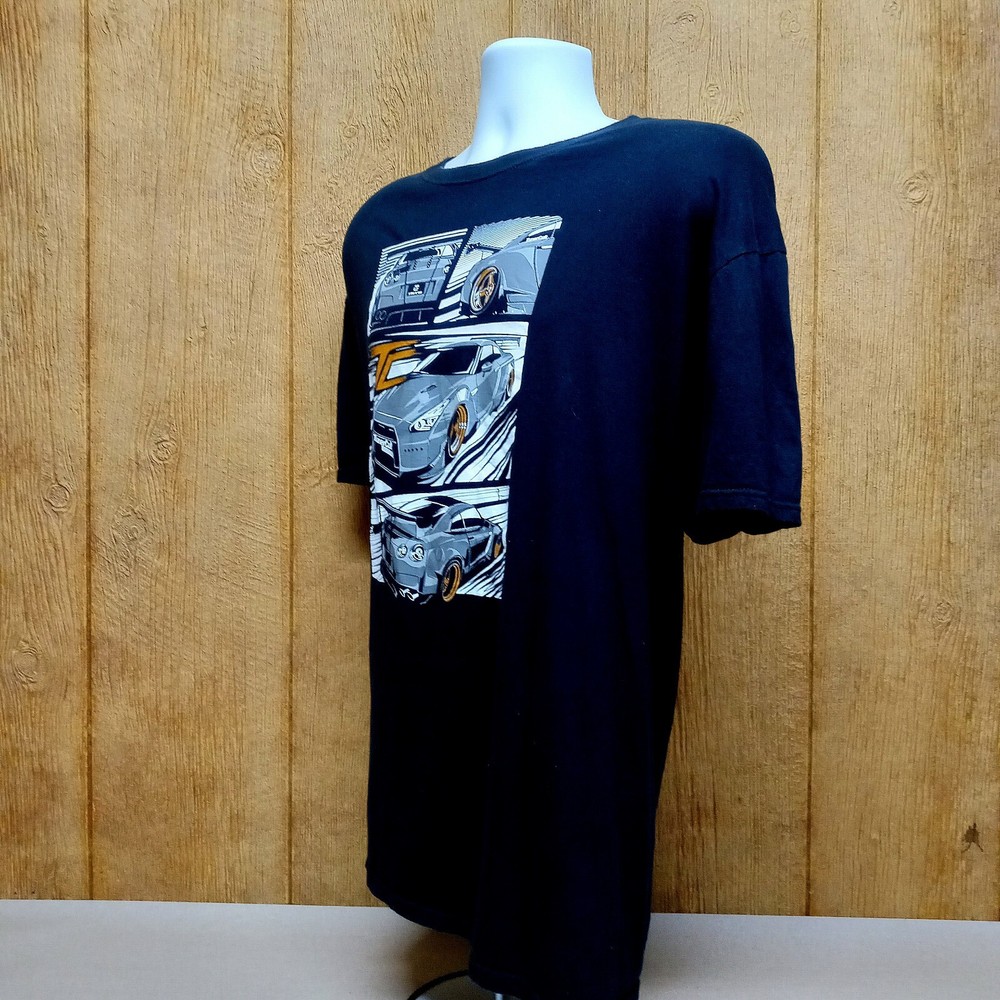 This black Nissan GTR R35 R-35 T-Shirt is perfect for any car enthusiast. Made of 100% cotton, this basic tee features a Spirit character and a Godzilla character family theme. The short sleeve shirt is designed with a turbo JDM Nismo racing MK7 model and is available in many sizes. The featured graphics of this T-shirt are cars, and it is a regular fit for men. This T-shirt is an excellent addition to any wardrobe and is perfect for casual wear. Get your hands on this United States-made Gildan brand T-shirt today!