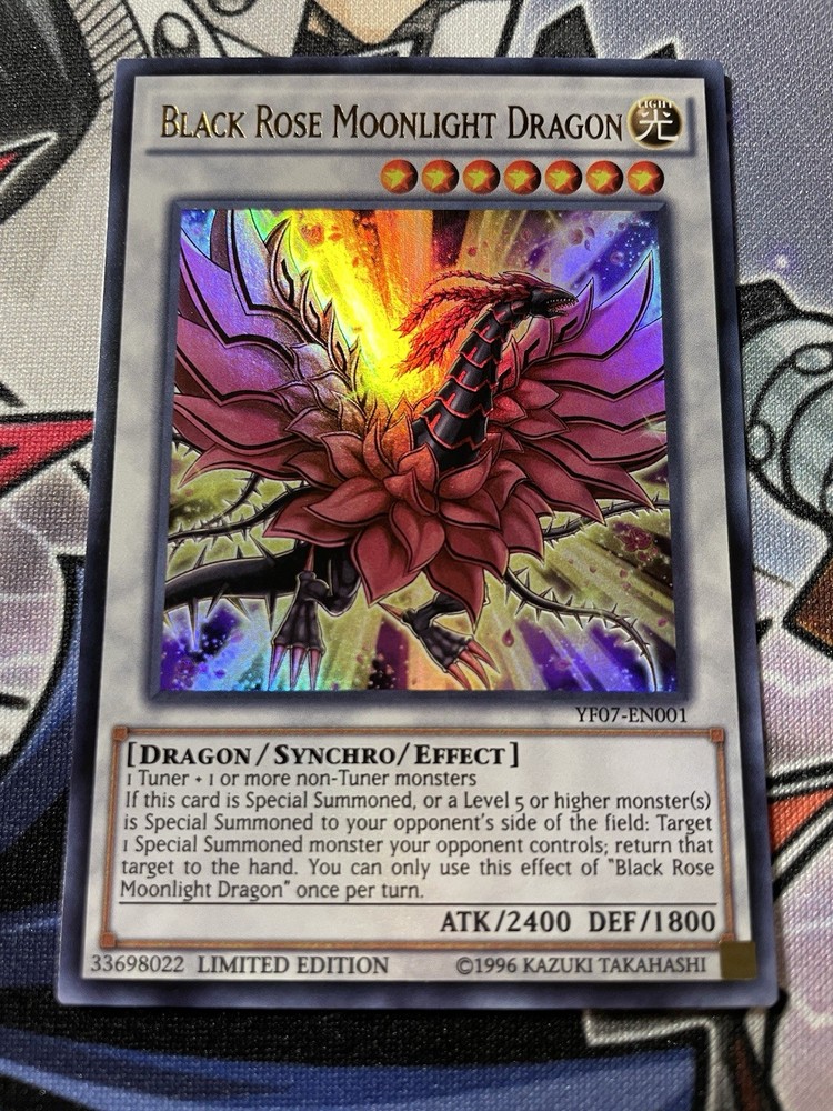 | Card Text | 1 Tuner + 1 or more non-Tuner monsters If this card is Special Summoned, or a Level 5 or higher monster(s) is Special Summoned to your opponent's side of the field: Target 1 Special Summoned monster your opponent controls; return that target to the hand. You can only use this effect of "Black Rose Moonlight Dragon" once per turn. |