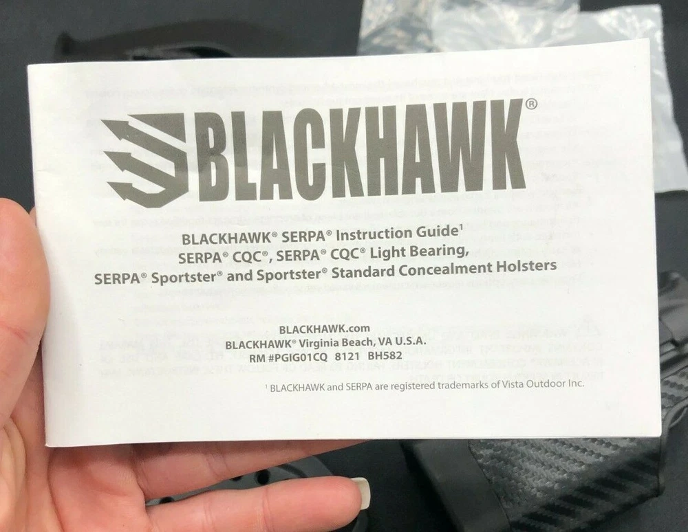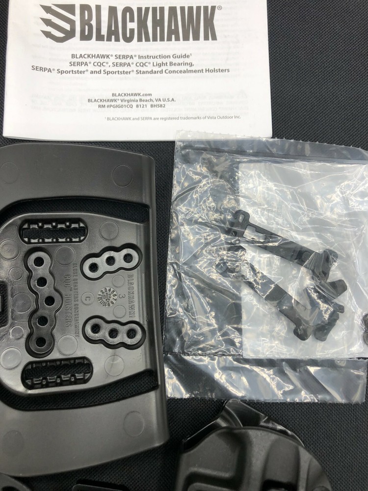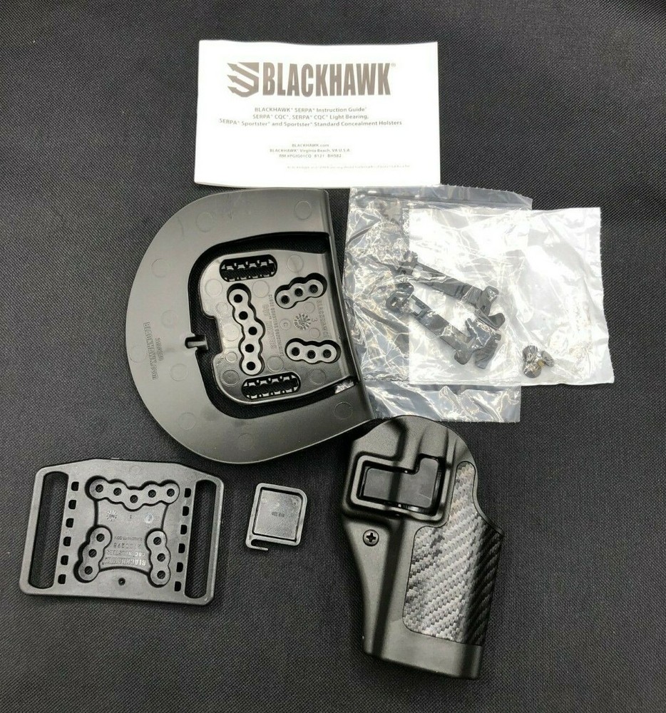 Item Sold AS IS Blackhawk 410025BKR Serpa CQC Concealment Holster Black Carbon Fiber Polymer OWB S&W M&P 9,357,40; SD 9,40; Sig Not CORE Right Hand The holster has never been used or assembled; comes with instructions. PLEASE CAREFULLY READTHE FOLLOWING: All sales are final We ONLY accept returns or exchanges for products damaged in transit or if the incorrect item was shipped to you Your satisfaction is our number one priority - we strive to take the best photos and give the most accurate description possible WHAT YOU SEE IS WHAT YOU GET Please ask any questions you may have prior to purchase No international shipping