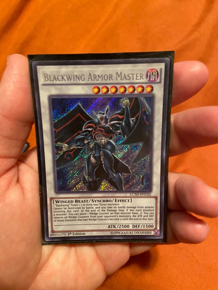 This is a legendary collection 5D's card featuring the Blackwing Armor Master creature. It is a synchro and effect card with the card number LC5D-EN132. The card is manufactured by Konami and is in English language. It belongs to the Yu-Gi-Oh! TCG game and is a secret rare card with a rarity of 1st edition. The card has a dark color attribute and a winged beast creature/monster type. It has a defense/toughness of 1500 and an attack/power of 2500. This card is perfect for collectors and players of the Yu-Gi-Oh! TCG game.