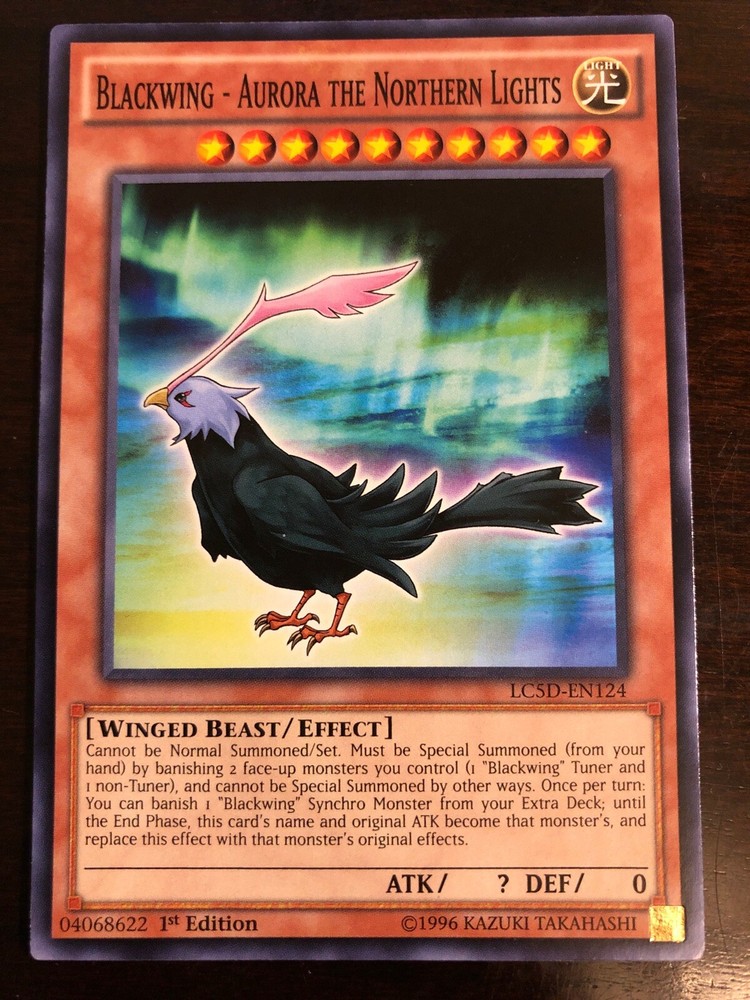 This Blackwing Aurora card is absolutely stunning—the artwork captures the Northern Lights beautifully! The card arrived in perfect Near Mint condition, just as described, and was securely packed in a plastic sleeve with extra protection. The seller’s attention to detail is impressive, and the fast shipping was a nice bonus. A must-have for any Yu-Gi-Oh! collector!