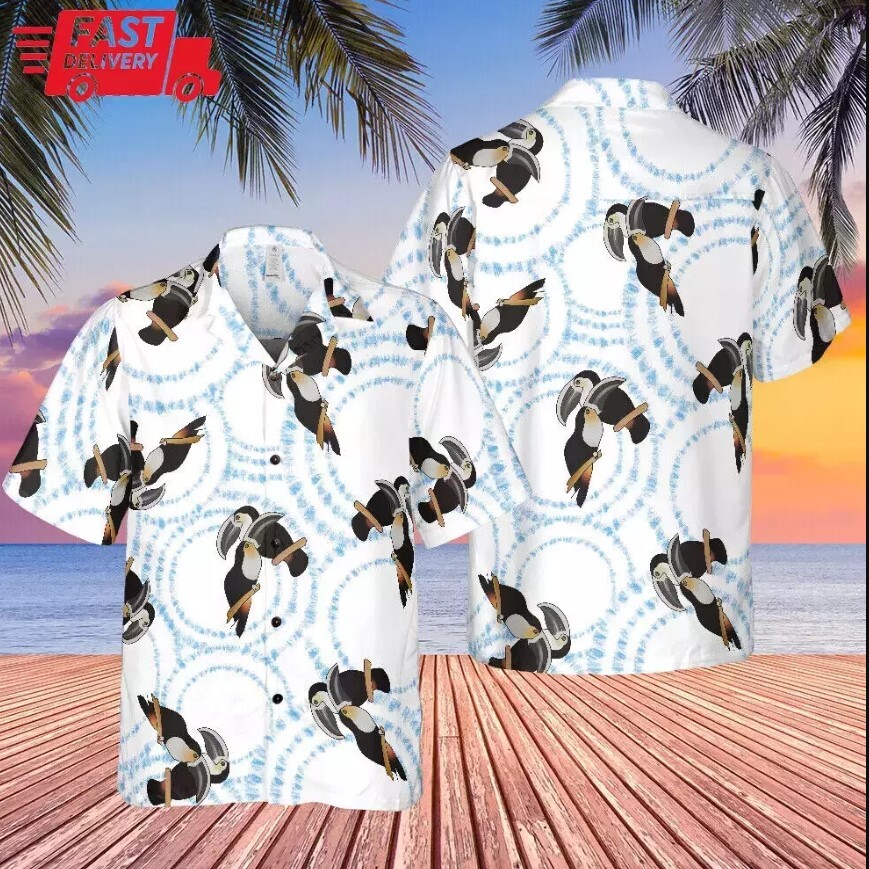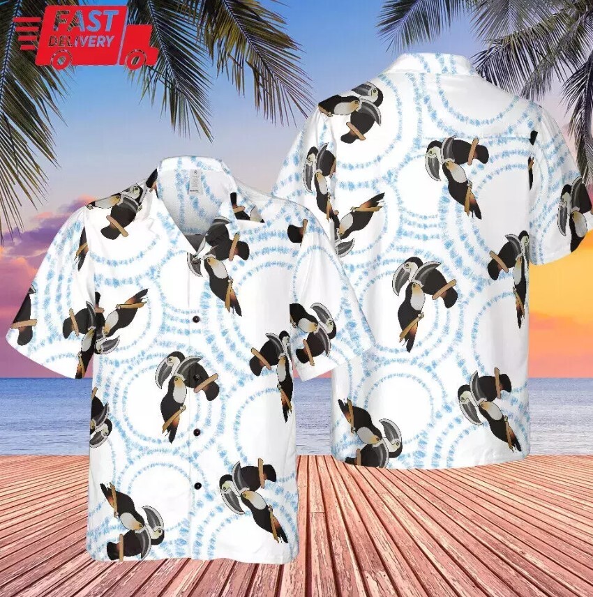 This shirt is super comfy and lightweight—perfect for hot summer days! The fabric feels soft and breathable, and the fun toucan print adds a cool, laid-back vibe. Love the chest pocket and Cuban collar for that extra style. Great for beach trips, parties, or just casual wear. Fits true to size and looks awesome! Definitely a must-have for fans of the movie or anyone who loves unique, comfy shirts.