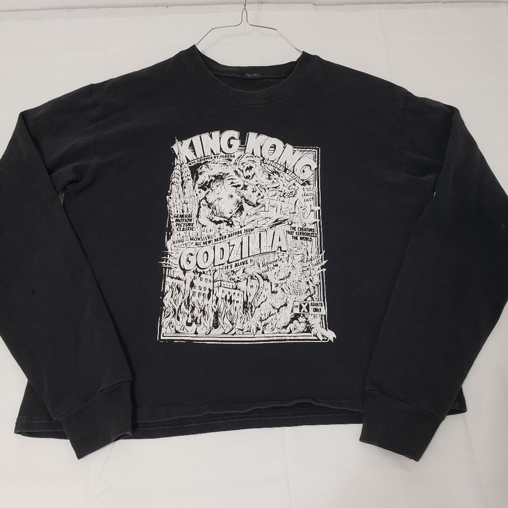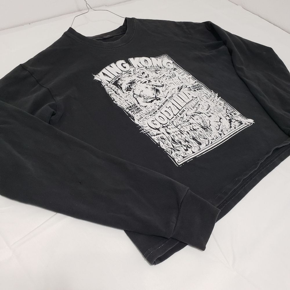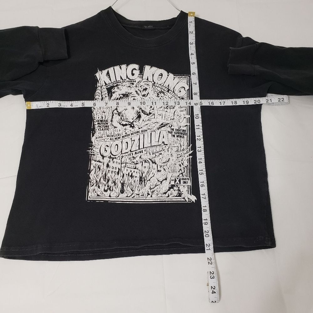 Brandy Melville John Galt Large Black Women's t-shirt featuring a King Kong and Godzilla graphic design. Perfect for casual wear. Size tag is missing please review measurements...