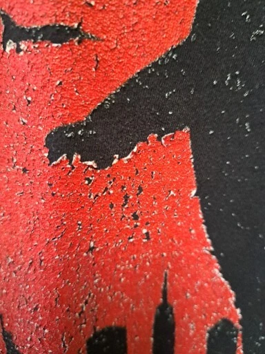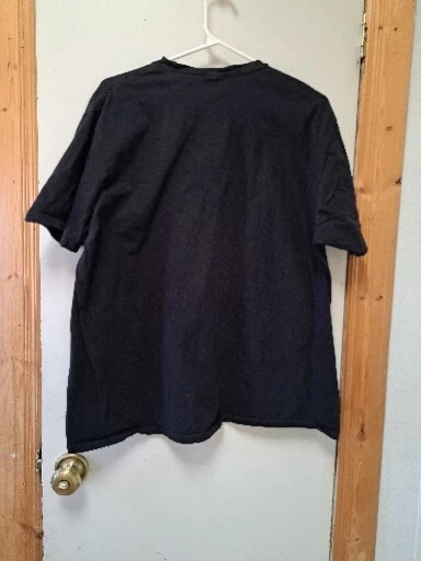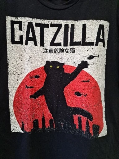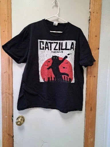 This premium t-shirt features a hilarious parody of the classic King Kong movie, but with a twist - instead of Kong, it's Catzilla! The shirt is made from soft, lightweight 100% cotton and comes in a black color. It is a unisex shirt in size XL, with a regular fit and short sleeves. The shirt has a crew neck and features a graphic print of Catzilla in all its glory. This t-shirt is perfect for any cat lover who also has a sense of humor. It is easy to care for and suitable for all seasons. Don't miss out on this unique and fun shirt! Print has vintage cracked look Al's a very small amount of peeling on his lower hand and one of the helicopters see pictures. Measurements:Pit-pit 23" Sleeves 8.5" Length down the back 27" M43
