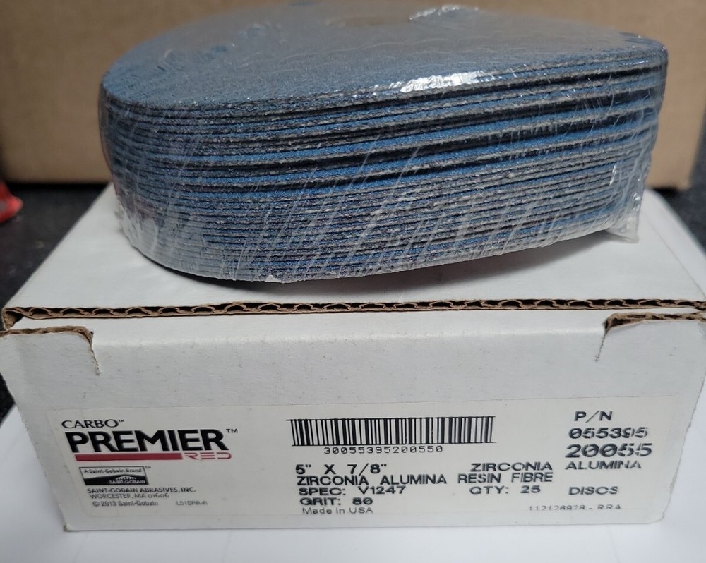 Carbo Premier Red 5" X 7/8 80grit A/Z Fiber Discs/ Box Of 25....