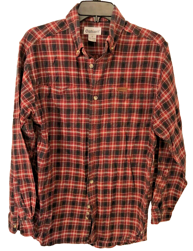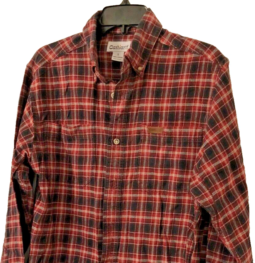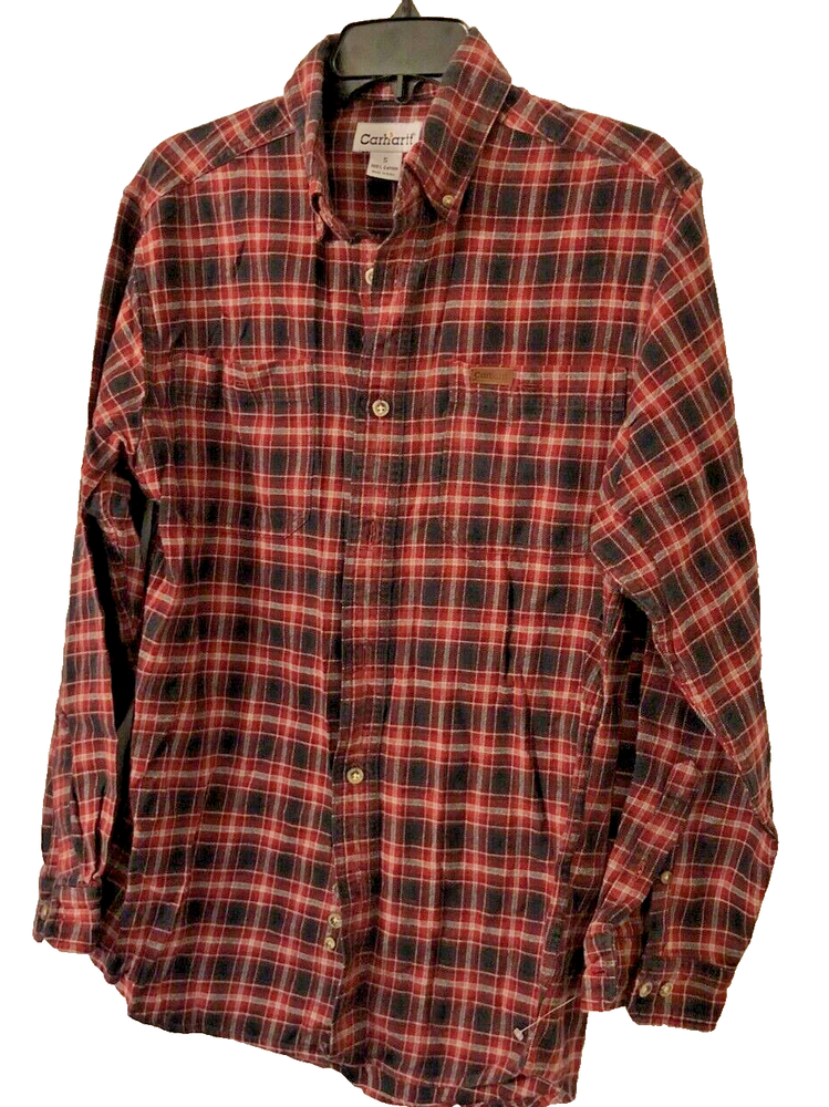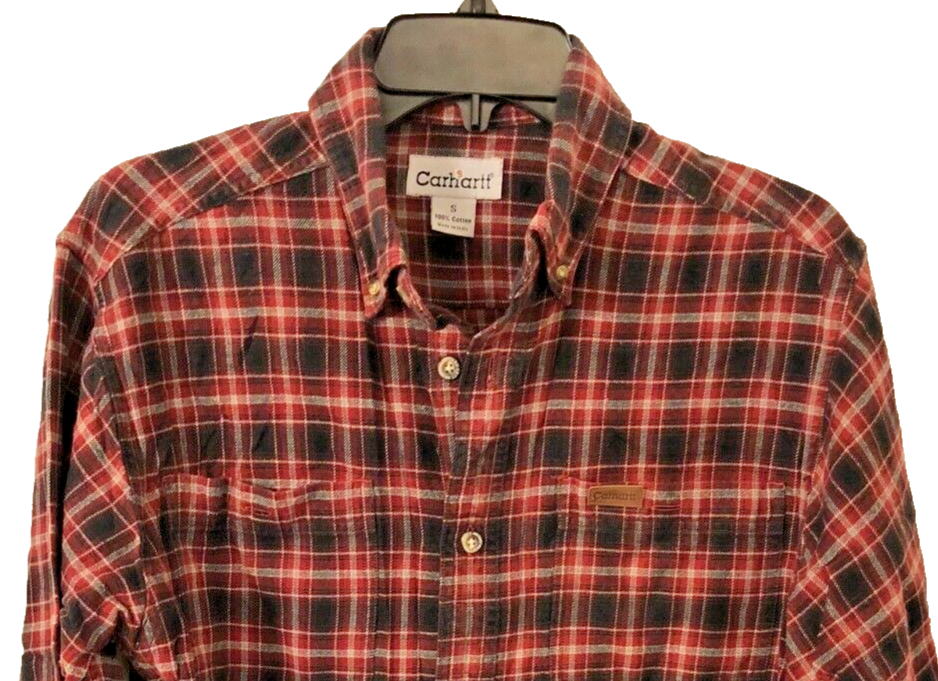 Carhartt Plaid Cotton Flannel Button Down Long Sleeve Shirt Size S nice multi colored brand new without the tag 2 button closure chest pockets width flat from armpit to armpit: 21'' Length from the shoulder: 28'' Sleeve length from the shoulder: 23.5'' thanks!