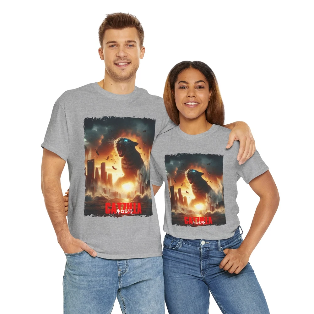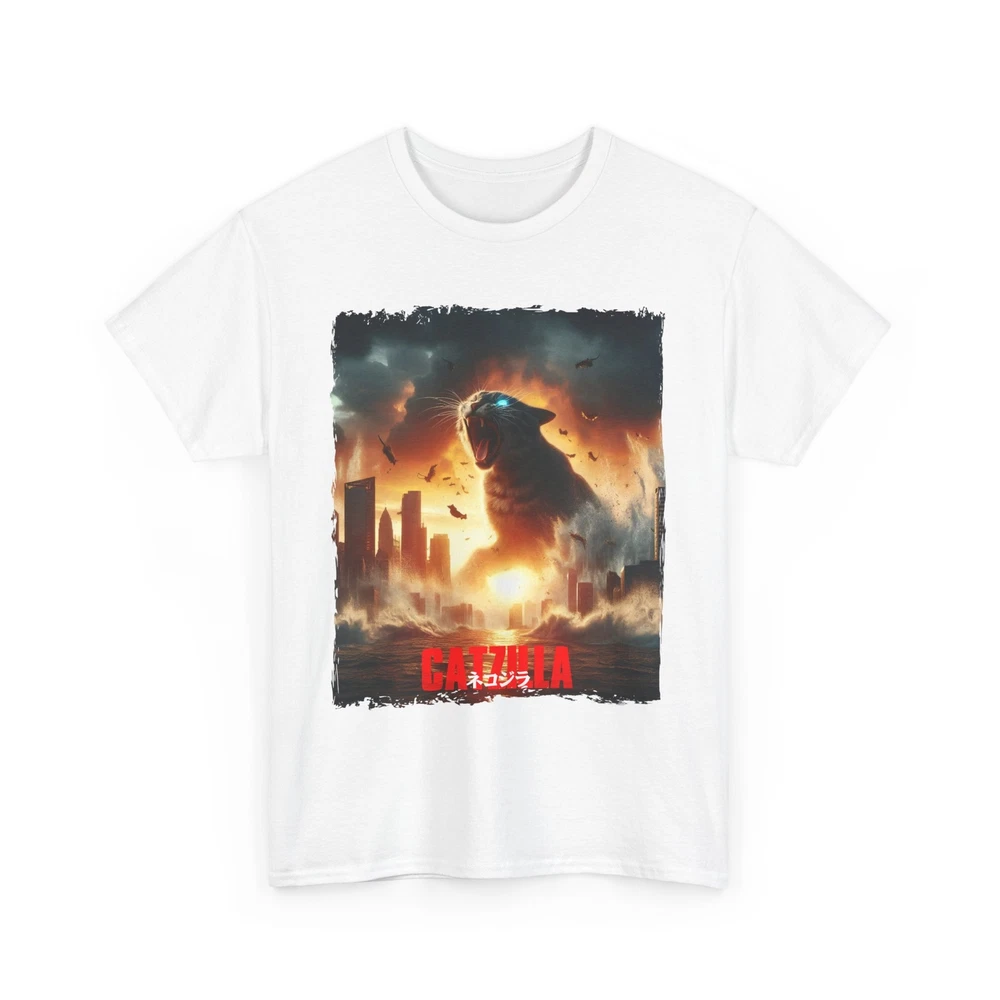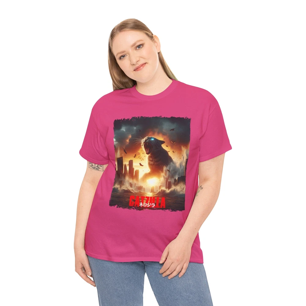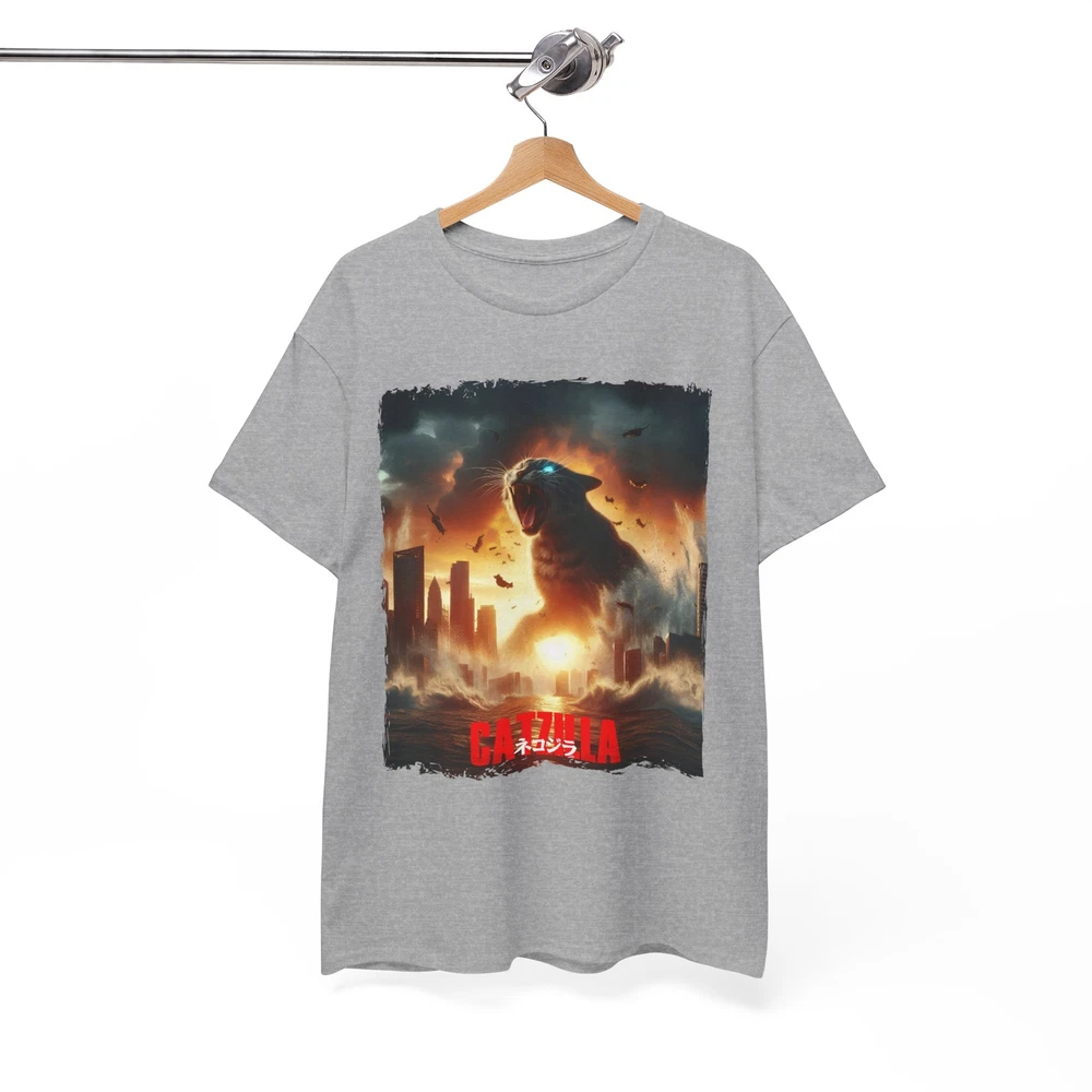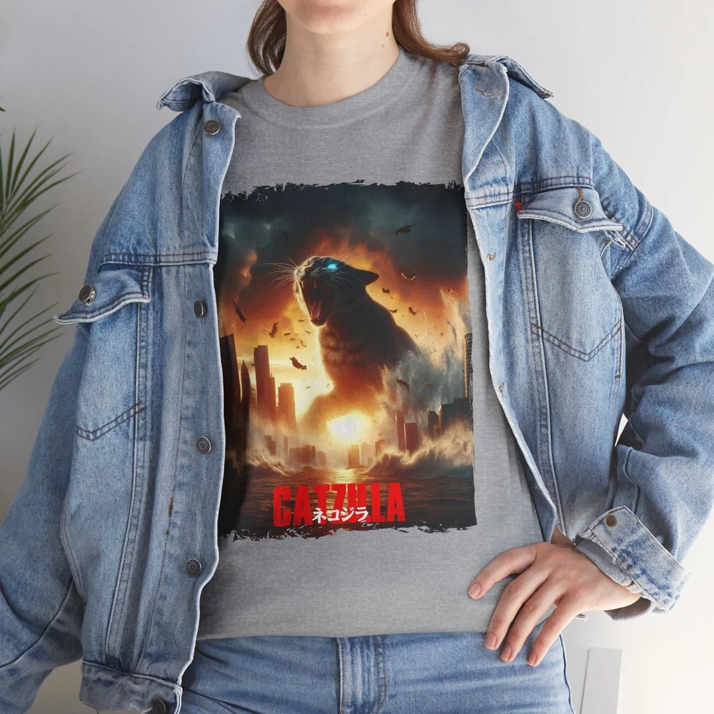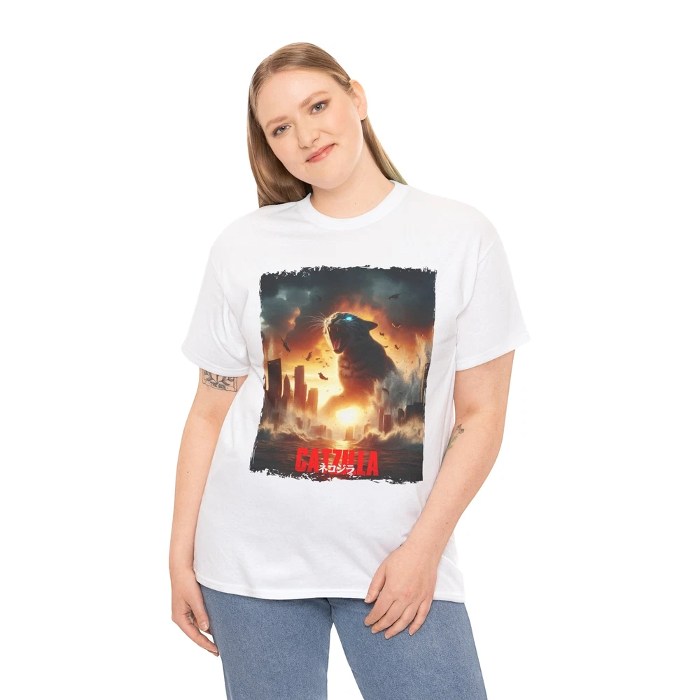 IMPERIAL S M L XL 2XL 3XL 4XL 5XL Width, in 18.00 20.00 22.00 24.00 26.00 28.00 30.00 32.00 Length, in 28.00 29.00 30.00 31.00 32.00 33.00 34.00 35.00 Sleeve length (from center back), in 15.10 16.50 18.00 19.50 21.00 22.40 23.70 25.00 Size tolerance, in 1.50 1.50 1.50 1.50 1.50 1.50 1.50 1.50 ------------------------------------------------------------------------------------------------------------------------------------------------------------------------------ METRIC S M L XL 2XL 3XL 4XL 5XL Width, cm 45.72 50.80 55.88 60.96 66.04 71.12 76.20 81.28 Length, cm 71.12 73.66 76.20 78.74 81.28 83.82 86.36 88.90 Sleeve length (from center back), cm 38.35 41.91 45.72 49.53 53.34 56.90 60.20 63.50 Size tolerance, cm 3.81 3.81 3.81 3.81 3.81 3.81 3.81 3.81 ----------------------------------------------------------------------------------------------------------------------------------------------------------------------------- Unleash feline chaos in style with our Catzilla T-Shirt , the ultimate tee for cat lovers who adore epic, funny, and monster-sized designs. Whether you're a fan of urban legends, Japanese kaiju culture, or just love a sassy cat with a giant attitude, this shirt is made for you. Crafted from 100% ethically grown U.S. cotton, this tee offers a durable yet soft medium-weight fabric (5.3 oz/yd² / 180 g/m²) that feels great on the skin and lasts wear after wear. Its classic fit ensures all-day comfort, while the crew neckline delivers a clean, timeless look perfect for both casual hangouts and relaxed weekends. Designed for cat lovers , kaiju fans , and anyone who enjoys bold, funny, and creative graphic tees, this shirt is more than just a novelty ? it's a wardrobe essential. The tear-away label guarantees a scratch-free experience with no irritation, and its Oeko-Tex certification means it's been tested for harmful substances, ensuring safety and peace of mind. Whether you're buying it for yourself or as a gift for a fellow cat fan, our Catzilla tee brings comfort, laughs, and style together in one perfect package. The unisex heavy cotton tee is the basic staple of any wardrobe. It is the foundation upon which casual fashion grows. All it needs is a personalized design to elevate things to profitability. The specially spun fibers provide a smooth surface for premium printing vividity and sharpness. No side seams mean there are no itchy interruptions under the arms. The shoulders have tape for improved durability. .: Made with medium fabric (5.3 oz/yd² (180 g/m²)) consisting of 100% cotton for year-round comfort that is sustainable and highly durable. .: The classic fit of this shirt ensures a comfy, relaxed wear while the crew neckline adds that neat, timeless look that can blend into any occasion, casual or semi-formal. .: The tear-away label means a scratch-free experience with no irritation or discomfort whatsoever. .: Made using 100% US cotton that is ethically grown and harvested. Gildan is also a proud member of the US Cotton Trust Protocol ensuring ethical and sustainable means of production. This blank tee is certified by Oeko-Tex for safety and quality assurance. The classic fit ensures a comfy, relaxed wear, while the crew neckline adds a neat, timeless look suitable for any occasion, casual or semi-formal. The tear-away label provide a scratch-free experience, ensuring no irritation or discomfort. Key Features: - **Shoulder Tape**: Twill tape covers the shoulder seams to stabilize the back of the garment and prevent stretching. - **No Side Seams**: Knitted in one piece using tubular knit, reducing fabric waste and making the garment more attractive. - **Ribbed Knit Collar**: Highly elastic ribbed knit collar helps retain its shape. - **Durable Fabric**: Specially spun fibers create a smooth surface for premium printing vividity and sharpness. Care Instructions: - Machine wash: warm (max 40C or 105F) - Non-chlorine bleach as needed - Tumble dry: medium - Do not iron - Do not dry clean This unisex heavy cotton tee is the foundation of casual fashion, providing a smooth surface for vibrant and sharp prints. Made from ethically grown and harvested cotton. EU representative : Invicticonte LLC, 2105 Vista Oeste St NW Suite E 1187, Albuquerque, NM, 87120, US Product information : Gildan 5000, 2 year warranty in EU and Northern Ireland as per Directive 1999/44/EC Warnings, Hazard : For adults, Made in Nicaragua Care instructions : Machine wash: warm (max 40C or 105F), Non-chlorine: bleach as needed, Tumble dry: medium, Do not iron, Do not dryclean Keywords: catzilla t-shirt, funny cat shirt, kaiju cat tee, cat graphic t-shirt, monster cat shirt, cat lovers gift, Japanese inspired shirt, cotton t-shirt USA, giant cat tee, urban cat design