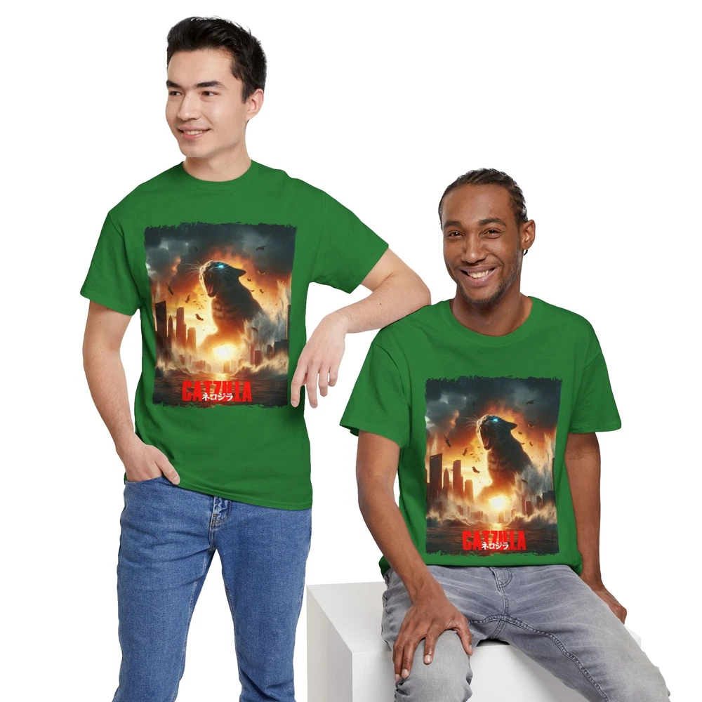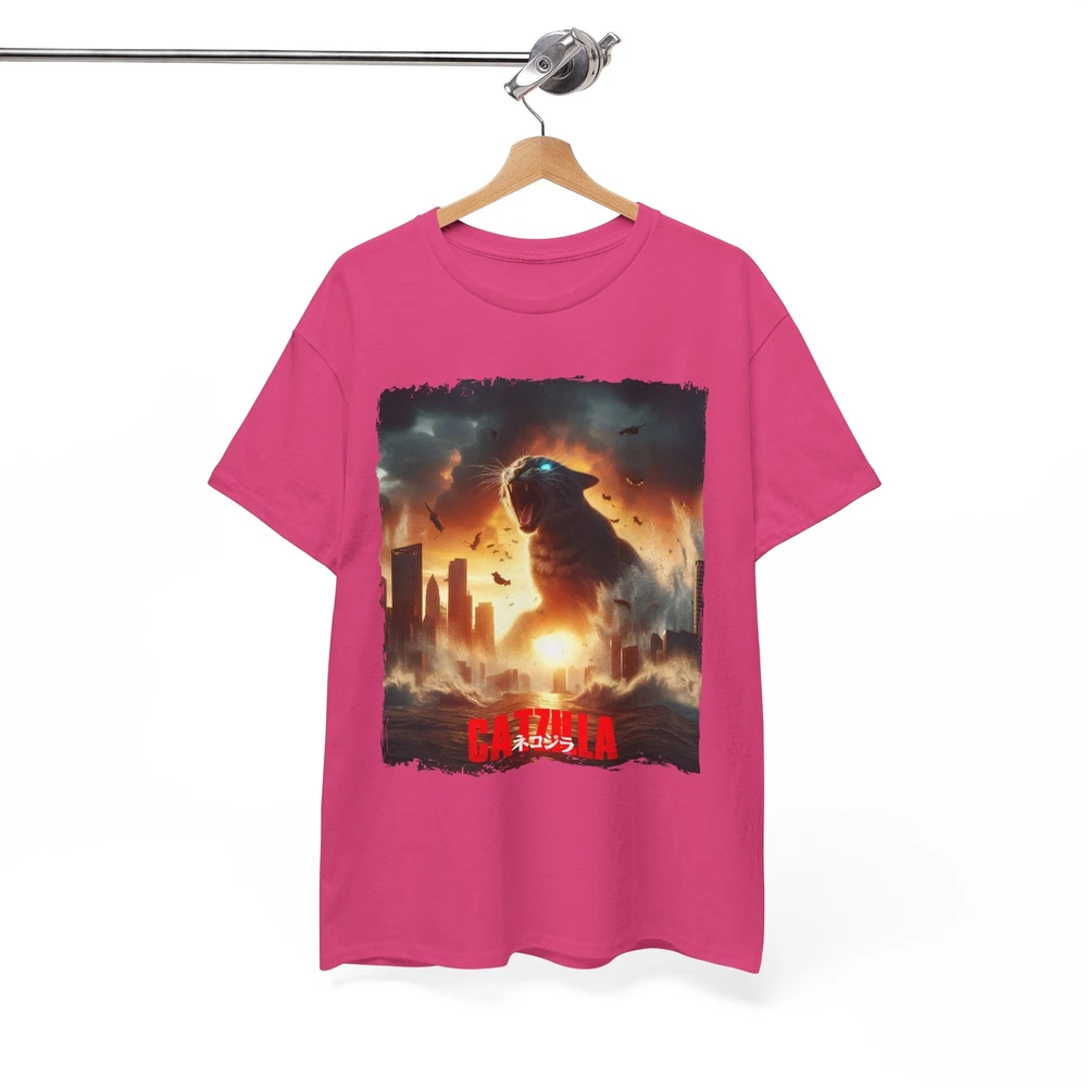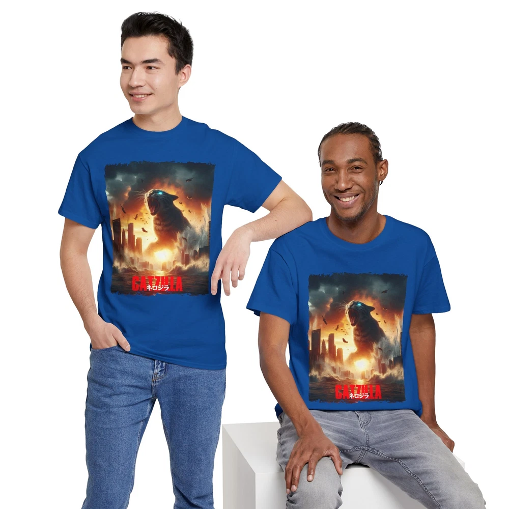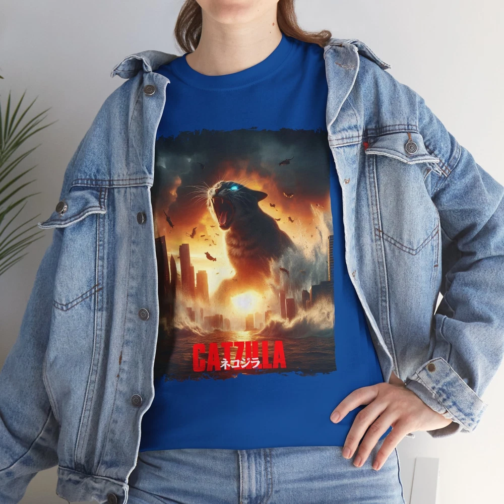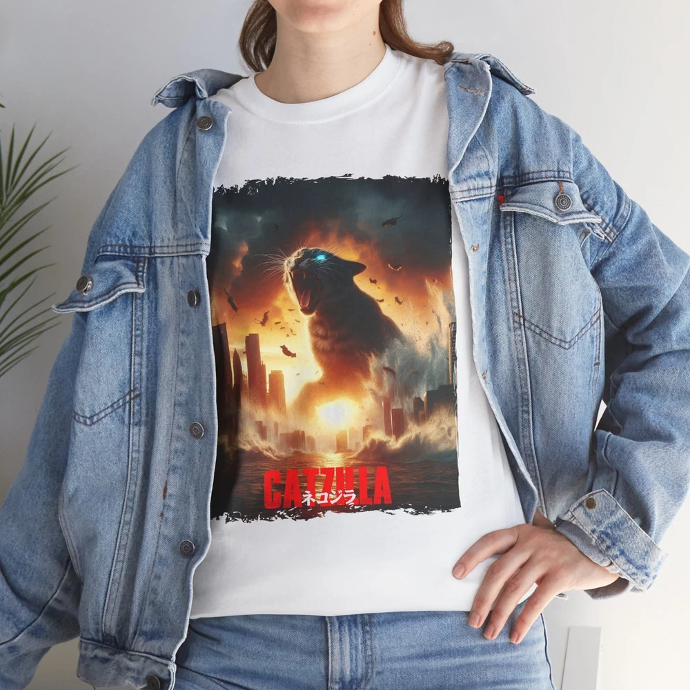 IMPERIAL S M L XL 2XL 3XL 4XL 5XL Width, in 18.00 20.00 22.00 24.00 26.00 28.00 30.00 32.00 Length, in 28.00 29.00 30.00 31.00 32.00 33.00 34.00 35.00 Sleeve length (from center back), in 15.10 16.50 18.00 19.50 21.00 22.40 23.70 25.00 Size tolerance, in 1.50 1.50 1.50 1.50 1.50 1.50 1.50 1.50 ------------------------------------------------------------------------------------------------------------------------------------------------------------------------------ METRIC S M L XL 2XL 3XL 4XL 5XL Width, cm 45.72 50.80 55.88 60.96 66.04 71.12 76.20 81.28 Length, cm 71.12 73.66 76.20 78.74 81.28 83.82 86.36 88.90 Sleeve length (from center back), cm 38.35 41.91 45.72 49.53 53.34 56.90 60.20 63.50 Size tolerance, cm 3.81 3.81 3.81 3.81 3.81 3.81 3.81 3.81 ----------------------------------------------------------------------------------------------------------------------------------------------------------------------------- Unleash feline chaos in style with our Catzilla T-Shirt , the ultimate tee for cat lovers who adore epic, funny, and monster-sized designs. Whether you're a fan of urban legends, Japanese kaiju culture, or just love a sassy cat with a giant attitude, this shirt is made for you. Crafted from 100% ethically grown U.S. cotton, this tee offers a durable yet soft medium-weight fabric (5.3 oz/yd² / 180 g/m²) that feels great on the skin and lasts wear after wear. Its classic fit ensures all-day comfort, while the crew neckline delivers a clean, timeless look perfect for both casual hangouts and relaxed weekends. Designed for cat lovers , kaiju fans , and anyone who enjoys bold, funny, and creative graphic tees, this shirt is more than just a novelty ? it's a wardrobe essential. The tear-away label guarantees a scratch-free experience with no irritation, and its Oeko-Tex certification means it's been tested for harmful substances, ensuring safety and peace of mind. Whether you're buying it for yourself or as a gift for a fellow cat fan, our Catzilla tee brings comfort, laughs, and style together in one perfect package. The unisex heavy cotton tee is the basic staple of any wardrobe. It is the foundation upon which casual fashion grows. All it needs is a personalized design to elevate things to profitability. The specially spun fibers provide a smooth surface for premium printing vividity and sharpness. No side seams mean there are no itchy interruptions under the arms. The shoulders have tape for improved durability. .: Made with medium fabric (5.3 oz/yd² (180 g/m²)) consisting of 100% cotton for year-round comfort that is sustainable and highly durable. .: The classic fit of this shirt ensures a comfy, relaxed wear while the crew neckline adds that neat, timeless look that can blend into any occasion, casual or semi-formal. .: The tear-away label means a scratch-free experience with no irritation or discomfort whatsoever. .: Made using 100% US cotton that is ethically grown and harvested. Gildan is also a proud member of the US Cotton Trust Protocol ensuring ethical and sustainable means of production. This blank tee is certified by Oeko-Tex for safety and quality assurance. The classic fit ensures a comfy, relaxed wear, while the crew neckline adds a neat, timeless look suitable for any occasion, casual or semi-formal. The tear-away label provide a scratch-free experience, ensuring no irritation or discomfort. Key Features: - **Shoulder Tape**: Twill tape covers the shoulder seams to stabilize the back of the garment and prevent stretching. - **No Side Seams**: Knitted in one piece using tubular knit, reducing fabric waste and making the garment more attractive. - **Ribbed Knit Collar**: Highly elastic ribbed knit collar helps retain its shape. - **Durable Fabric**: Specially spun fibers create a smooth surface for premium printing vividity and sharpness. Care Instructions: - Machine wash: warm (max 40C or 105F) - Non-chlorine bleach as needed - Tumble dry: medium - Do not iron - Do not dry clean This unisex heavy cotton tee is the foundation of casual fashion, providing a smooth surface for vibrant and sharp prints. Made from ethically grown and harvested cotton. EU representative : Invicticonte LLC, 2105 Vista Oeste St NW Suite E 1187, Albuquerque, NM, 87120, US Product information : Gildan 5000, 2 year warranty in EU and Northern Ireland as per Directive 1999/44/EC Warnings, Hazard : For adults, Made in Nicaragua Care instructions : Machine wash: warm (max 40C or 105F), Non-chlorine: bleach as needed, Tumble dry: medium, Do not iron, Do not dryclean Keywords: catzilla t-shirt, funny cat shirt, kaiju cat tee, cat graphic t-shirt, monster cat shirt, cat lovers gift, Japanese inspired shirt, cotton t-shirt USA, giant cat tee, urban cat design