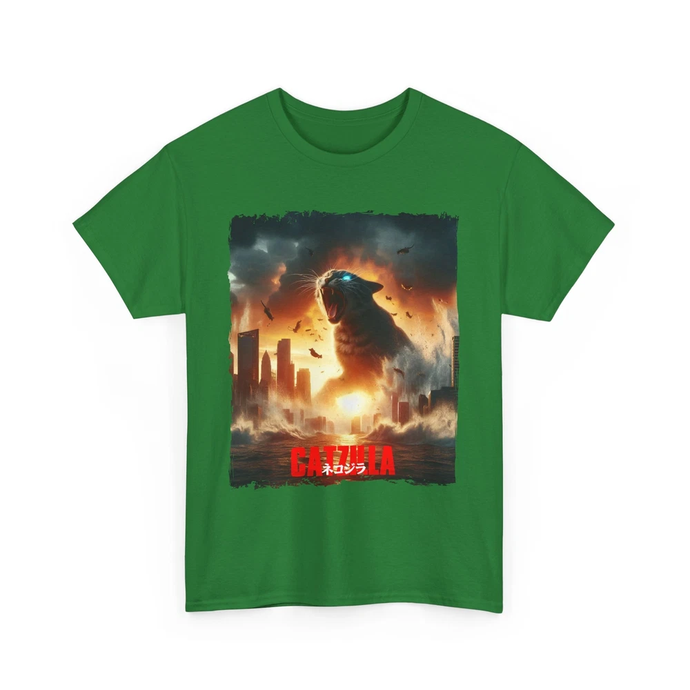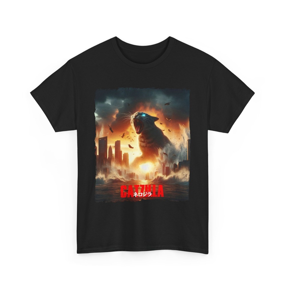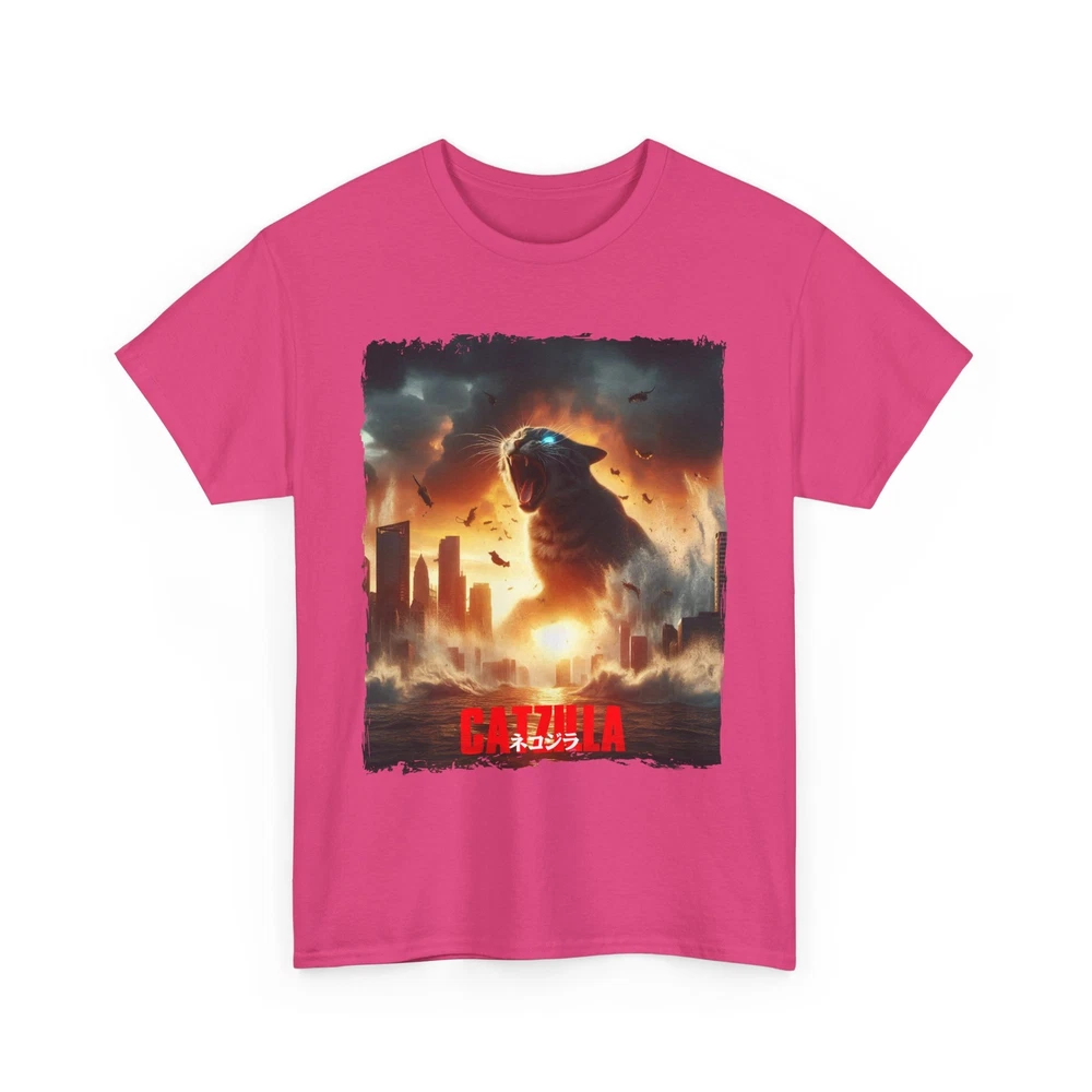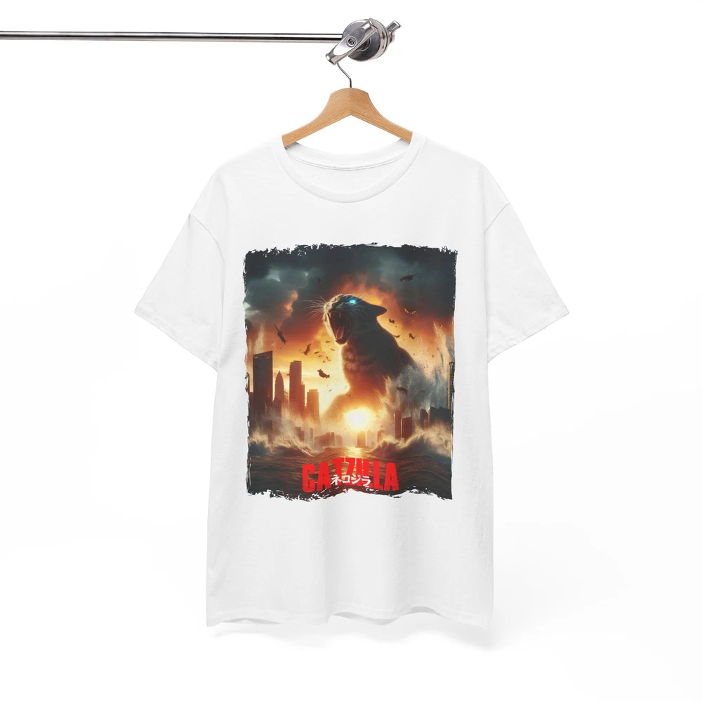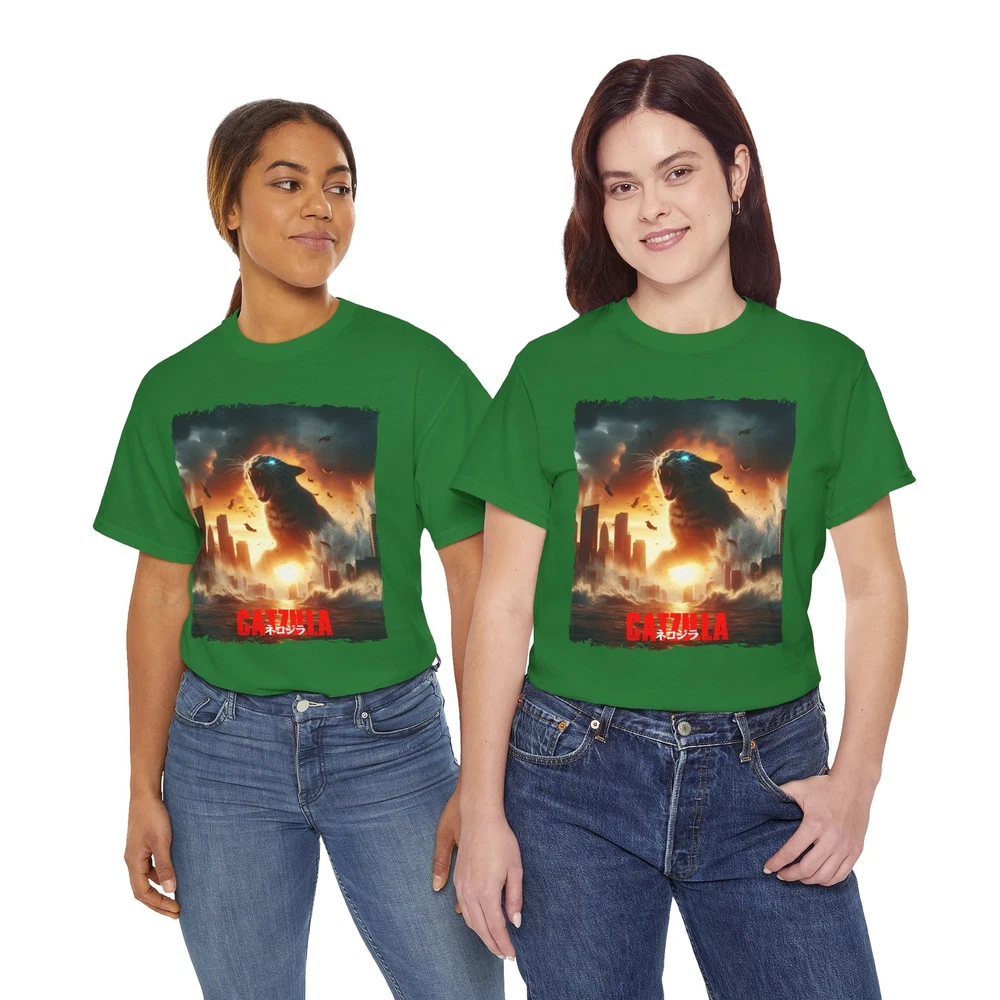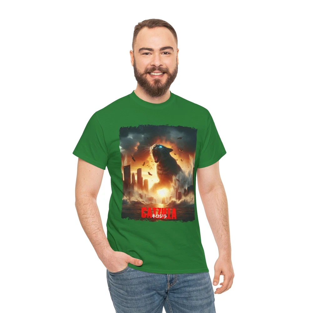 IMPERIAL S M L XL 2XL 3XL 4XL 5XL Width, in 18.00 20.00 22.00 24.00 26.00 28.00 30.00 32.00 Length, in 28.00 29.00 30.00 31.00 32.00 33.00 34.00 35.00 Sleeve length (from center back), in 15.10 16.50 18.00 19.50 21.00 22.40 23.70 25.00 Size tolerance, in 1.50 1.50 1.50 1.50 1.50 1.50 1.50 1.50 ------------------------------------------------------------------------------------------------------------------------------------------------------------------------------ METRIC S M L XL 2XL 3XL 4XL 5XL Width, cm 45.72 50.80 55.88 60.96 66.04 71.12 76.20 81.28 Length, cm 71.12 73.66 76.20 78.74 81.28 83.82 86.36 88.90 Sleeve length (from center back), cm 38.35 41.91 45.72 49.53 53.34 56.90 60.20 63.50 Size tolerance, cm 3.81 3.81 3.81 3.81 3.81 3.81 3.81 3.81 ----------------------------------------------------------------------------------------------------------------------------------------------------------------------------- Unleash feline chaos in style with our Catzilla T-Shirt , the ultimate tee for cat lovers who adore epic, funny, and monster-sized designs. Whether you're a fan of urban legends, Japanese kaiju culture, or just love a sassy cat with a giant attitude, this shirt is made for you. Crafted from 100% ethically grown U.S. cotton, this tee offers a durable yet soft medium-weight fabric (5.3 oz/yd² / 180 g/m²) that feels great on the skin and lasts wear after wear. Its classic fit ensures all-day comfort, while the crew neckline delivers a clean, timeless look perfect for both casual hangouts and relaxed weekends. Designed for cat lovers , kaiju fans , and anyone who enjoys bold, funny, and creative graphic tees, this shirt is more than just a novelty ? it's a wardrobe essential. The tear-away label guarantees a scratch-free experience with no irritation, and its Oeko-Tex certification means it's been tested for harmful substances, ensuring safety and peace of mind. Whether you're buying it for yourself or as a gift for a fellow cat fan, our Catzilla tee brings comfort, laughs, and style together in one perfect package. The unisex heavy cotton tee is the basic staple of any wardrobe. It is the foundation upon which casual fashion grows. All it needs is a personalized design to elevate things to profitability. The specially spun fibers provide a smooth surface for premium printing vividity and sharpness. No side seams mean there are no itchy interruptions under the arms. The shoulders have tape for improved durability. .: Made with medium fabric (5.3 oz/yd² (180 g/m²)) consisting of 100% cotton for year-round comfort that is sustainable and highly durable. .: The classic fit of this shirt ensures a comfy, relaxed wear while the crew neckline adds that neat, timeless look that can blend into any occasion, casual or semi-formal. .: The tear-away label means a scratch-free experience with no irritation or discomfort whatsoever. .: Made using 100% US cotton that is ethically grown and harvested. Gildan is also a proud member of the US Cotton Trust Protocol ensuring ethical and sustainable means of production. This blank tee is certified by Oeko-Tex for safety and quality assurance. The classic fit ensures a comfy, relaxed wear, while the crew neckline adds a neat, timeless look suitable for any occasion, casual or semi-formal. The tear-away label provide a scratch-free experience, ensuring no irritation or discomfort. Key Features: - **Shoulder Tape**: Twill tape covers the shoulder seams to stabilize the back of the garment and prevent stretching. - **No Side Seams**: Knitted in one piece using tubular knit, reducing fabric waste and making the garment more attractive. - **Ribbed Knit Collar**: Highly elastic ribbed knit collar helps retain its shape. - **Durable Fabric**: Specially spun fibers create a smooth surface for premium printing vividity and sharpness. Care Instructions: - Machine wash: warm (max 40C or 105F) - Non-chlorine bleach as needed - Tumble dry: medium - Do not iron - Do not dry clean This unisex heavy cotton tee is the foundation of casual fashion, providing a smooth surface for vibrant and sharp prints. Made from ethically grown and harvested cotton. EU representative : Invicticonte LLC, 2105 Vista Oeste St NW Suite E 1187, Albuquerque, NM, 87120, US Product information : Gildan 5000, 2 year warranty in EU and Northern Ireland as per Directive 1999/44/EC Warnings, Hazard : For adults, Made in Nicaragua Care instructions : Machine wash: warm (max 40C or 105F), Non-chlorine: bleach as needed, Tumble dry: medium, Do not iron, Do not dryclean Keywords: catzilla t-shirt, funny cat shirt, kaiju cat tee, cat graphic t-shirt, monster cat shirt, cat lovers gift, Japanese inspired shirt, cotton t-shirt USA, giant cat tee, urban cat design