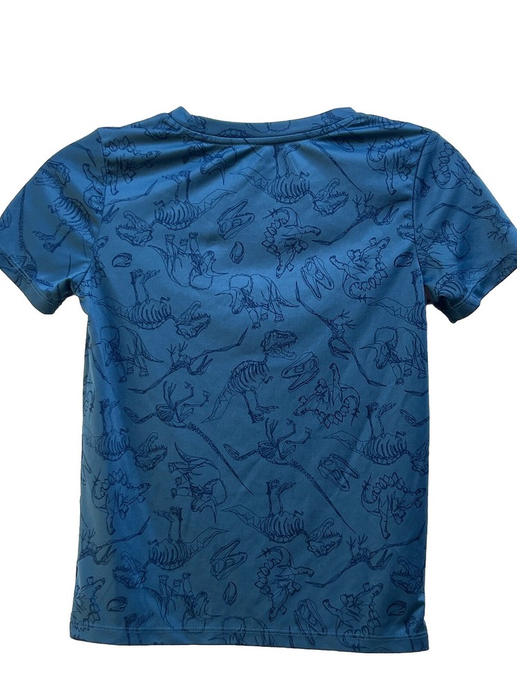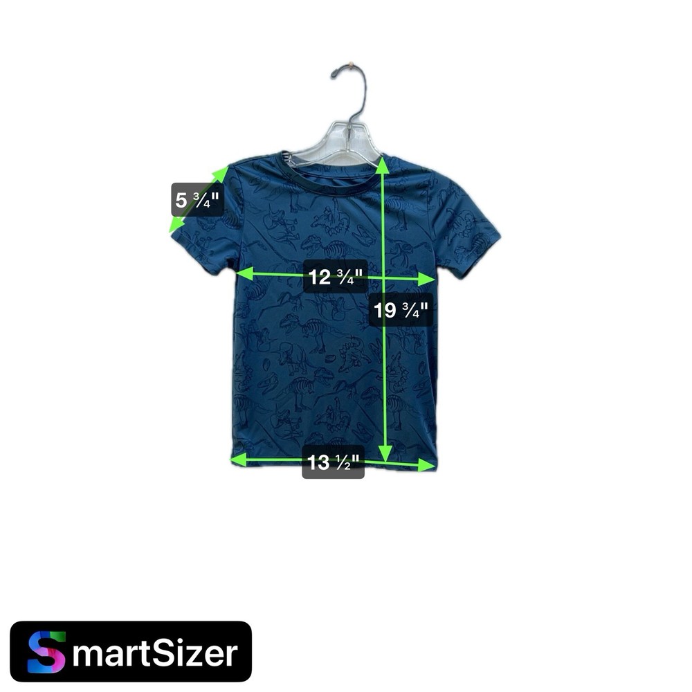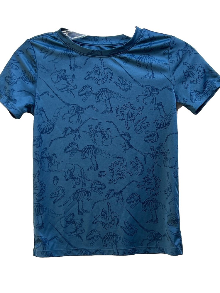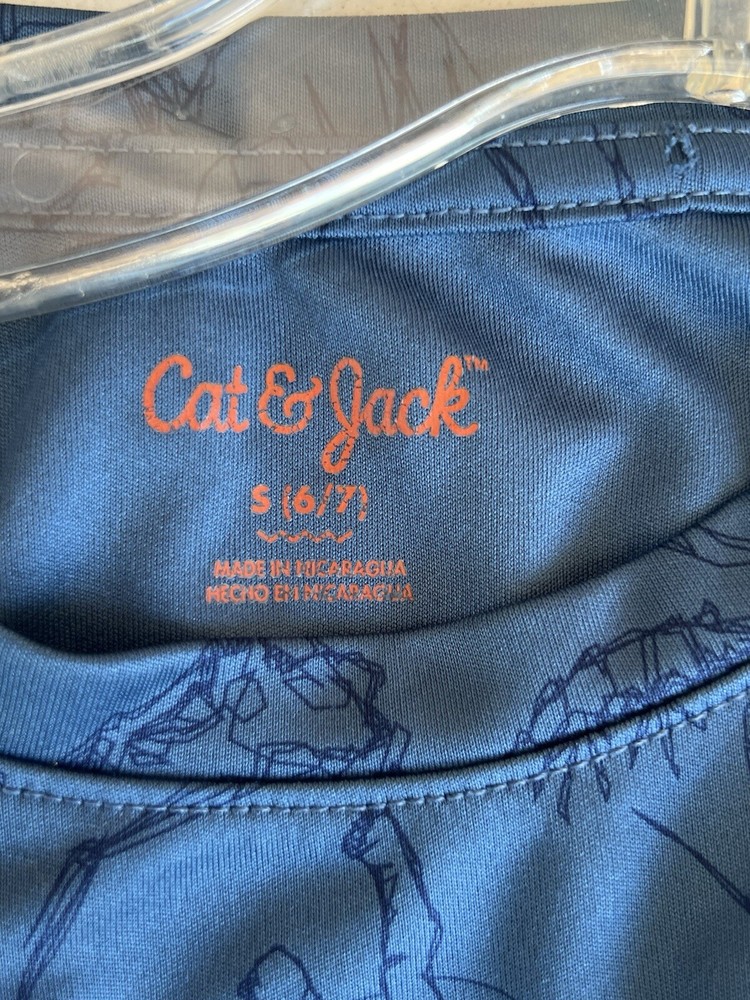 This Cat & Jack kids t-shirt is a must-have for any young animal lover. The shirt features a fun animal print pattern in shades of blue, with a crew neckline and short sleeves for comfort. It's perfect for wearing on walks, to school, or for running and jogging. Made from a blended fabric wash, this t-shirt is machine washable and easy to care for. The shirt has a classic fit and is available in size S (6-7). It's a great addition to any young boy's wardrobe, and is sure to be a hit with any fan of Godzilla or animals.