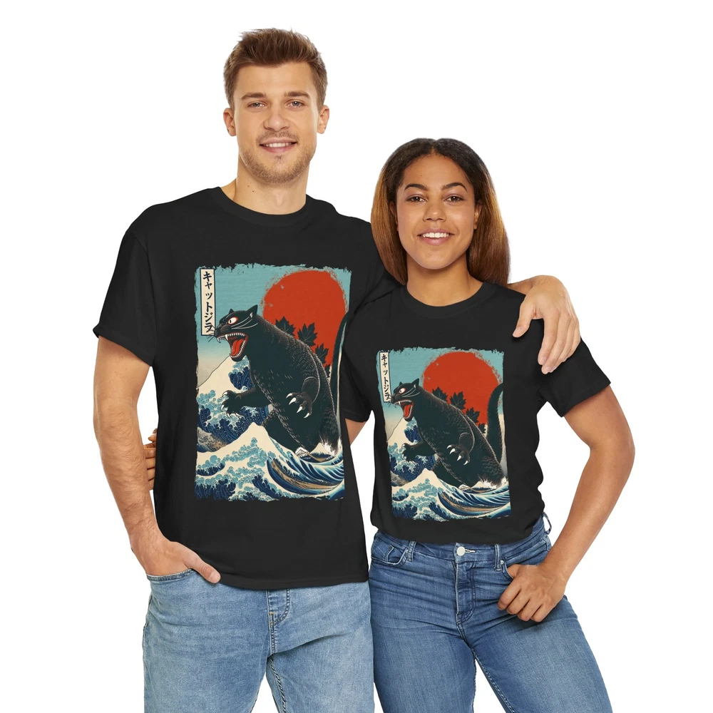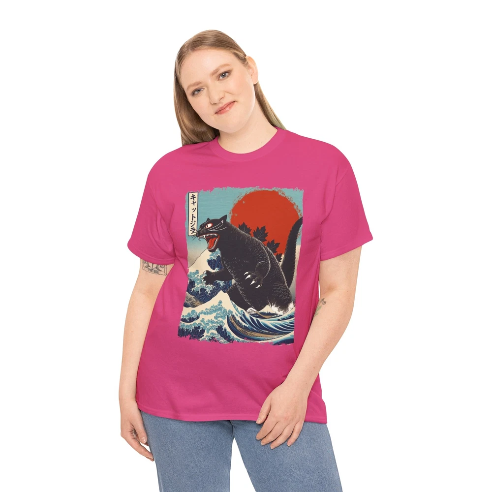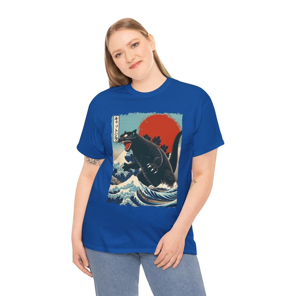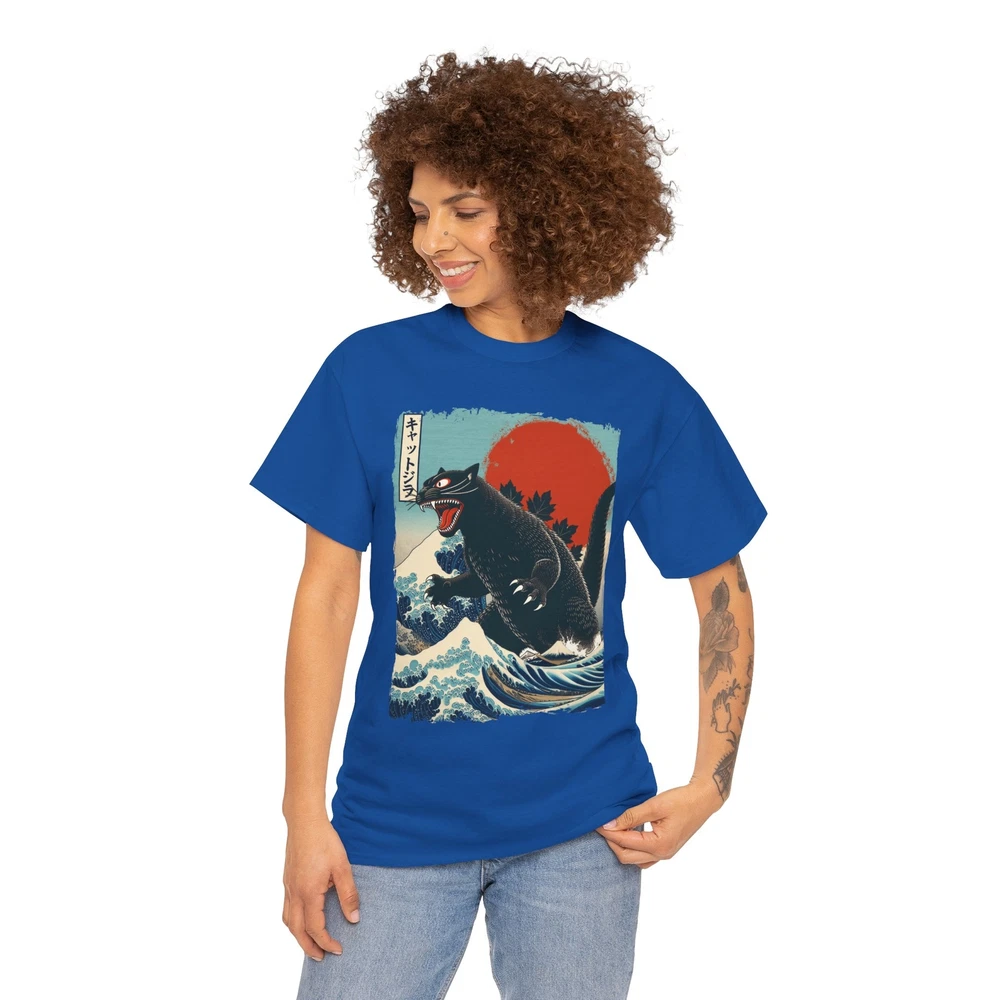 IMPERIAL S M L XL 2XL 3XL 4XL 5XL Width, in 18.00 20.00 22.00 24.00 26.00 28.00 30.00 32.00 Length, in 28.00 29.00 30.00 31.00 32.00 33.00 34.00 35.00 Sleeve length (from center back), in 15.10 16.50 18.00 19.50 21.00 22.40 23.70 25.00 Size tolerance, in 1.50 1.50 1.50 1.50 1.50 1.50 1.50 1.50 ------------------------------------------------------------------------------------------------------------------------------------------------------------------------------ METRIC S M L XL 2XL 3XL 4XL 5XL Width, cm 45.72 50.80 55.88 60.96 66.04 71.12 76.20 81.28 Length, cm 71.12 73.66 76.20 78.74 81.28 83.82 86.36 88.90 Sleeve length (from center back), cm 38.35 41.91 45.72 49.53 53.34 56.90 60.20 63.50 Size tolerance, cm 3.81 3.81 3.81 3.81 3.81 3.81 3.81 3.81 ----------------------------------------------------------------------------------------------------------------------------------------------------------------------------- Unleash feline chaos in style with our Catzilla T-Shirt , the ultimate tee for cat lovers who adore epic, funny, and monster-sized designs. Whether you're a fan of urban legends, Japanese kaiju culture, or just love a sassy cat with a giant attitude, this shirt is made for you. Crafted from 100% ethically grown U.S. cotton, this tee offers a durable yet soft medium-weight fabric (5.3 oz/yd² / 180 g/m²) that feels great on the skin and lasts wear after wear. Its classic fit ensures all-day comfort, while the crew neckline delivers a clean, timeless look perfect for both casual hangouts and relaxed weekends. Designed for cat lovers , kaiju fans , and anyone who enjoys bold, funny, and creative graphic tees, this shirt is more than just a novelty ? it's a wardrobe essential. The tear-away label guarantees a scratch-free experience with no irritation, and its Oeko-Tex certification means it's been tested for harmful substances, ensuring safety and peace of mind. Whether you're buying it for yourself or as a gift for a fellow cat fan, our Catzilla tee brings comfort, laughs, and style together in one perfect package. The unisex heavy cotton tee is the basic staple of any wardrobe. It is the foundation upon which casual fashion grows. All it needs is a personalized design to elevate things to profitability. The specially spun fibers provide a smooth surface for premium printing vividity and sharpness. No side seams mean there are no itchy interruptions under the arms. The shoulders have tape for improved durability. .: Made with medium fabric (5.3 oz/yd² (180 g/m²)) consisting of 100% cotton for year-round comfort that is sustainable and highly durable. .: The classic fit of this shirt ensures a comfy, relaxed wear while the crew neckline adds that neat, timeless look that can blend into any occasion, casual or semi-formal. .: The tear-away label means a scratch-free experience with no irritation or discomfort whatsoever. .: Made using 100% US cotton that is ethically grown and harvested. Gildan is also a proud member of the US Cotton Trust Protocol ensuring ethical and sustainable means of production. This blank tee is certified by Oeko-Tex for safety and quality assurance. The classic fit ensures a comfy, relaxed wear, while the crew neckline adds a neat, timeless look suitable for any occasion, casual or semi-formal. The tear-away label provide a scratch-free experience, ensuring no irritation or discomfort. Key Features: - **Shoulder Tape**: Twill tape covers the shoulder seams to stabilize the back of the garment and prevent stretching. - **No Side Seams**: Knitted in one piece using tubular knit, reducing fabric waste and making the garment more attractive. - **Ribbed Knit Collar**: Highly elastic ribbed knit collar helps retain its shape. - **Durable Fabric**: Specially spun fibers create a smooth surface for premium printing vividity and sharpness. Care Instructions: - Machine wash: warm (max 40C or 105F) - Non-chlorine bleach as needed - Tumble dry: medium - Do not iron - Do not dry clean This unisex heavy cotton tee is the foundation of casual fashion, providing a smooth surface for vibrant and sharp prints. Made from ethically grown and harvested cotton. EU representative : Invicticonte LLC, 2105 Vista Oeste St NW Suite E 1187, Albuquerque, NM, 87120, US Product information : Gildan 5000, 2 year warranty in EU and Northern Ireland as per Directive 1999/44/EC Warnings, Hazard : For adults, Made in Nicaragua Care instructions : Machine wash: warm (max 40C or 105F), Non-chlorine: bleach as needed, Tumble dry: medium, Do not iron, Do not dryclean Keywords: catzilla t-shirt, funny cat shirt, kaiju cat tee, cat graphic t-shirt, monster cat shirt, cat lovers gift, Japanese inspired shirt, cotton t-shirt USA, giant cat tee, urban cat design