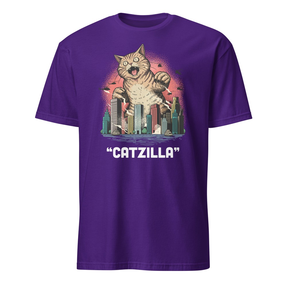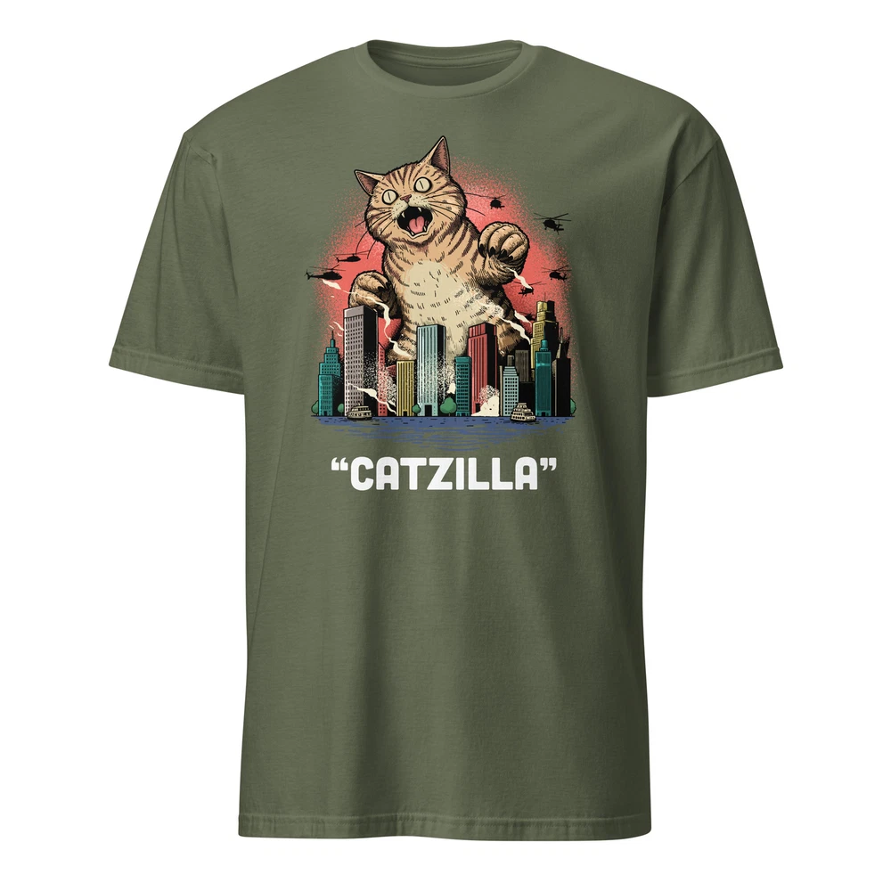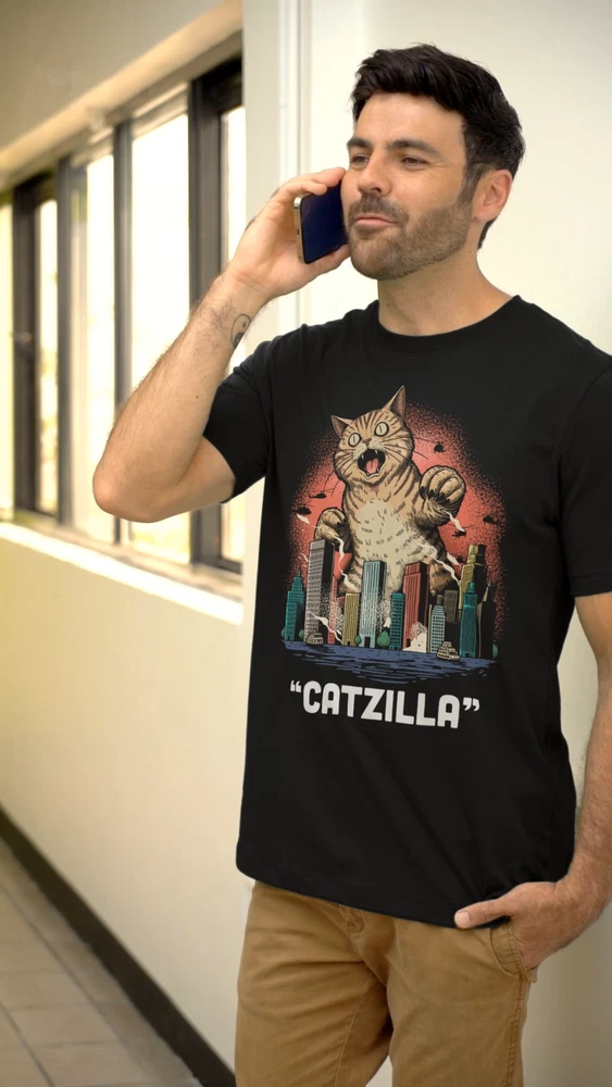 Unleash the ultimate cat-astrophe with this hilarious Catzilla T-shirt! Featuring a giant, roaring cat towering over a city like a kaiju , this fun and eye-catching design is perfect for cat lovers, Japanese monster movie fans , and anyone who loves quirky, playful fashion. Whether you're lounging at home with your feline friend or turning heads in public, this shirt is a must-have for your collection! Features: Super Soft & Comfortable – Made from 100% ring-spun cotton Durable & Lightweight – 4.5 oz/yd² (153 g/m²) fabric ensures breathability Quality Construction – Shoulder-to-shoulder taping enhances durability No Center Crease – Quarter-turned to eliminate creasing down the center Perfect for: 🐱 Cat lovers, kitten enthusiasts, and proud pet owners 🎥 Fans of kaiju, monster movies, and Japanese pop culture 😂 Anyone who loves humorous, meme-inspired designs 🎁 A great gift for birthdays, holidays, or just for fun 🔥 Get ready to rule the city in this Catzilla tee – order yours today! 🔥 This product is made especially for you as soon as you place an order, which is why it takes us a bit longer to deliver it to you. Making products on demand instead of in bulk helps reduce overproduction, so thank you for making thoughtful purchasing decisions! Size guide LENGTH (inches) WIDTH (inches) S 28 18 M 29 20 L 30 22 XL 31 24 2XL 32 26 3XL 33 28 LENGTH (cm) WIDTH (cm) S 71.1 45.7 M 73.7 50.8 L 76.2 55.9 XL 78.7 61 2XL 81.3 66 3XL 83.8 71.1