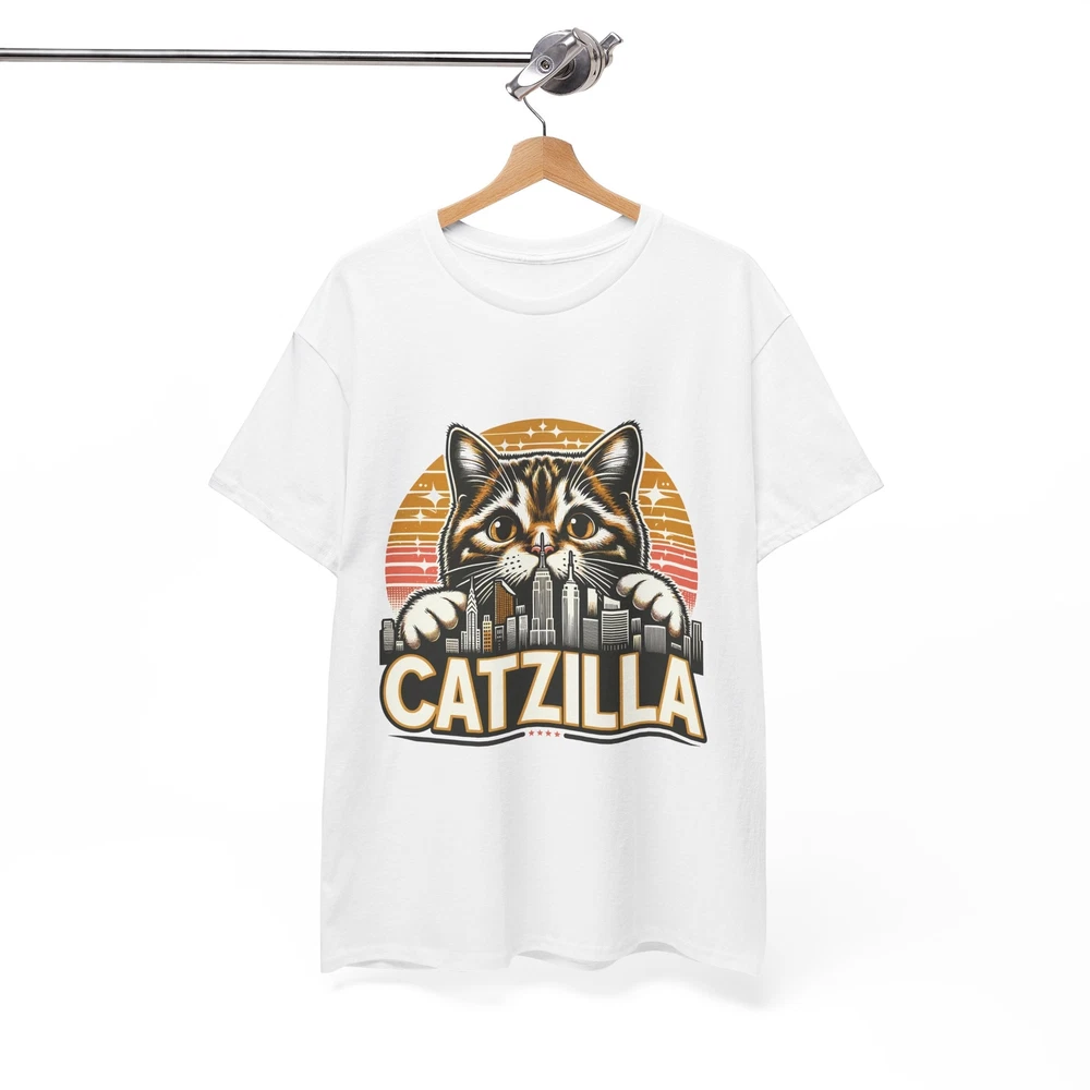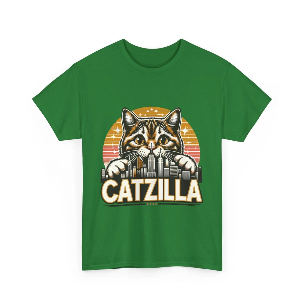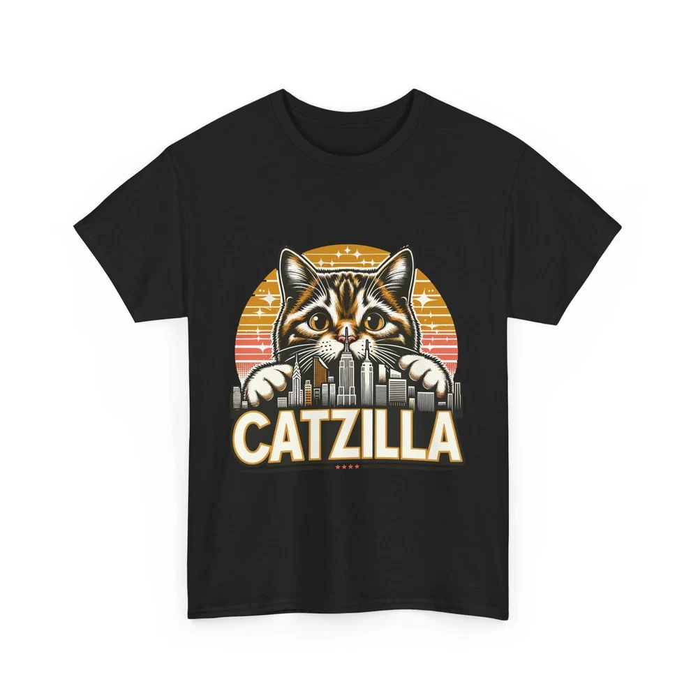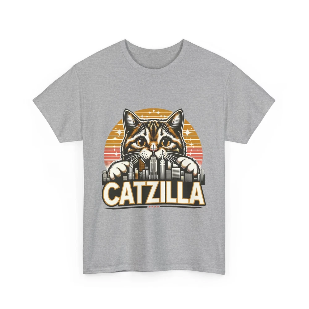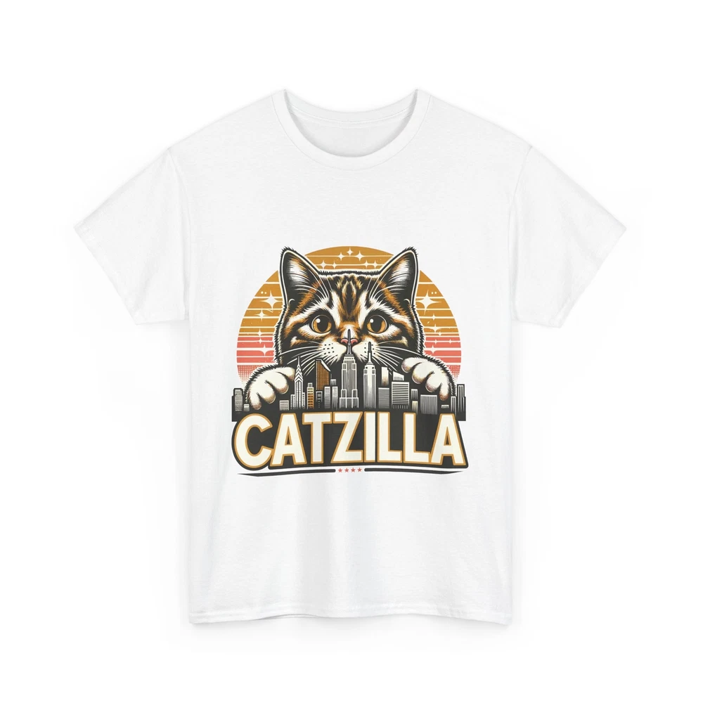 IMPERIAL S M L XL 2XL 3XL 4XL 5XL Width, in 18.00 20.00 22.00 24.00 26.00 28.00 30.00 32.00 Length, in 28.00 29.00 30.00 31.00 32.00 33.00 34.00 35.00 Sleeve length (from center back), in 15.10 16.50 18.00 19.50 21.00 22.40 23.70 25.00 Size tolerance, in 1.50 1.50 1.50 1.50 1.50 1.50 1.50 1.50 ------------------------------------------------------------------------------------------------------------------------------------------------------------------------------ METRIC S M L XL 2XL 3XL 4XL 5XL Width, cm 45.72 50.80 55.88 60.96 66.04 71.12 76.20 81.28 Length, cm 71.12 73.66 76.20 78.74 81.28 83.82 86.36 88.90 Sleeve length (from center back), cm 38.35 41.91 45.72 49.53 53.34 56.90 60.20 63.50 Size tolerance, cm 3.81 3.81 3.81 3.81 3.81 3.81 3.81 3.81 ----------------------------------------------------------------------------------------------------------------------------------------------------------------------------- Unleash feline chaos in style with our Catzilla T-Shirt , the ultimate tee for cat lovers who adore epic, funny, and monster-sized designs. Whether you're a fan of urban legends, Japanese kaiju culture, or just love a sassy cat with a giant attitude, this shirt is made for you. Crafted from 100% ethically grown U.S. cotton, this tee offers a durable yet soft medium-weight fabric (5.3 oz/yd² / 180 g/m²) that feels great on the skin and lasts wear after wear. Its classic fit ensures all-day comfort, while the crew neckline delivers a clean, timeless look perfect for both casual hangouts and relaxed weekends. Designed for cat lovers , kaiju fans , and anyone who enjoys bold, funny, and creative graphic tees, this shirt is more than just a novelty ? it's a wardrobe essential. The tear-away label guarantees a scratch-free experience with no irritation, and its Oeko-Tex certification means it's been tested for harmful substances, ensuring safety and peace of mind. Whether you're buying it for yourself or as a gift for a fellow cat fan, our Catzilla tee brings comfort, laughs, and style together in one perfect package. The unisex heavy cotton tee is the basic staple of any wardrobe. It is the foundation upon which casual fashion grows. All it needs is a personalized design to elevate things to profitability. The specially spun fibers provide a smooth surface for premium printing vividity and sharpness. No side seams mean there are no itchy interruptions under the arms. The shoulders have tape for improved durability. .: Made with medium fabric (5.3 oz/yd² (180 g/m²)) consisting of 100% cotton for year-round comfort that is sustainable and highly durable. .: The classic fit of this shirt ensures a comfy, relaxed wear while the crew neckline adds that neat, timeless look that can blend into any occasion, casual or semi-formal. .: The tear-away label means a scratch-free experience with no irritation or discomfort whatsoever. .: Made using 100% US cotton that is ethically grown and harvested. Gildan is also a proud member of the US Cotton Trust Protocol ensuring ethical and sustainable means of production. This blank tee is certified by Oeko-Tex for safety and quality assurance. The classic fit ensures a comfy, relaxed wear, while the crew neckline adds a neat, timeless look suitable for any occasion, casual or semi-formal. The tear-away label provide a scratch-free experience, ensuring no irritation or discomfort. Key Features: - **Shoulder Tape**: Twill tape covers the shoulder seams to stabilize the back of the garment and prevent stretching. - **No Side Seams**: Knitted in one piece using tubular knit, reducing fabric waste and making the garment more attractive. - **Ribbed Knit Collar**: Highly elastic ribbed knit collar helps retain its shape. - **Durable Fabric**: Specially spun fibers create a smooth surface for premium printing vividity and sharpness. Care Instructions: - Machine wash: warm (max 40C or 105F) - Non-chlorine bleach as needed - Tumble dry: medium - Do not iron - Do not dry clean This unisex heavy cotton tee is the foundation of casual fashion, providing a smooth surface for vibrant and sharp prints. Made from ethically grown and harvested cotton. EU representative : Invicticonte LLC, 2105 Vista Oeste St NW Suite E 1187, Albuquerque, NM, 87120, US Product information : Gildan 5000, 2 year warranty in EU and Northern Ireland as per Directive 1999/44/EC Warnings, Hazard : For adults, Made in Nicaragua Care instructions : Machine wash: warm (max 40C or 105F), Non-chlorine: bleach as needed, Tumble dry: medium, Do not iron, Do not dryclean Keywords: catzilla t-shirt, funny cat shirt, kaiju cat tee, cat graphic t-shirt, monster cat shirt, cat lovers gift, Japanese inspired shirt, cotton t-shirt USA, giant cat tee, urban cat design