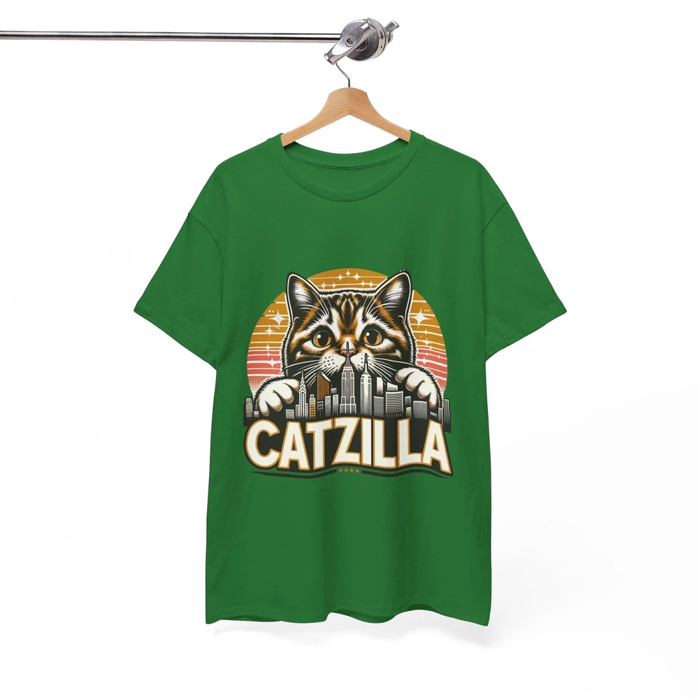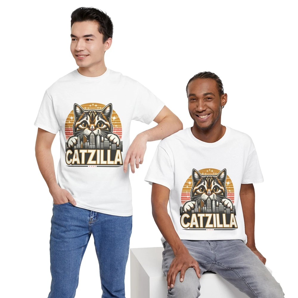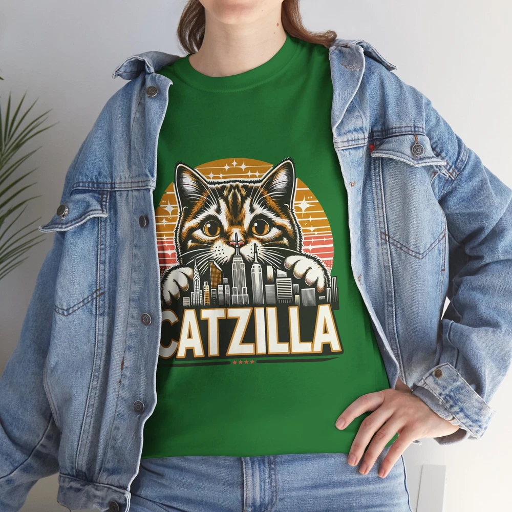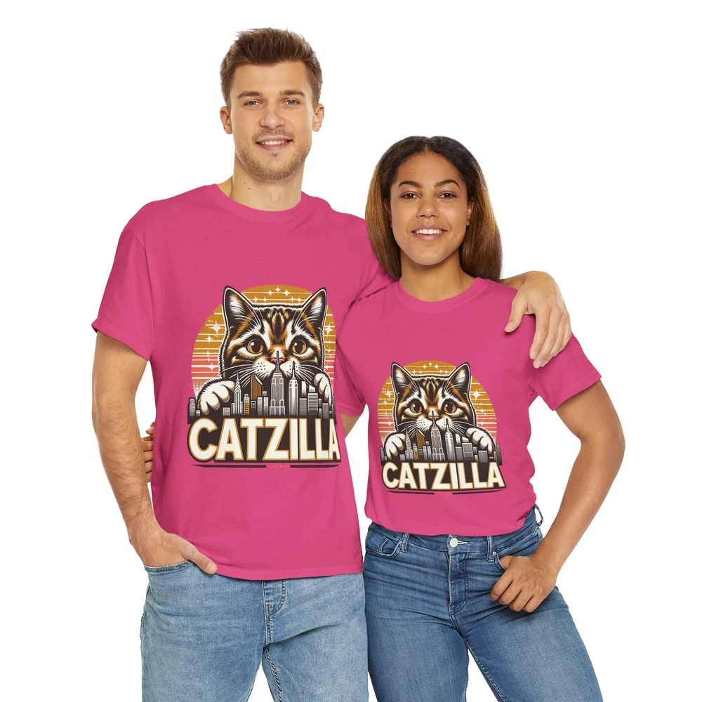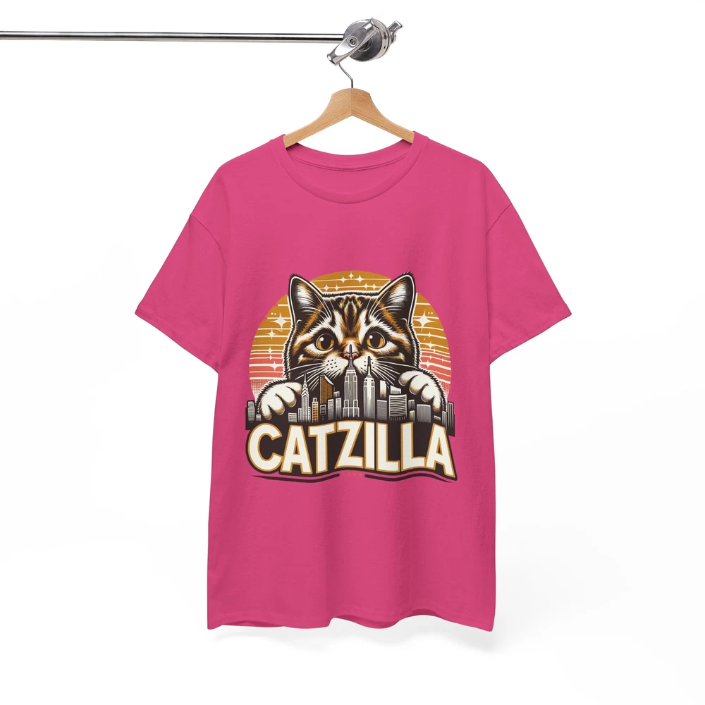 IMPERIAL S M L XL 2XL 3XL 4XL 5XL Width, in 18.00 20.00 22.00 24.00 26.00 28.00 30.00 32.00 Length, in 28.00 29.00 30.00 31.00 32.00 33.00 34.00 35.00 Sleeve length (from center back), in 15.10 16.50 18.00 19.50 21.00 22.40 23.70 25.00 Size tolerance, in 1.50 1.50 1.50 1.50 1.50 1.50 1.50 1.50 ------------------------------------------------------------------------------------------------------------------------------------------------------------------------------ METRIC S M L XL 2XL 3XL 4XL 5XL Width, cm 45.72 50.80 55.88 60.96 66.04 71.12 76.20 81.28 Length, cm 71.12 73.66 76.20 78.74 81.28 83.82 86.36 88.90 Sleeve length (from center back), cm 38.35 41.91 45.72 49.53 53.34 56.90 60.20 63.50 Size tolerance, cm 3.81 3.81 3.81 3.81 3.81 3.81 3.81 3.81 ----------------------------------------------------------------------------------------------------------------------------------------------------------------------------- Unleash feline chaos in style with our Catzilla T-Shirt , the ultimate tee for cat lovers who adore epic, funny, and monster-sized designs. Whether you're a fan of urban legends, Japanese kaiju culture, or just love a sassy cat with a giant attitude, this shirt is made for you. Crafted from 100% ethically grown U.S. cotton, this tee offers a durable yet soft medium-weight fabric (5.3 oz/yd² / 180 g/m²) that feels great on the skin and lasts wear after wear. Its classic fit ensures all-day comfort, while the crew neckline delivers a clean, timeless look perfect for both casual hangouts and relaxed weekends. Designed for cat lovers , kaiju fans , and anyone who enjoys bold, funny, and creative graphic tees, this shirt is more than just a novelty ? it's a wardrobe essential. The tear-away label guarantees a scratch-free experience with no irritation, and its Oeko-Tex certification means it's been tested for harmful substances, ensuring safety and peace of mind. Whether you're buying it for yourself or as a gift for a fellow cat fan, our Catzilla tee brings comfort, laughs, and style together in one perfect package. The unisex heavy cotton tee is the basic staple of any wardrobe. It is the foundation upon which casual fashion grows. All it needs is a personalized design to elevate things to profitability. The specially spun fibers provide a smooth surface for premium printing vividity and sharpness. No side seams mean there are no itchy interruptions under the arms. The shoulders have tape for improved durability. .: Made with medium fabric (5.3 oz/yd² (180 g/m²)) consisting of 100% cotton for year-round comfort that is sustainable and highly durable. .: The classic fit of this shirt ensures a comfy, relaxed wear while the crew neckline adds that neat, timeless look that can blend into any occasion, casual or semi-formal. .: The tear-away label means a scratch-free experience with no irritation or discomfort whatsoever. .: Made using 100% US cotton that is ethically grown and harvested. Gildan is also a proud member of the US Cotton Trust Protocol ensuring ethical and sustainable means of production. This blank tee is certified by Oeko-Tex for safety and quality assurance. The classic fit ensures a comfy, relaxed wear, while the crew neckline adds a neat, timeless look suitable for any occasion, casual or semi-formal. The tear-away label provide a scratch-free experience, ensuring no irritation or discomfort. Key Features: - **Shoulder Tape**: Twill tape covers the shoulder seams to stabilize the back of the garment and prevent stretching. - **No Side Seams**: Knitted in one piece using tubular knit, reducing fabric waste and making the garment more attractive. - **Ribbed Knit Collar**: Highly elastic ribbed knit collar helps retain its shape. - **Durable Fabric**: Specially spun fibers create a smooth surface for premium printing vividity and sharpness. Care Instructions: - Machine wash: warm (max 40C or 105F) - Non-chlorine bleach as needed - Tumble dry: medium - Do not iron - Do not dry clean This unisex heavy cotton tee is the foundation of casual fashion, providing a smooth surface for vibrant and sharp prints. Made from ethically grown and harvested cotton. EU representative : Invicticonte LLC, 2105 Vista Oeste St NW Suite E 1187, Albuquerque, NM, 87120, US Product information : Gildan 5000, 2 year warranty in EU and Northern Ireland as per Directive 1999/44/EC Warnings, Hazard : For adults, Made in Nicaragua Care instructions : Machine wash: warm (max 40C or 105F), Non-chlorine: bleach as needed, Tumble dry: medium, Do not iron, Do not dryclean Keywords: catzilla t-shirt, funny cat shirt, kaiju cat tee, cat graphic t-shirt, monster cat shirt, cat lovers gift, Japanese inspired shirt, cotton t-shirt USA, giant cat tee, urban cat design