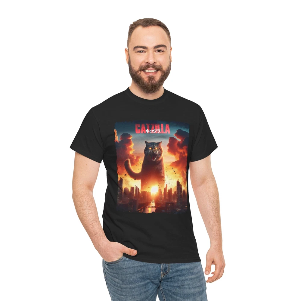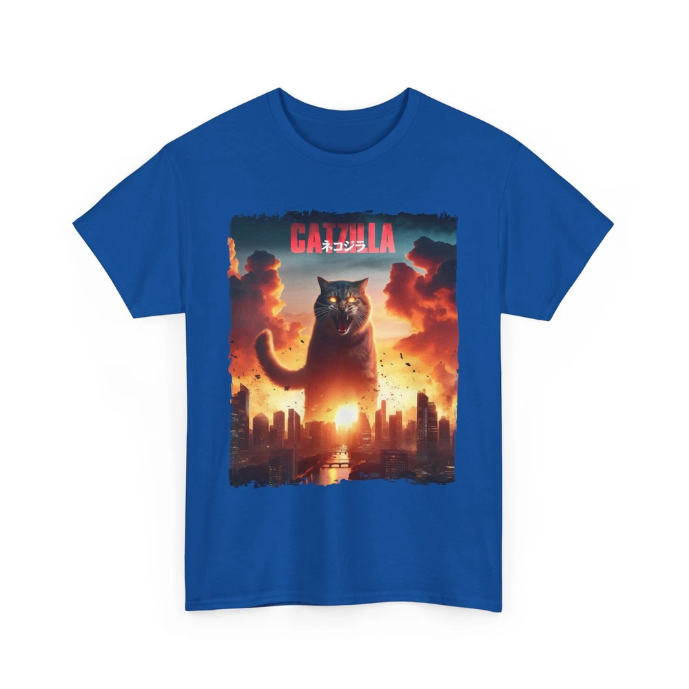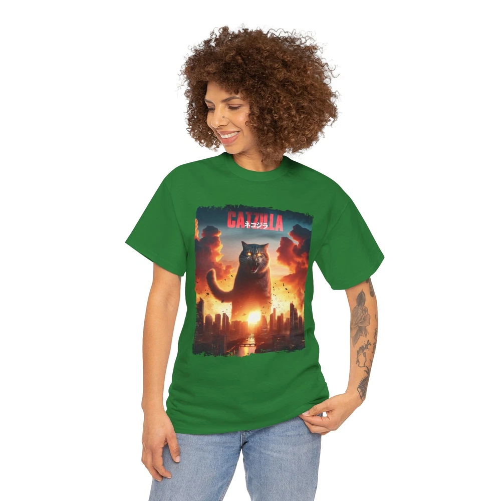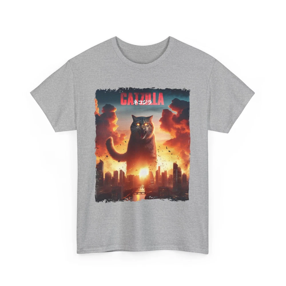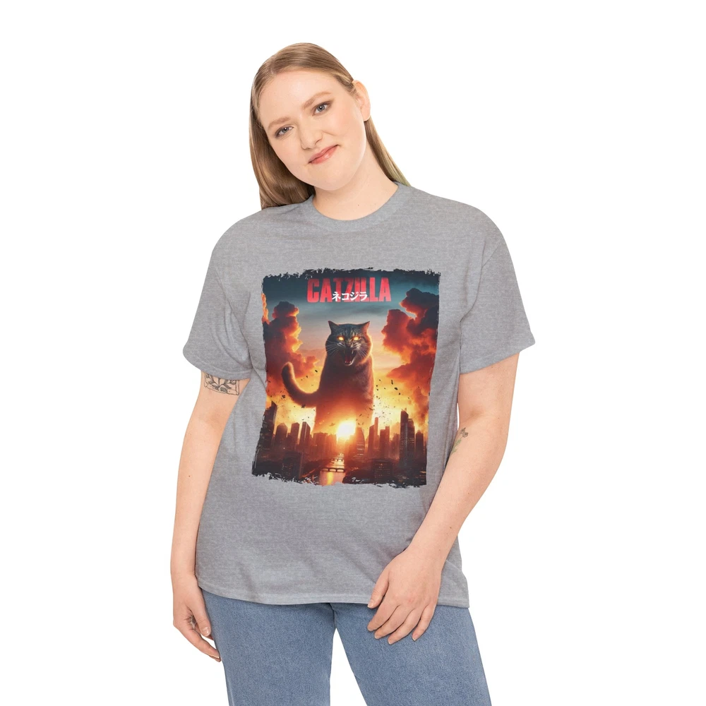 IMPERIAL S M L XL 2XL 3XL 4XL 5XL Width, in 18.00 20.00 22.00 24.00 26.00 28.00 30.00 32.00 Length, in 28.00 29.00 30.00 31.00 32.00 33.00 34.00 35.00 Sleeve length (from center back), in 15.10 16.50 18.00 19.50 21.00 22.40 23.70 25.00 Size tolerance, in 1.50 1.50 1.50 1.50 1.50 1.50 1.50 1.50 ------------------------------------------------------------------------------------------------------------------------------------------------------------------------------ METRIC S M L XL 2XL 3XL 4XL 5XL Width, cm 45.72 50.80 55.88 60.96 66.04 71.12 76.20 81.28 Length, cm 71.12 73.66 76.20 78.74 81.28 83.82 86.36 88.90 Sleeve length (from center back), cm 38.35 41.91 45.72 49.53 53.34 56.90 60.20 63.50 Size tolerance, cm 3.81 3.81 3.81 3.81 3.81 3.81 3.81 3.81 ----------------------------------------------------------------------------------------------------------------------------------------------------------------------------- Unleash feline chaos in style with our Catzilla T-Shirt , the ultimate tee for cat lovers who adore epic, funny, and monster-sized designs. Whether you're a fan of urban legends, Japanese kaiju culture, or just love a sassy cat with a giant attitude, this shirt is made for you. Crafted from 100% ethically grown U.S. cotton, this tee offers a durable yet soft medium-weight fabric (5.3 oz/yd² / 180 g/m²) that feels great on the skin and lasts wear after wear. Its classic fit ensures all-day comfort, while the crew neckline delivers a clean, timeless look perfect for both casual hangouts and relaxed weekends. Designed for cat lovers , kaiju fans , and anyone who enjoys bold, funny, and creative graphic tees, this shirt is more than just a novelty ? it's a wardrobe essential. The tear-away label guarantees a scratch-free experience with no irritation, and its Oeko-Tex certification means it's been tested for harmful substances, ensuring safety and peace of mind. Whether you're buying it for yourself or as a gift for a fellow cat fan, our Catzilla tee brings comfort, laughs, and style together in one perfect package. The unisex heavy cotton tee is the basic staple of any wardrobe. It is the foundation upon which casual fashion grows. All it needs is a personalized design to elevate things to profitability. The specially spun fibers provide a smooth surface for premium printing vividity and sharpness. No side seams mean there are no itchy interruptions under the arms. The shoulders have tape for improved durability. .: Made with medium fabric (5.3 oz/yd² (180 g/m²)) consisting of 100% cotton for year-round comfort that is sustainable and highly durable. .: The classic fit of this shirt ensures a comfy, relaxed wear while the crew neckline adds that neat, timeless look that can blend into any occasion, casual or semi-formal. .: The tear-away label means a scratch-free experience with no irritation or discomfort whatsoever. .: Made using 100% US cotton that is ethically grown and harvested. Gildan is also a proud member of the US Cotton Trust Protocol ensuring ethical and sustainable means of production. This blank tee is certified by Oeko-Tex for safety and quality assurance. The classic fit ensures a comfy, relaxed wear, while the crew neckline adds a neat, timeless look suitable for any occasion, casual or semi-formal. The tear-away label provide a scratch-free experience, ensuring no irritation or discomfort. Key Features: - **Shoulder Tape**: Twill tape covers the shoulder seams to stabilize the back of the garment and prevent stretching. - **No Side Seams**: Knitted in one piece using tubular knit, reducing fabric waste and making the garment more attractive. - **Ribbed Knit Collar**: Highly elastic ribbed knit collar helps retain its shape. - **Durable Fabric**: Specially spun fibers create a smooth surface for premium printing vividity and sharpness. Care Instructions: - Machine wash: warm (max 40C or 105F) - Non-chlorine bleach as needed - Tumble dry: medium - Do not iron - Do not dry clean This unisex heavy cotton tee is the foundation of casual fashion, providing a smooth surface for vibrant and sharp prints. Made from ethically grown and harvested cotton. EU representative : Invicticonte LLC, 2105 Vista Oeste St NW Suite E 1187, Albuquerque, NM, 87120, US Product information : Gildan 5000, 2 year warranty in EU and Northern Ireland as per Directive 1999/44/EC Warnings, Hazard : For adults, Made in Nicaragua Care instructions : Machine wash: warm (max 40C or 105F), Non-chlorine: bleach as needed, Tumble dry: medium, Do not iron, Do not dryclean Keywords: catzilla t-shirt, funny cat shirt, kaiju cat tee, cat graphic t-shirt, monster cat shirt, cat lovers gift, Japanese inspired shirt, cotton t-shirt USA, giant cat tee, urban cat design