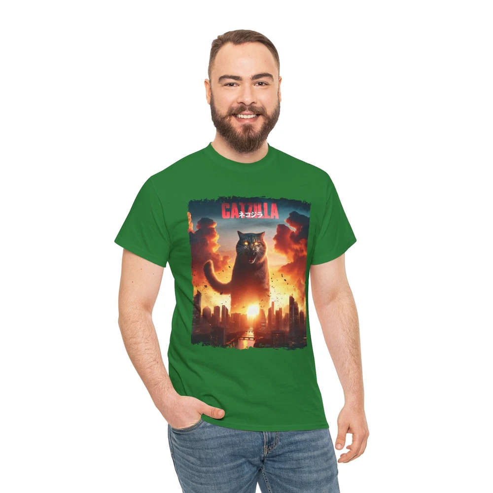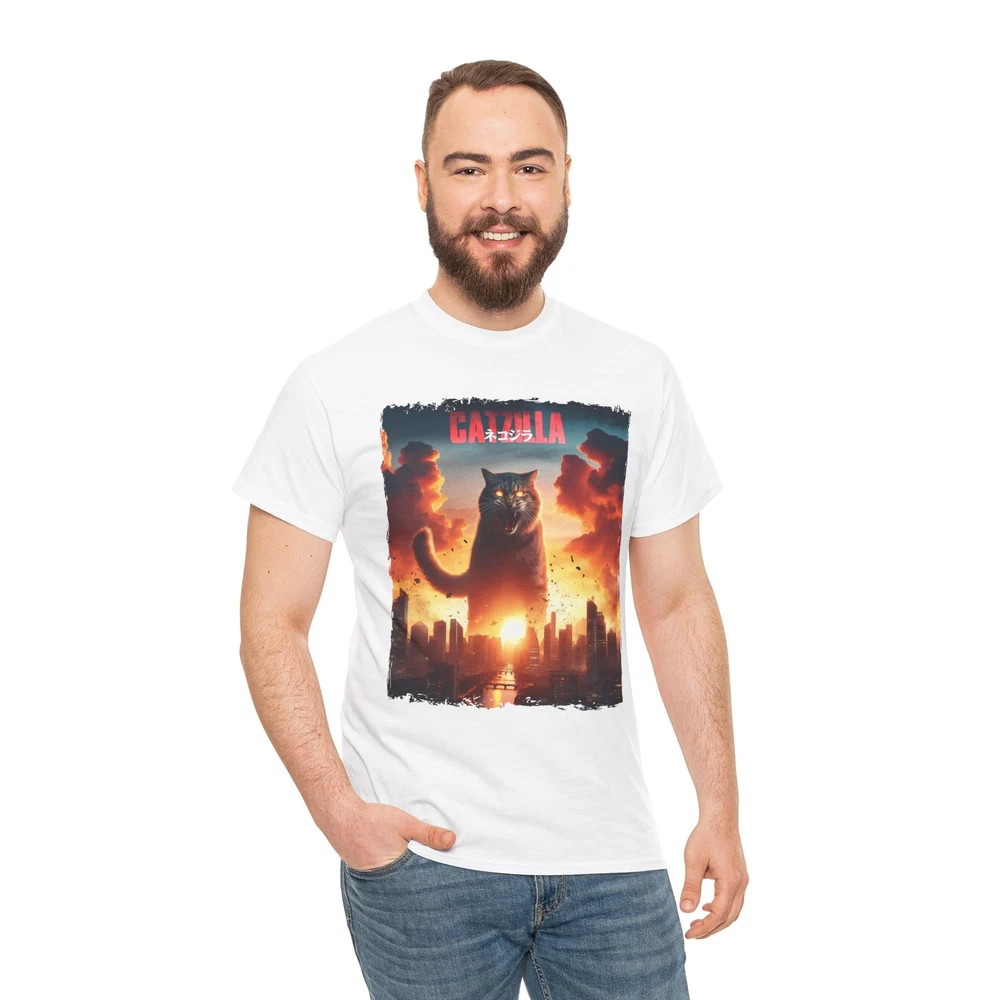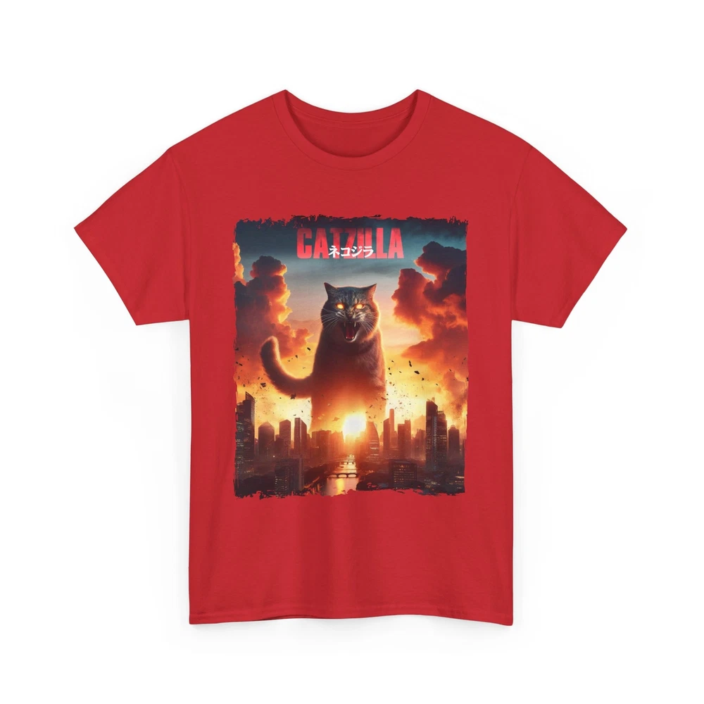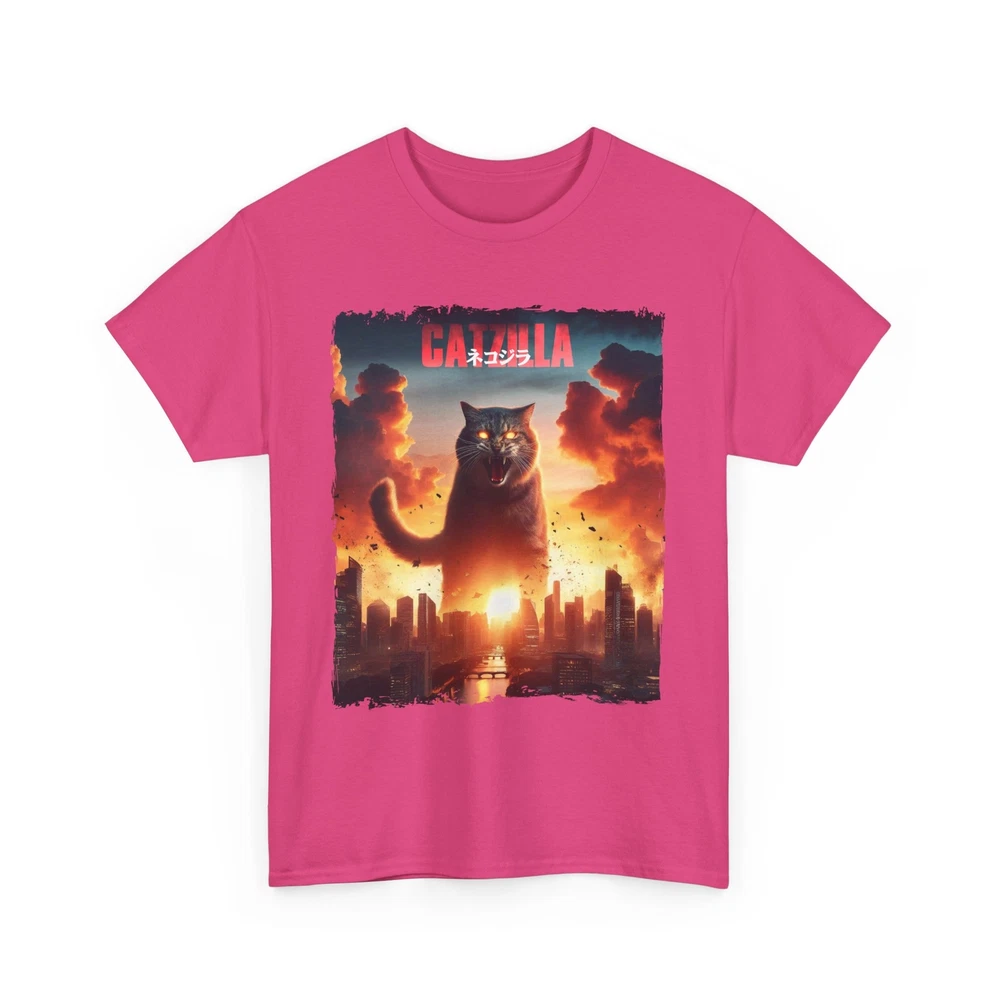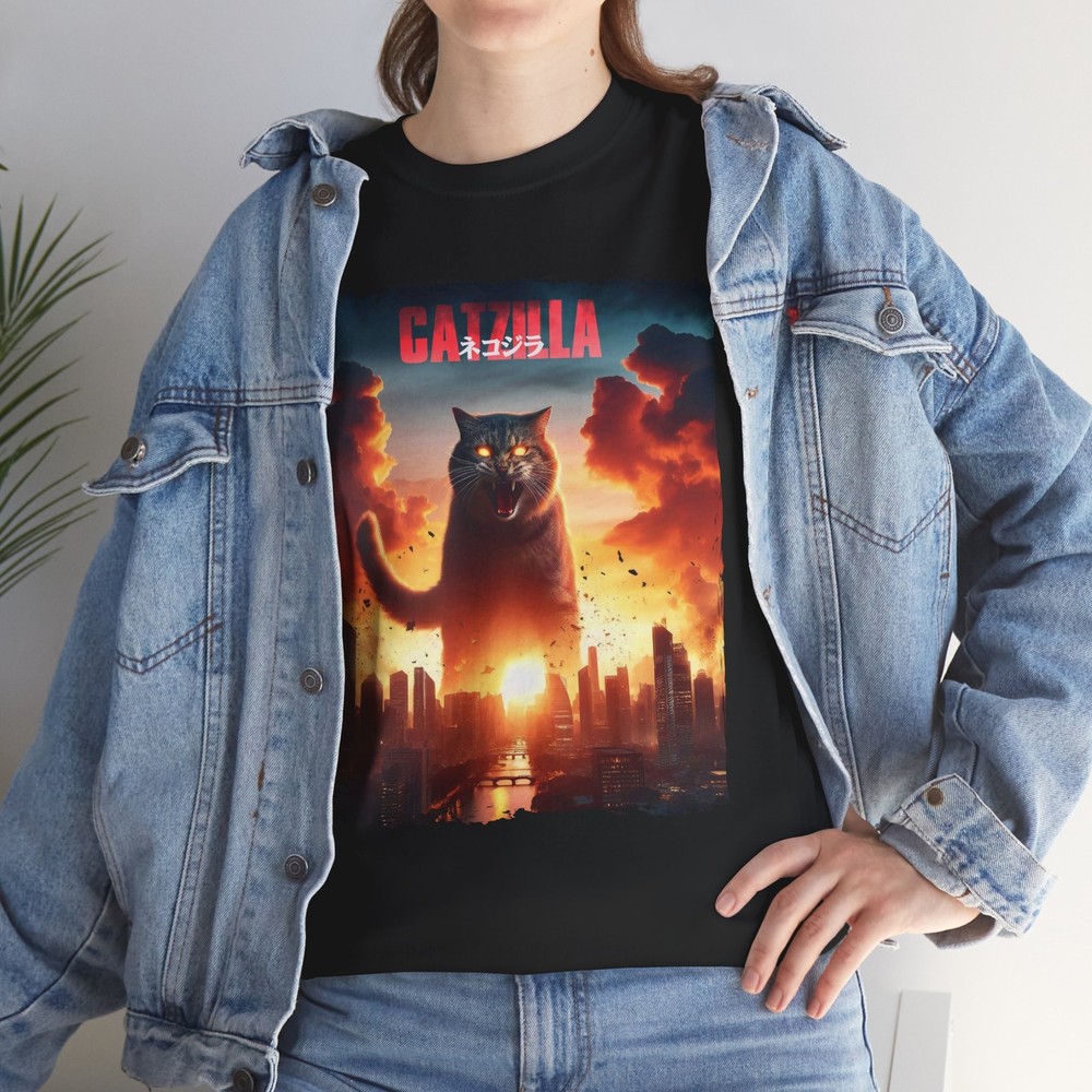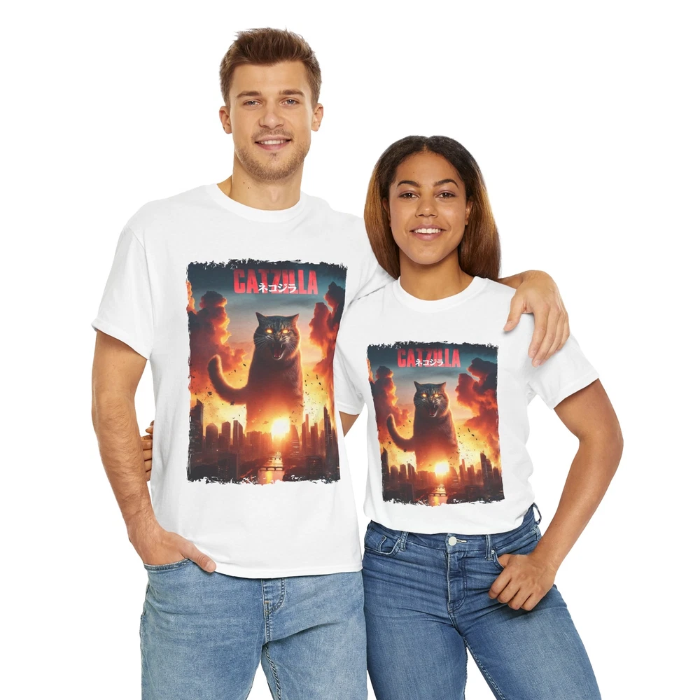IMPERIAL S M L XL 2XL 3XL 4XL 5XL Width, in 18.00 20.00 22.00 24.00 26.00 28.00 30.00 32.00 Length, in 28.00 29.00 30.00 31.00 32.00 33.00 34.00 35.00 Sleeve length (from center back), in 15.10 16.50 18.00 19.50 21.00 22.40 23.70 25.00 Size tolerance, in 1.50 1.50 1.50 1.50 1.50 1.50 1.50 1.50 ------------------------------------------------------------------------------------------------------------------------------------------------------------------------------ METRIC S M L XL 2XL 3XL 4XL 5XL Width, cm 45.72 50.80 55.88 60.96 66.04 71.12 76.20 81.28 Length, cm 71.12 73.66 76.20 78.74 81.28 83.82 86.36 88.90 Sleeve length (from center back), cm 38.35 41.91 45.72 49.53 53.34 56.90 60.20 63.50 Size tolerance, cm 3.81 3.81 3.81 3.81 3.81 3.81 3.81 3.81 ----------------------------------------------------------------------------------------------------------------------------------------------------------------------------- Unleash feline chaos in style with our Catzilla T-Shirt , the ultimate tee for cat lovers who adore epic, funny, and monster-sized designs. Whether you're a fan of urban legends, Japanese kaiju culture, or just love a sassy cat with a giant attitude, this shirt is made for you. Crafted from 100% ethically grown U.S. cotton, this tee offers a durable yet soft medium-weight fabric (5.3 oz/yd² / 180 g/m²) that feels great on the skin and lasts wear after wear. Its classic fit ensures all-day comfort, while the crew neckline delivers a clean, timeless look perfect for both casual hangouts and relaxed weekends. Designed for cat lovers , kaiju fans , and anyone who enjoys bold, funny, and creative graphic tees, this shirt is more than just a novelty ? it's a wardrobe essential. The tear-away label guarantees a scratch-free experience with no irritation, and its Oeko-Tex certification means it's been tested for harmful substances, ensuring safety and peace of mind. Whether you're buying it for yourself or as a gift for a fellow cat fan, our Catzilla tee brings comfort, laughs, and style together in one perfect package. The unisex heavy cotton tee is the basic staple of any wardrobe. It is the foundation upon which casual fashion grows. All it needs is a personalized design to elevate things to profitability. The specially spun fibers provide a smooth surface for premium printing vividity and sharpness. No side seams mean there are no itchy interruptions under the arms. The shoulders have tape for improved durability. .: Made with medium fabric (5.3 oz/yd² (180 g/m²)) consisting of 100% cotton for year-round comfort that is sustainable and highly durable. .: The classic fit of this shirt ensures a comfy, relaxed wear while the crew neckline adds that neat, timeless look that can blend into any occasion, casual or semi-formal. .: The tear-away label means a scratch-free experience with no irritation or discomfort whatsoever. .: Made using 100% US cotton that is ethically grown and harvested. Gildan is also a proud member of the US Cotton Trust Protocol ensuring ethical and sustainable means of production. This blank tee is certified by Oeko-Tex for safety and quality assurance. The classic fit ensures a comfy, relaxed wear, while the crew neckline adds a neat, timeless look suitable for any occasion, casual or semi-formal. The tear-away label provide a scratch-free experience, ensuring no irritation or discomfort. Key Features: - **Shoulder Tape**: Twill tape covers the shoulder seams to stabilize the back of the garment and prevent stretching. - **No Side Seams**: Knitted in one piece using tubular knit, reducing fabric waste and making the garment more attractive. - **Ribbed Knit Collar**: Highly elastic ribbed knit collar helps retain its shape. - **Durable Fabric**: Specially spun fibers create a smooth surface for premium printing vividity and sharpness. Care Instructions: - Machine wash: warm (max 40C or 105F) - Non-chlorine bleach as needed - Tumble dry: medium - Do not iron - Do not dry clean This unisex heavy cotton tee is the foundation of casual fashion, providing a smooth surface for vibrant and sharp prints. Made from ethically grown and harvested cotton. EU representative : Invicticonte LLC, 2105 Vista Oeste St NW Suite E 1187, Albuquerque, NM, 87120, US Product information : Gildan 5000, 2 year warranty in EU and Northern Ireland as per Directive 1999/44/EC Warnings, Hazard : For adults, Made in Nicaragua Care instructions : Machine wash: warm (max 40C or 105F), Non-chlorine: bleach as needed, Tumble dry: medium, Do not iron, Do not dryclean Keywords: catzilla t-shirt, funny cat shirt, kaiju cat tee, cat graphic t-shirt, monster cat shirt, cat lovers gift, Japanese inspired shirt, cotton t-shirt USA, giant cat tee, urban cat design